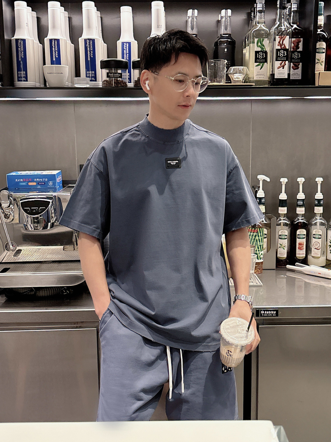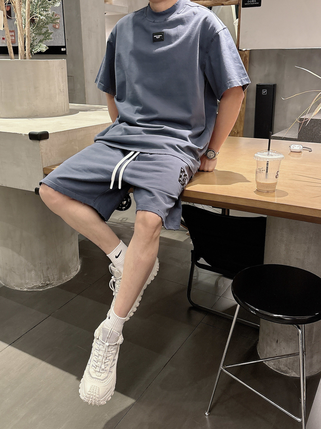 Home • Apparel • Suit • Dolce & Gabbana 2025 set new craft wash, ripped distressed, spring summer new short sleeve T-shirt shorts. Colors: Paris gray, beige, black, green. Sizes: M-3XL tops, 29-38 shorts.