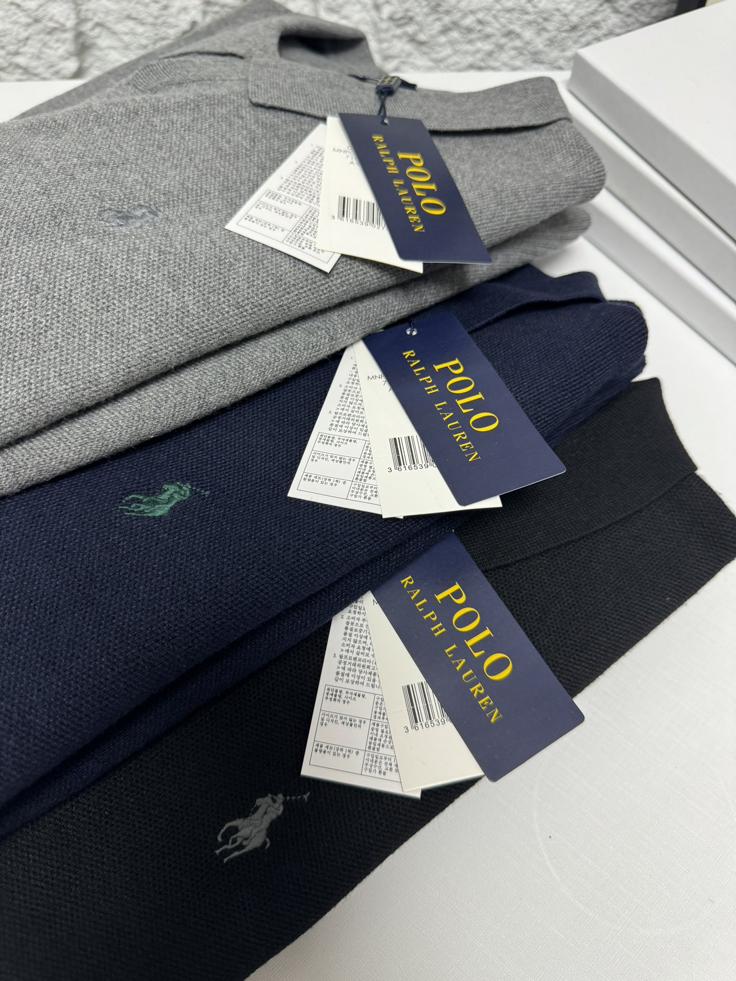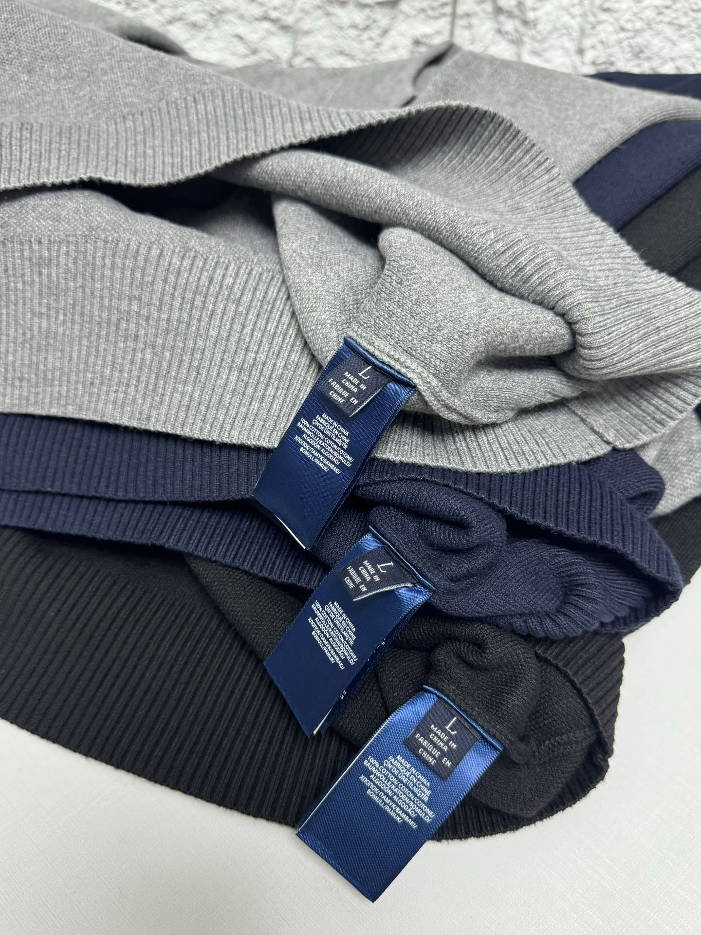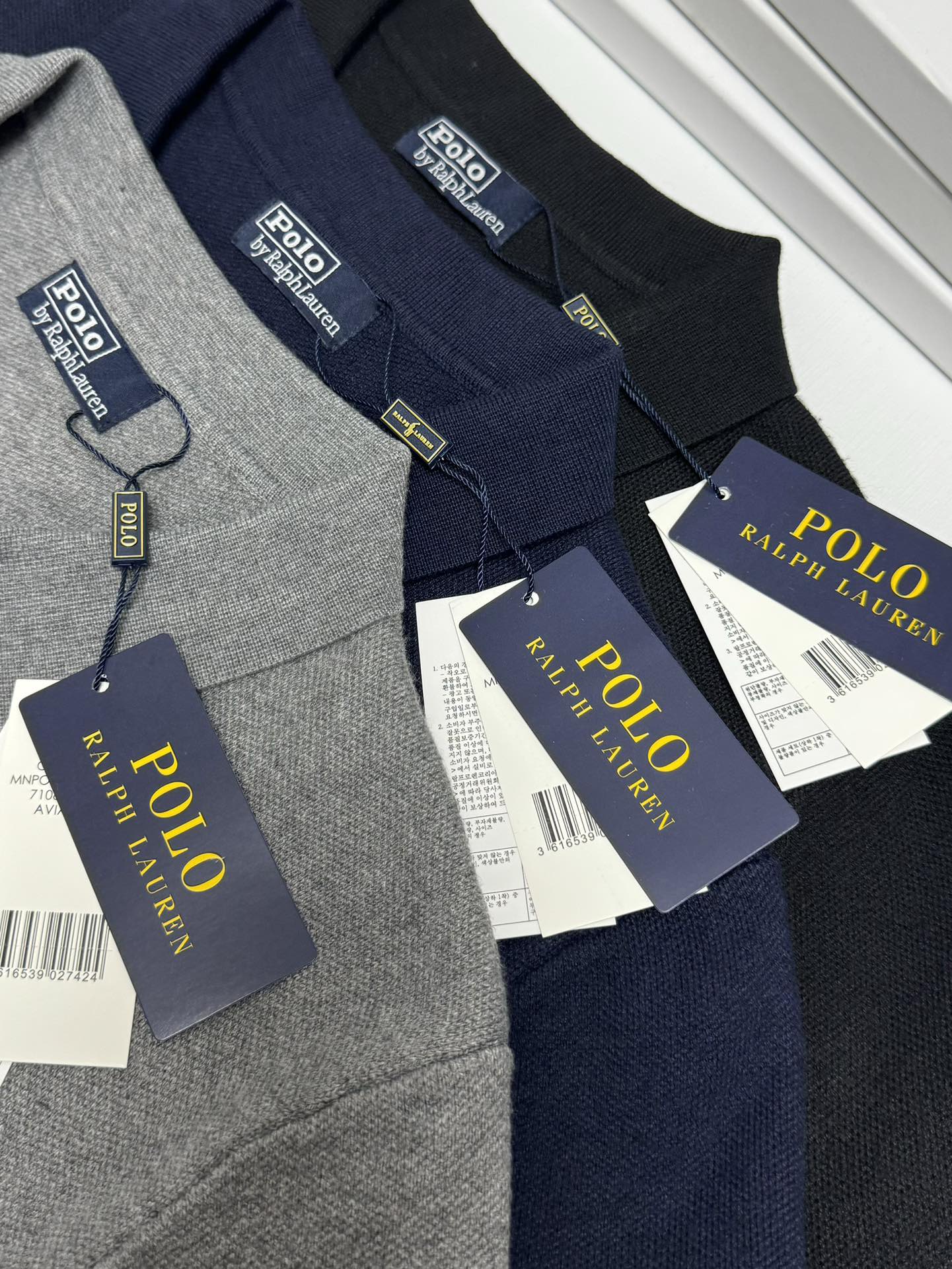 Ralph Lauren men's V-neck knit sweater, loose fit. Features ribbed cuffs, embroidered pony logo. 100% cotton. Colors: black, blue, gray. Sizes: S-XXL.
