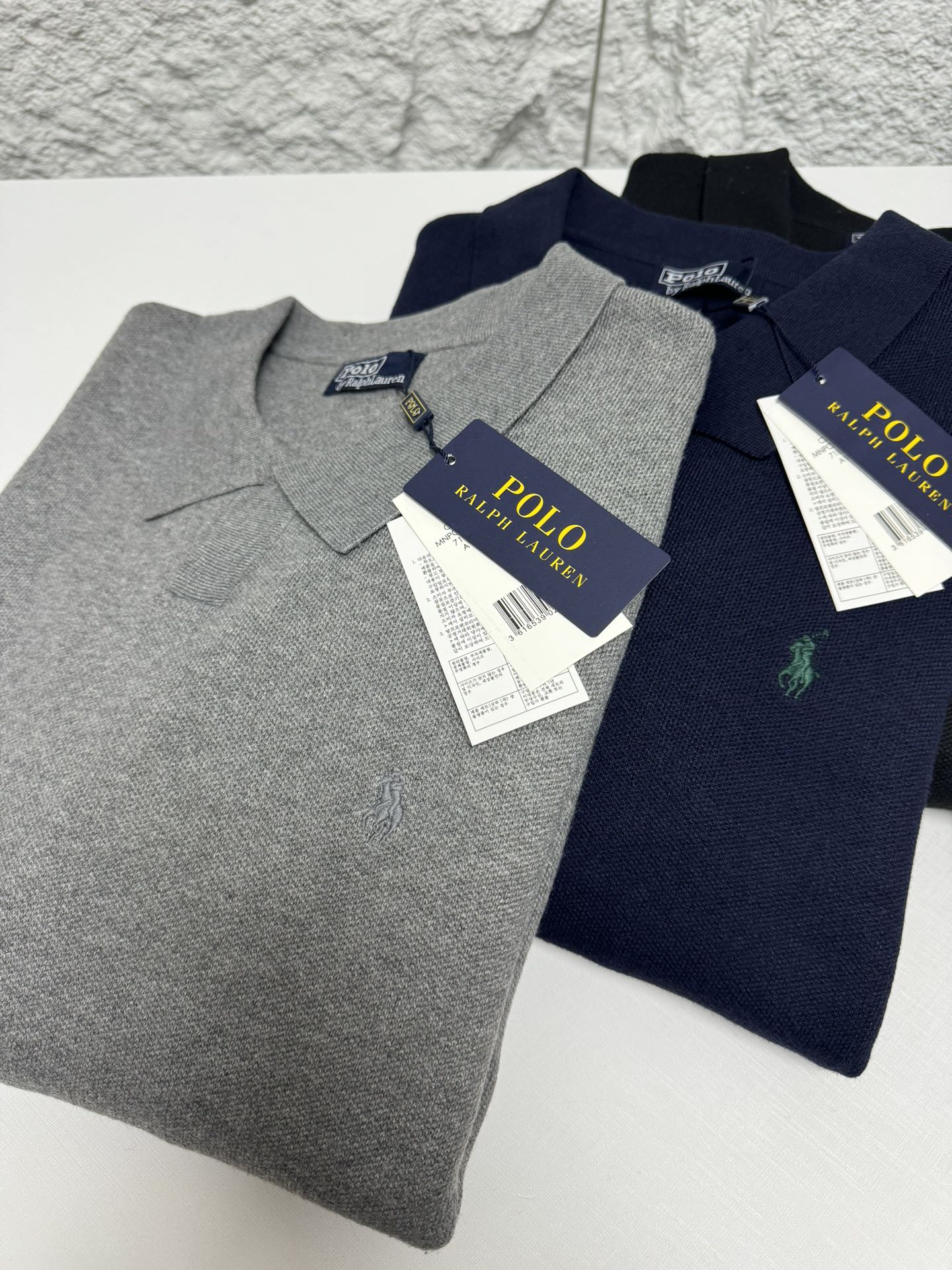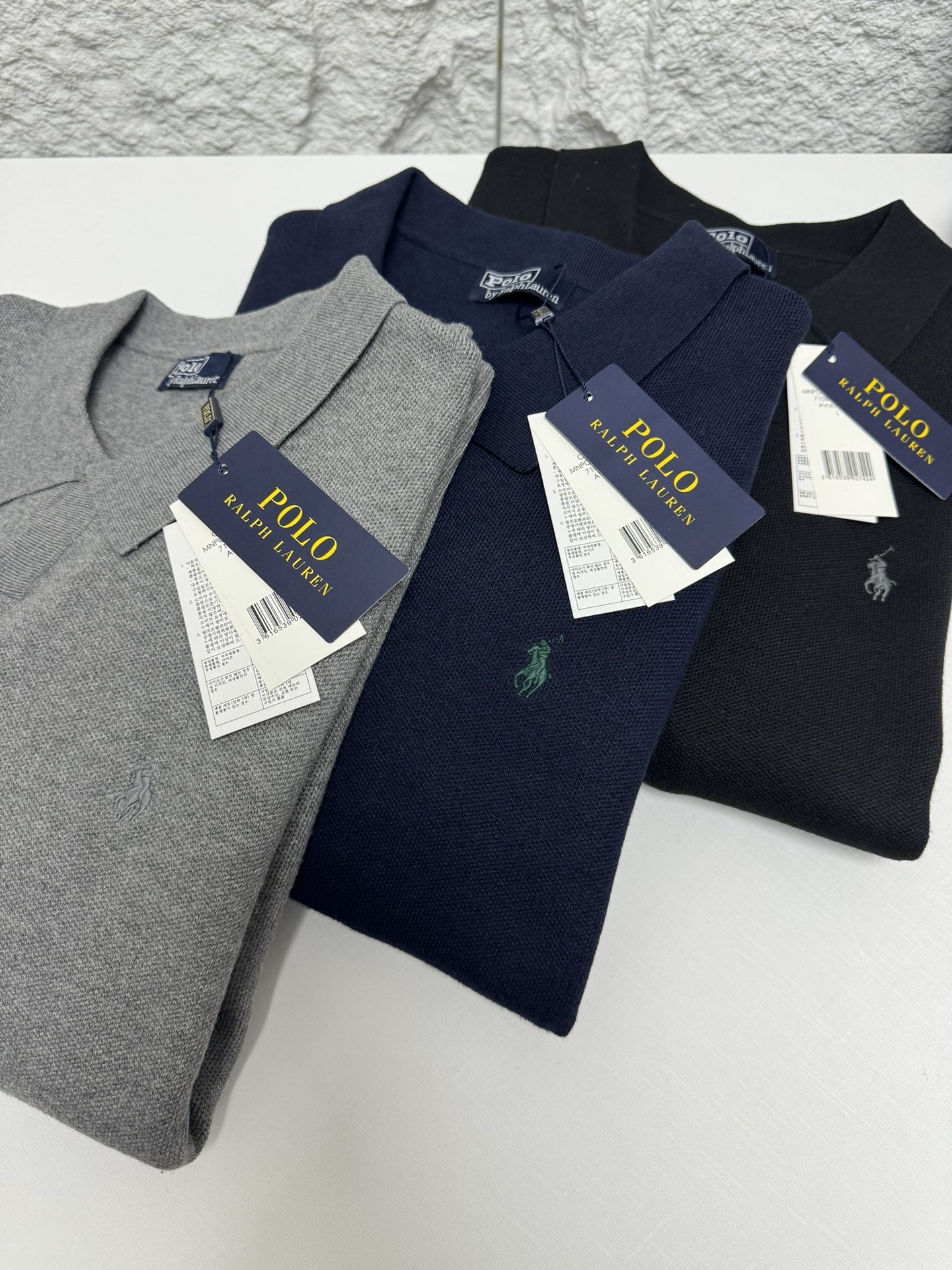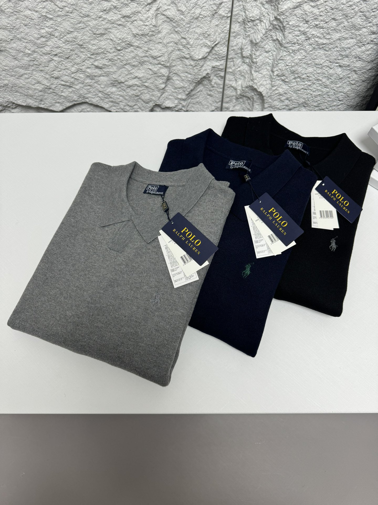 Home • Apparel • Ralph Lauren men's V-neck knit sweater, relaxed fit. Features ribbed cuffs, classic pony embroidery. 100% cotton. Colors: black, blue, gray. Sizes: S-XXL.
