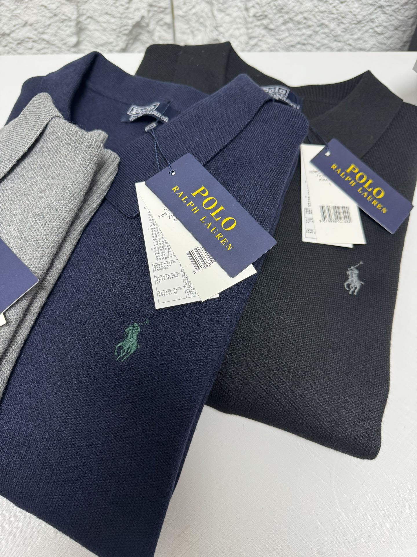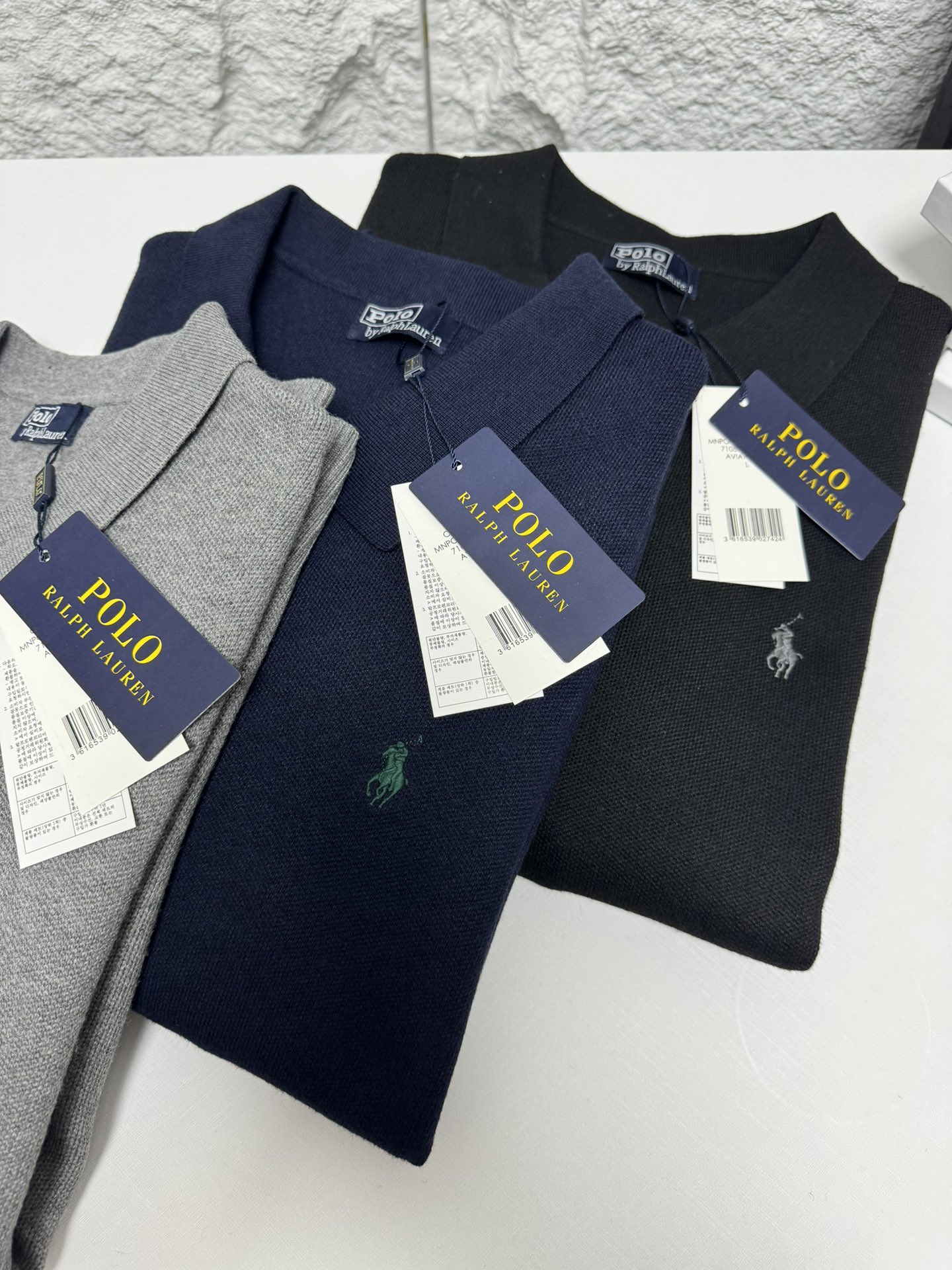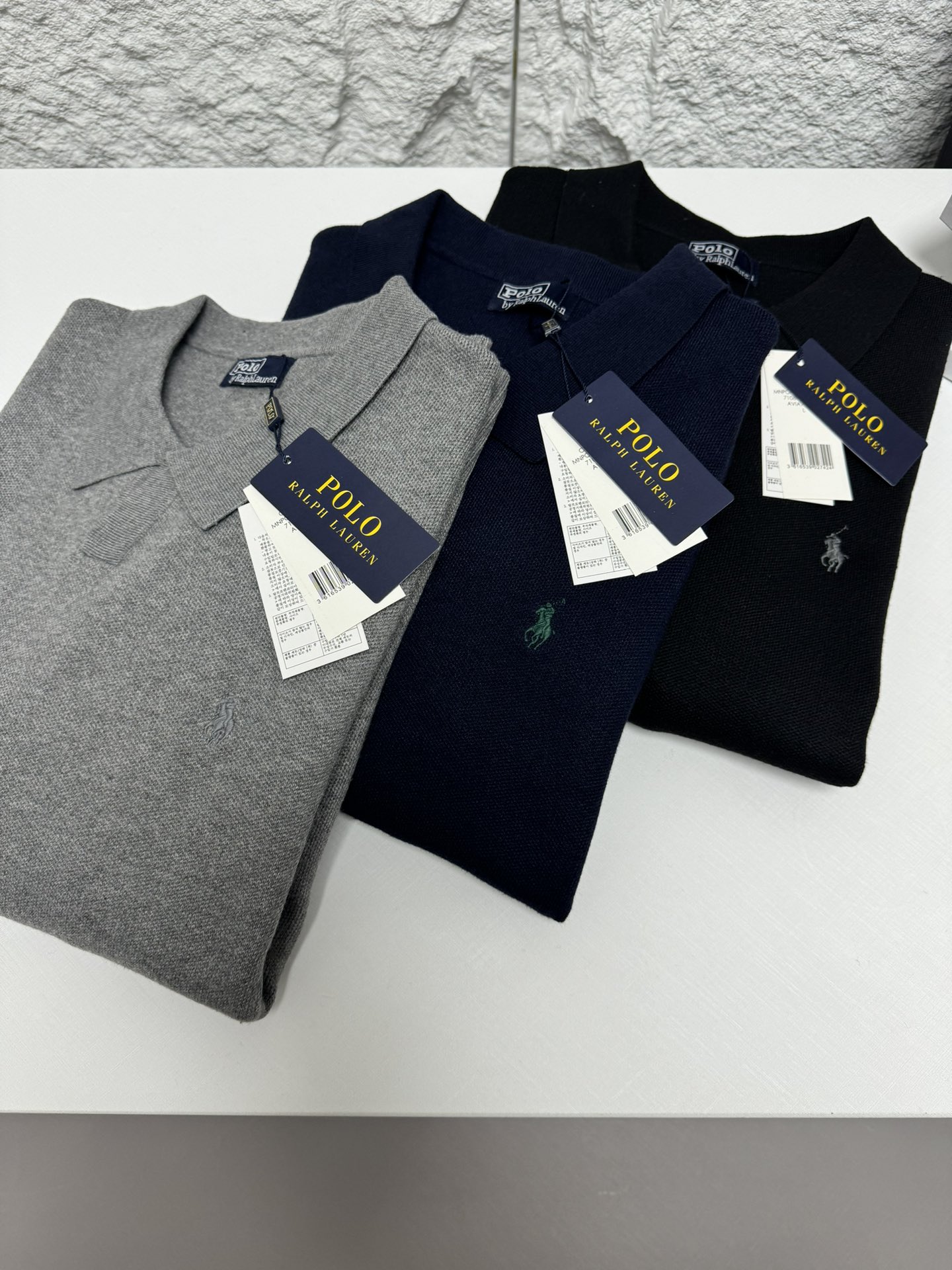 Home • Apparel • Ralph Lauren men's V-neck knit sweater, relaxed fit. Features ribbed cuffs, classic pony embroidery. 100% cotton. Colors: black, blue, gray. Sizes: S-XXL.