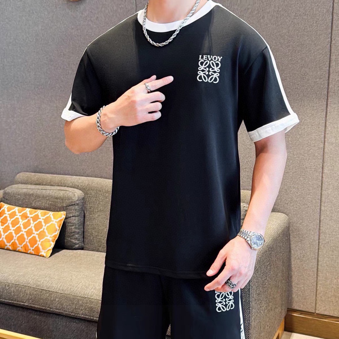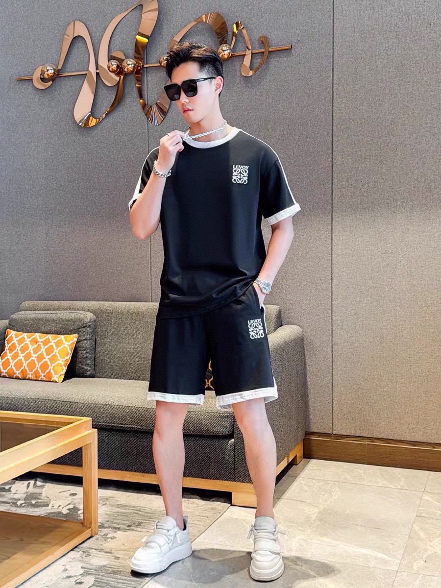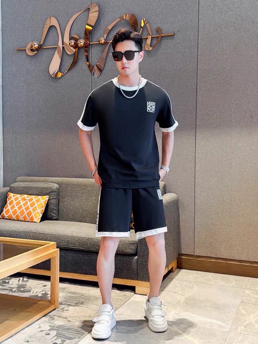 LOEWE men's summer short sleeve and shorts set. High quality imported fabric, trendy versatile design. Sizes M-4XL.