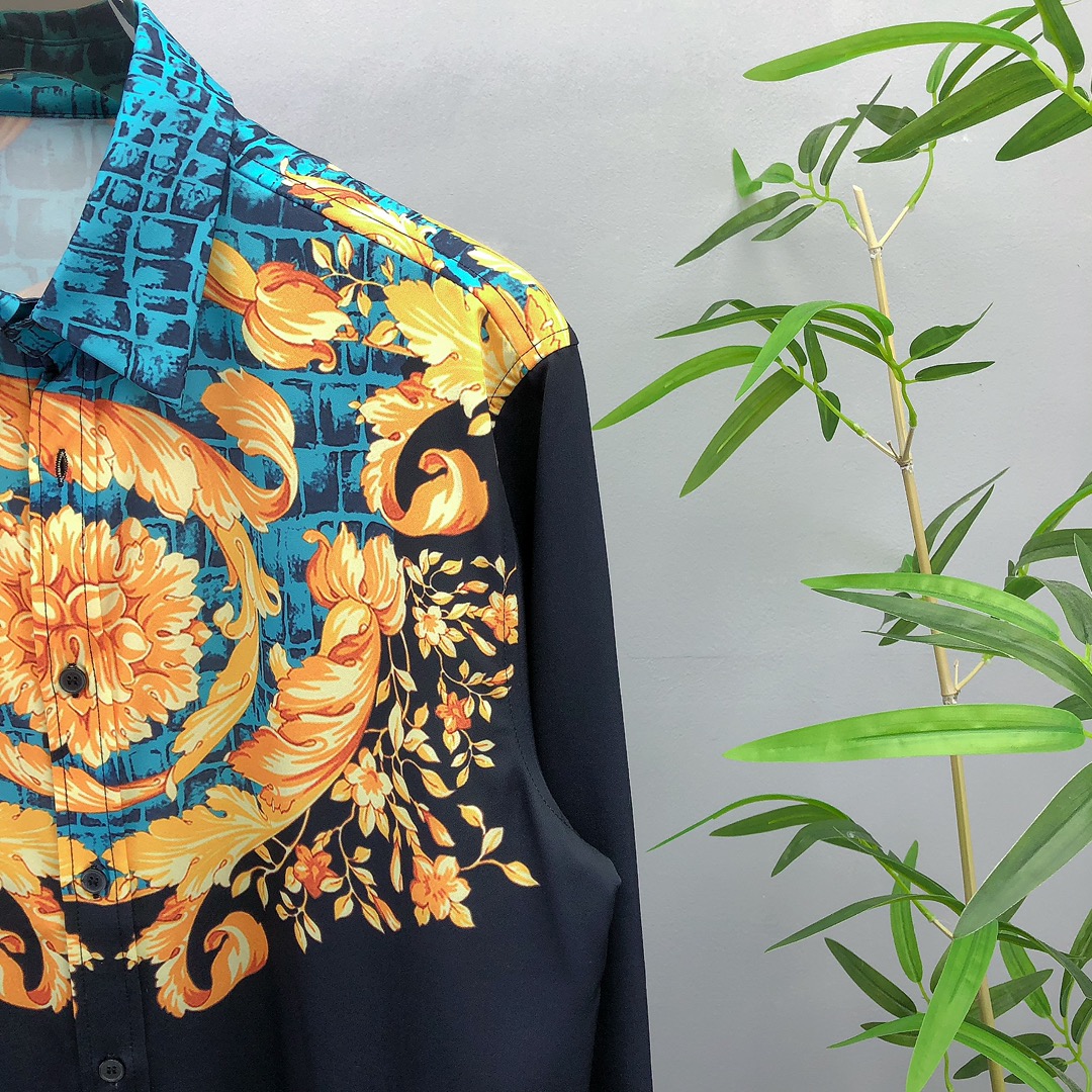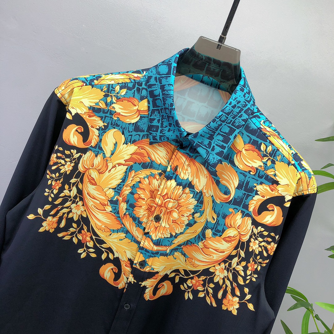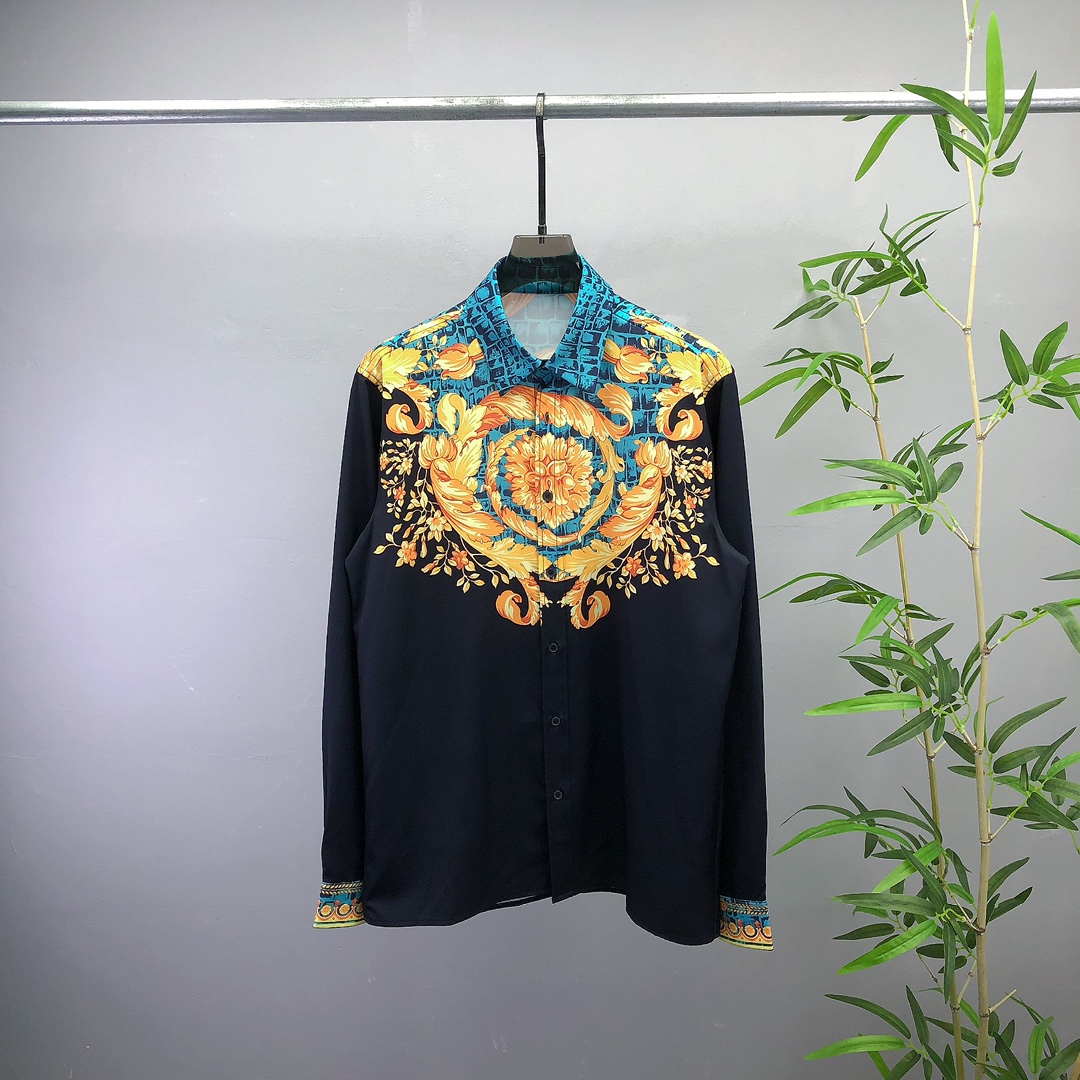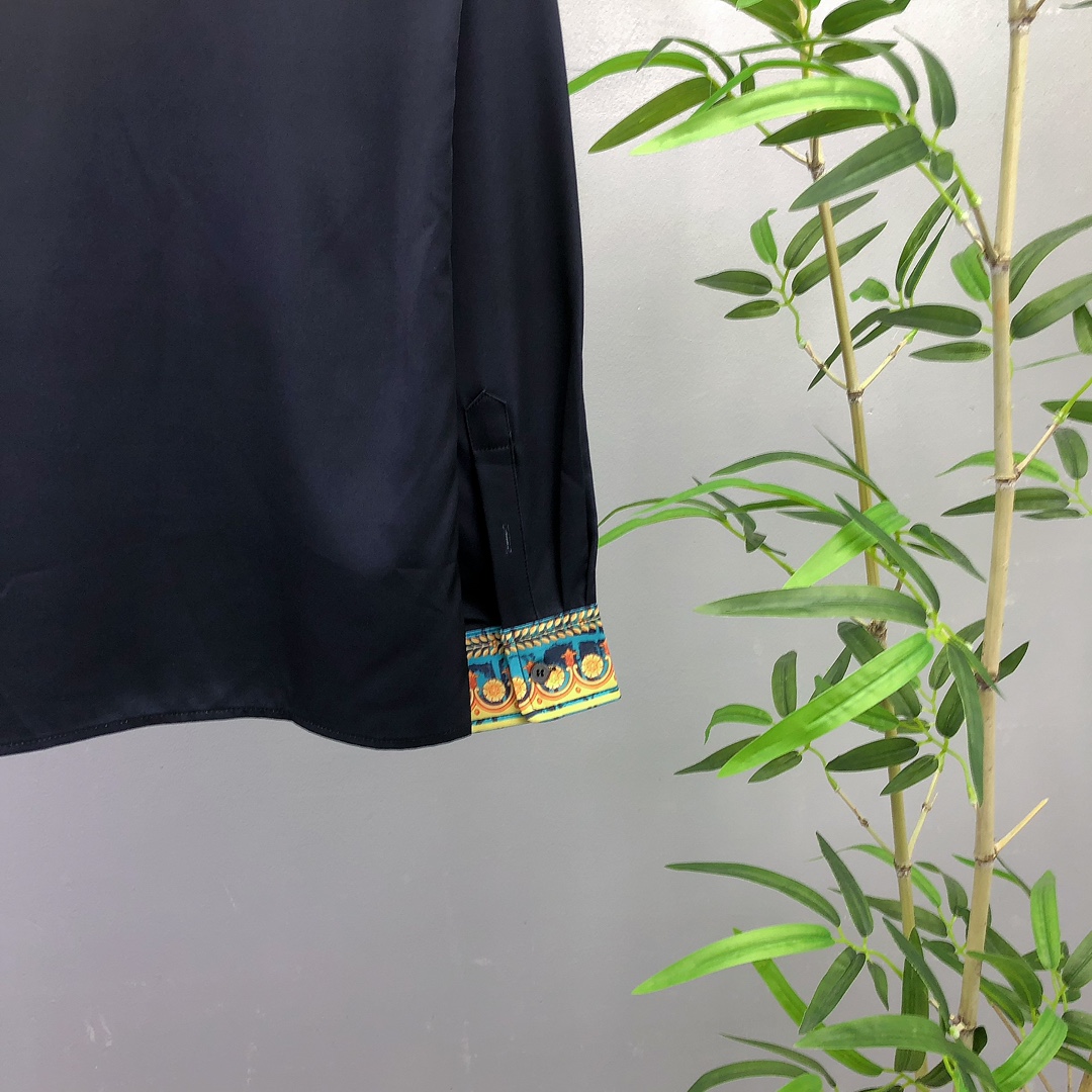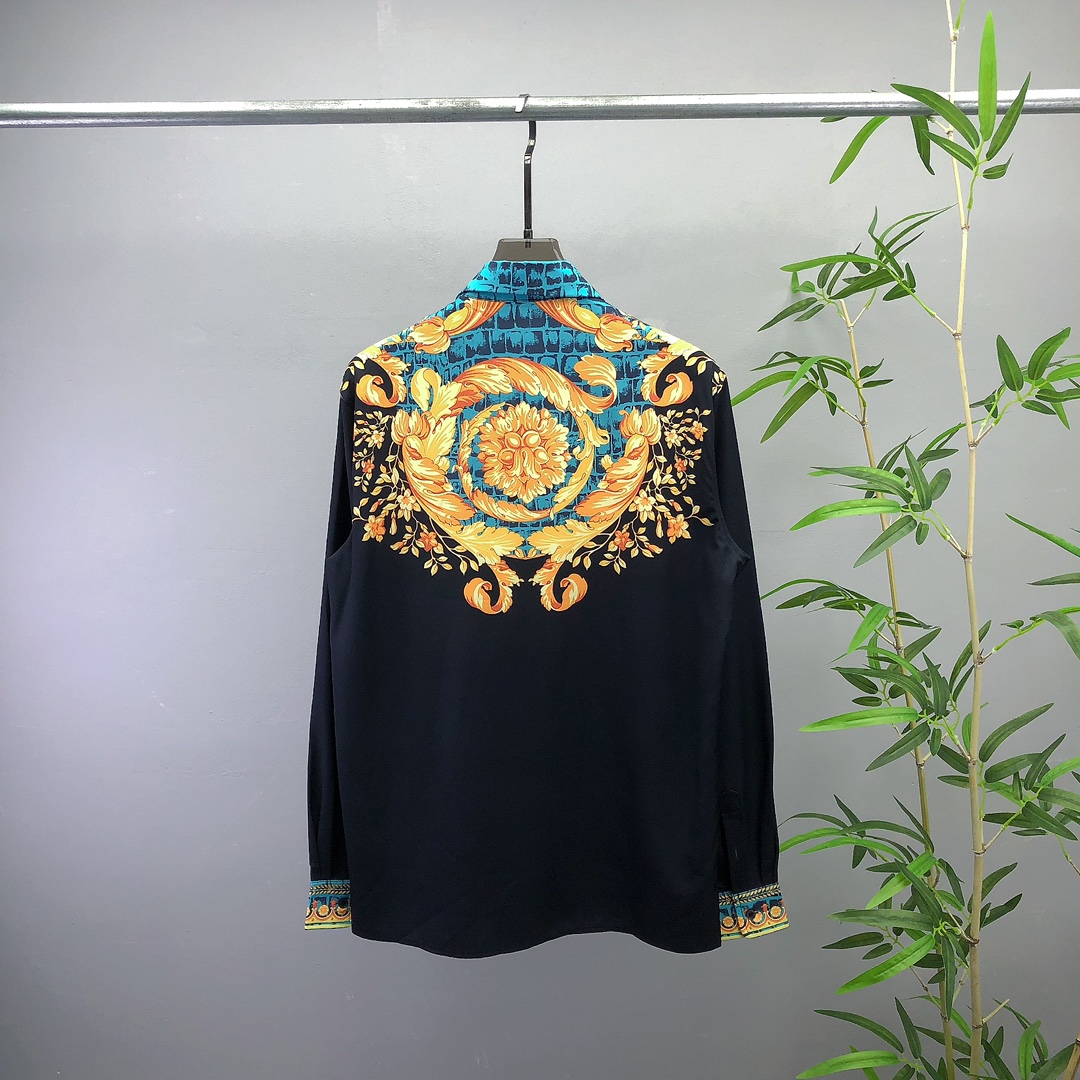 High-end men's business casual long sleeve shirt from Italy. Made with high-ply yarn, jacquard, and brushed interior for comfort. Versace 2025 spring/summer collection, unisex, sizes S-XXL.