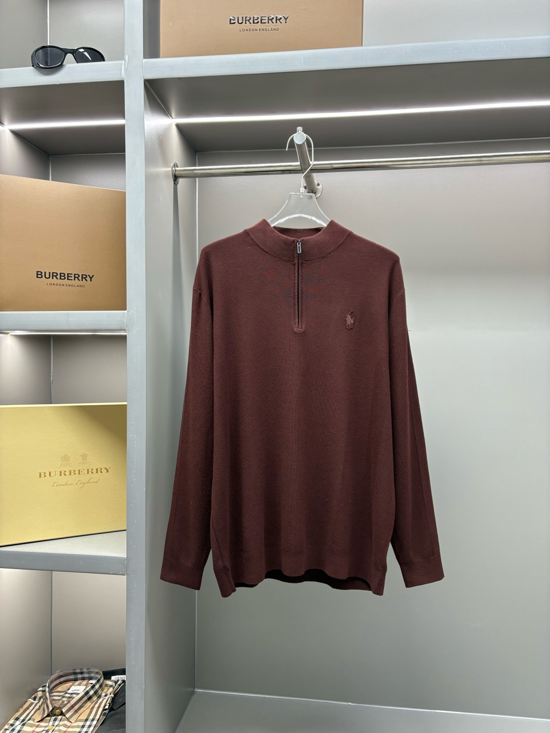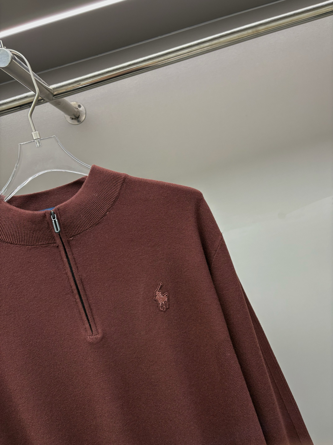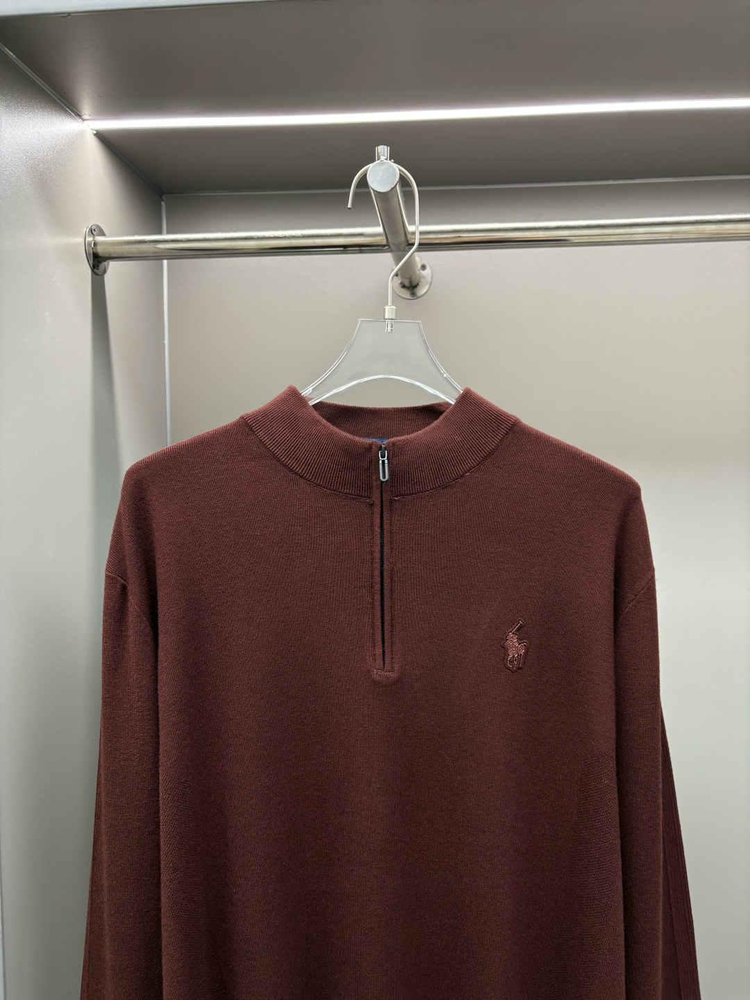 Ralph Lauren Polo zip-up sweater. New autumn/winter style. Custom mid-weight imported wool, soft shape-retaining fit. Unisex. Colors: black, gray, caramel. Sizes: L-4XL.