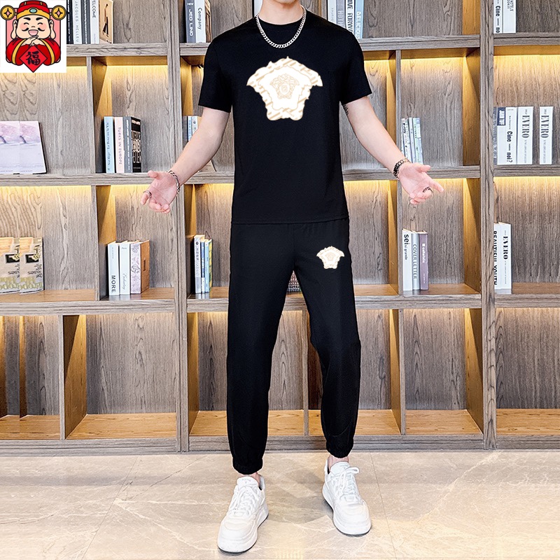 VERSACE men's summer dual-gloss high-quality set. Imported fabric, trendy style, precise stitching. Sizes M-5XL (up to 220 lbs).