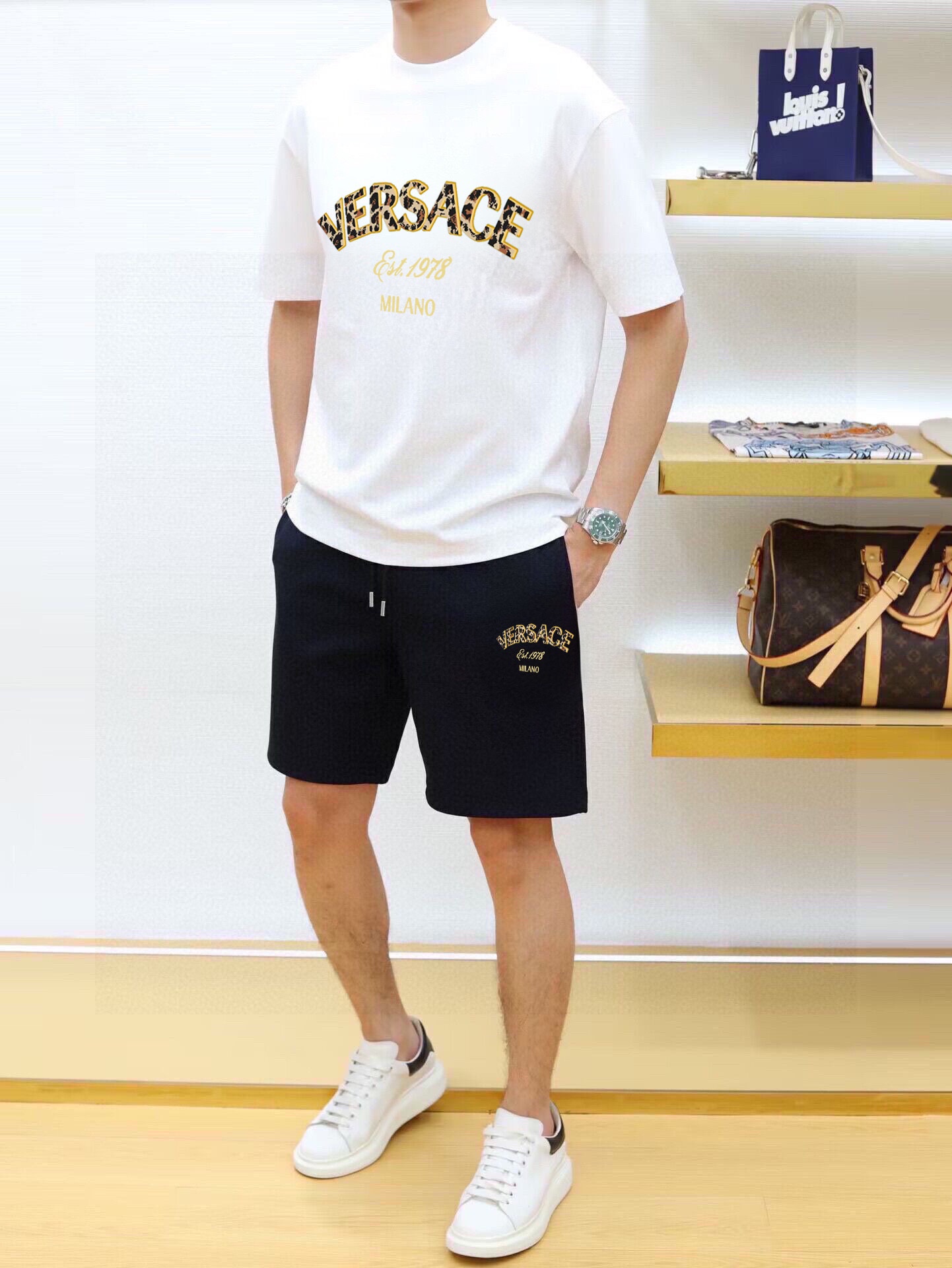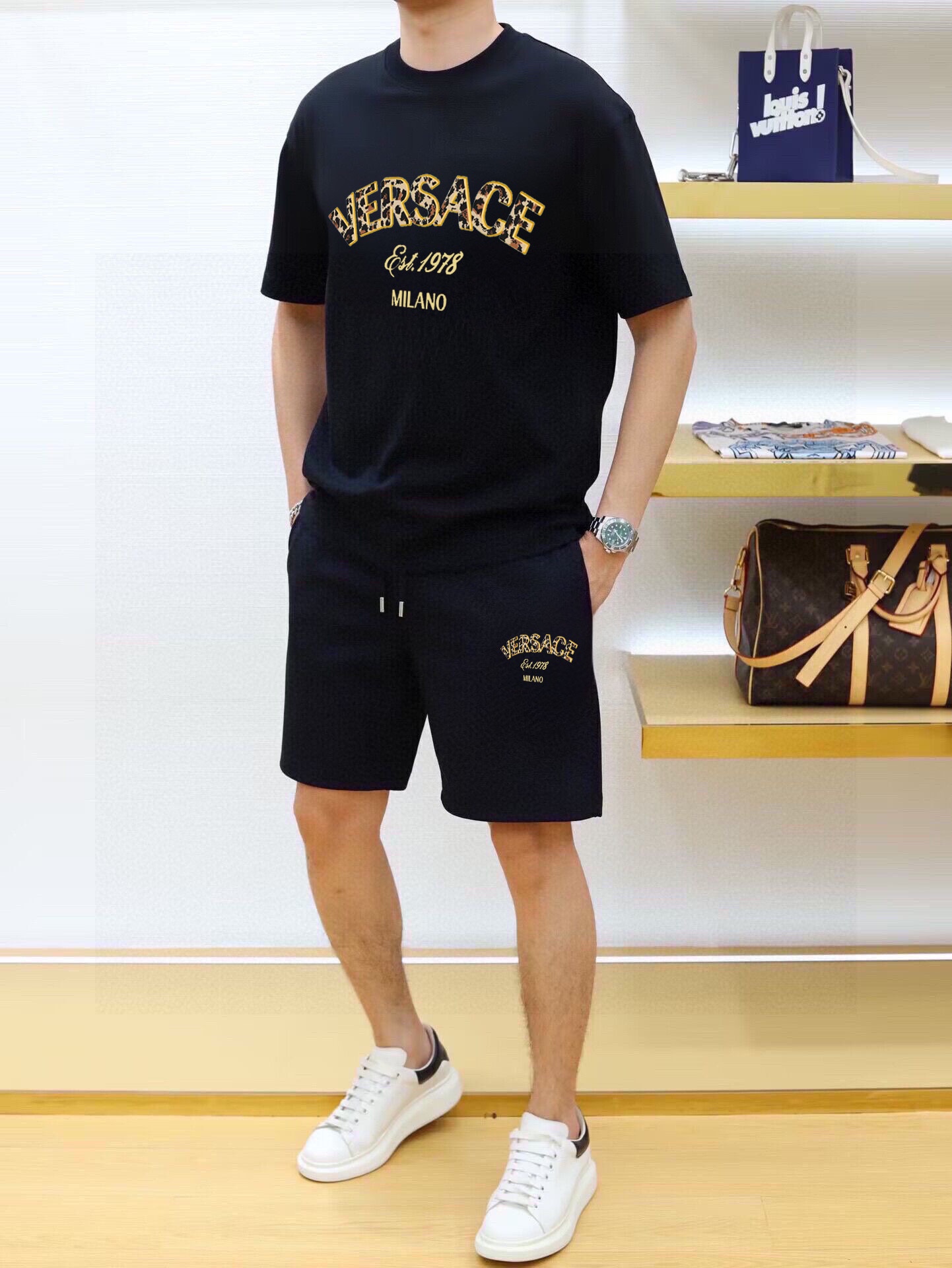VERSACE Spring-Summer 2025 vest set. Classic, simple design. Custom imported cotton fabric, soft & breathable. Brand logo. Sizes M-3XL.