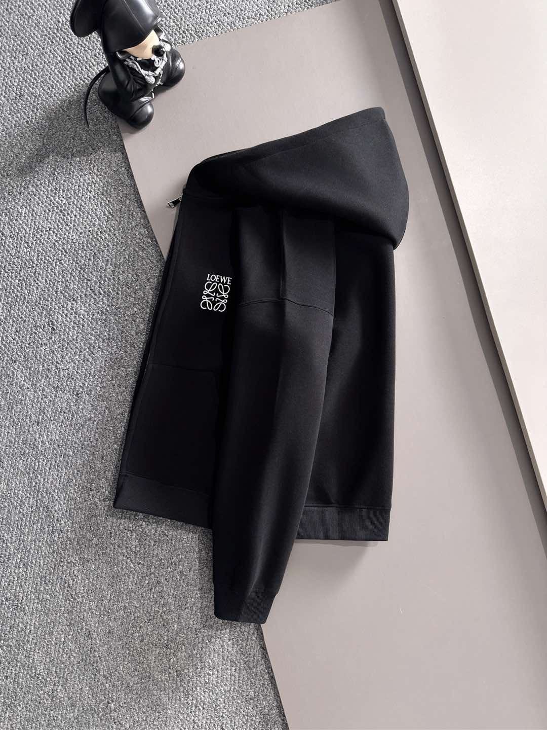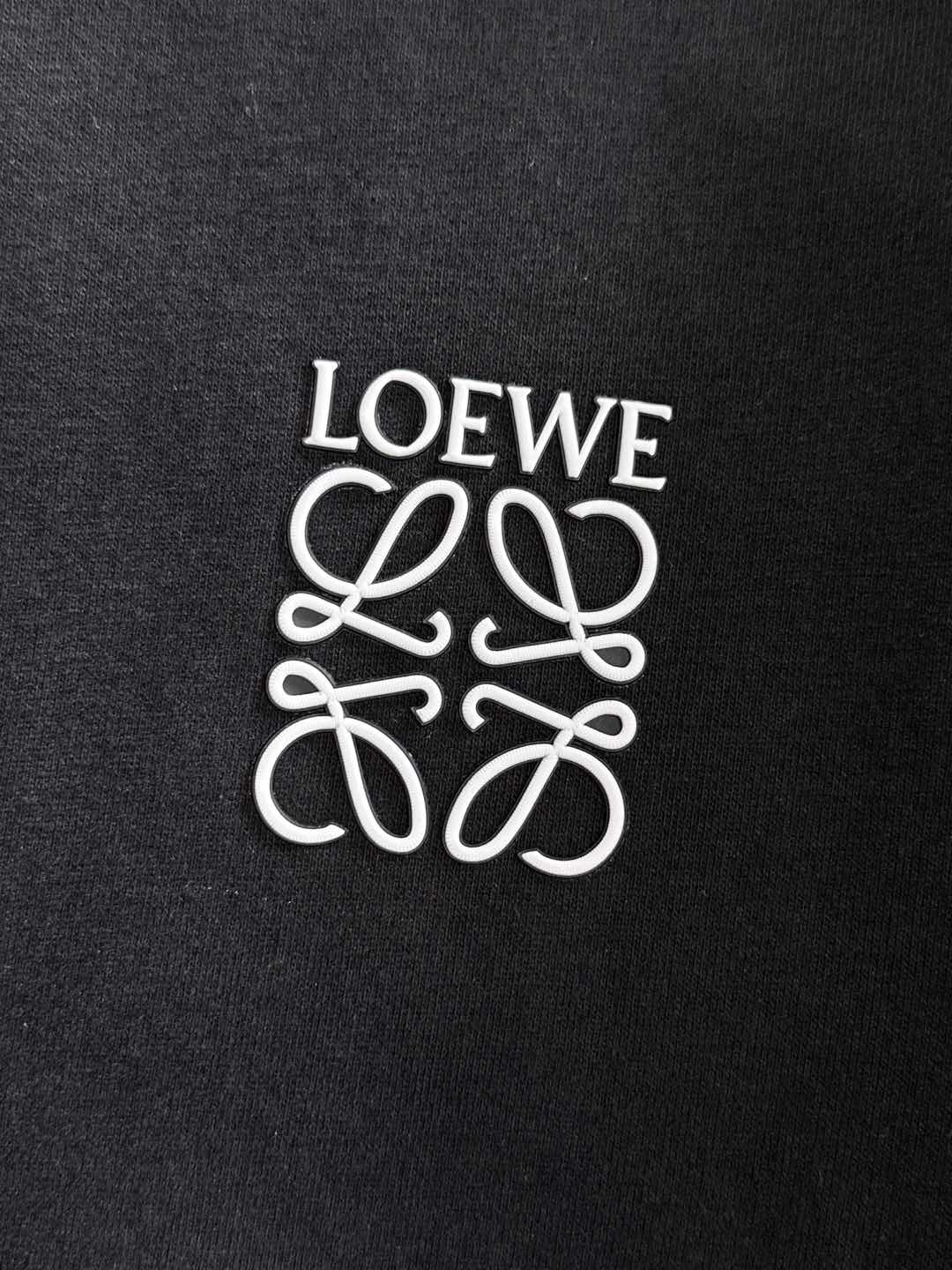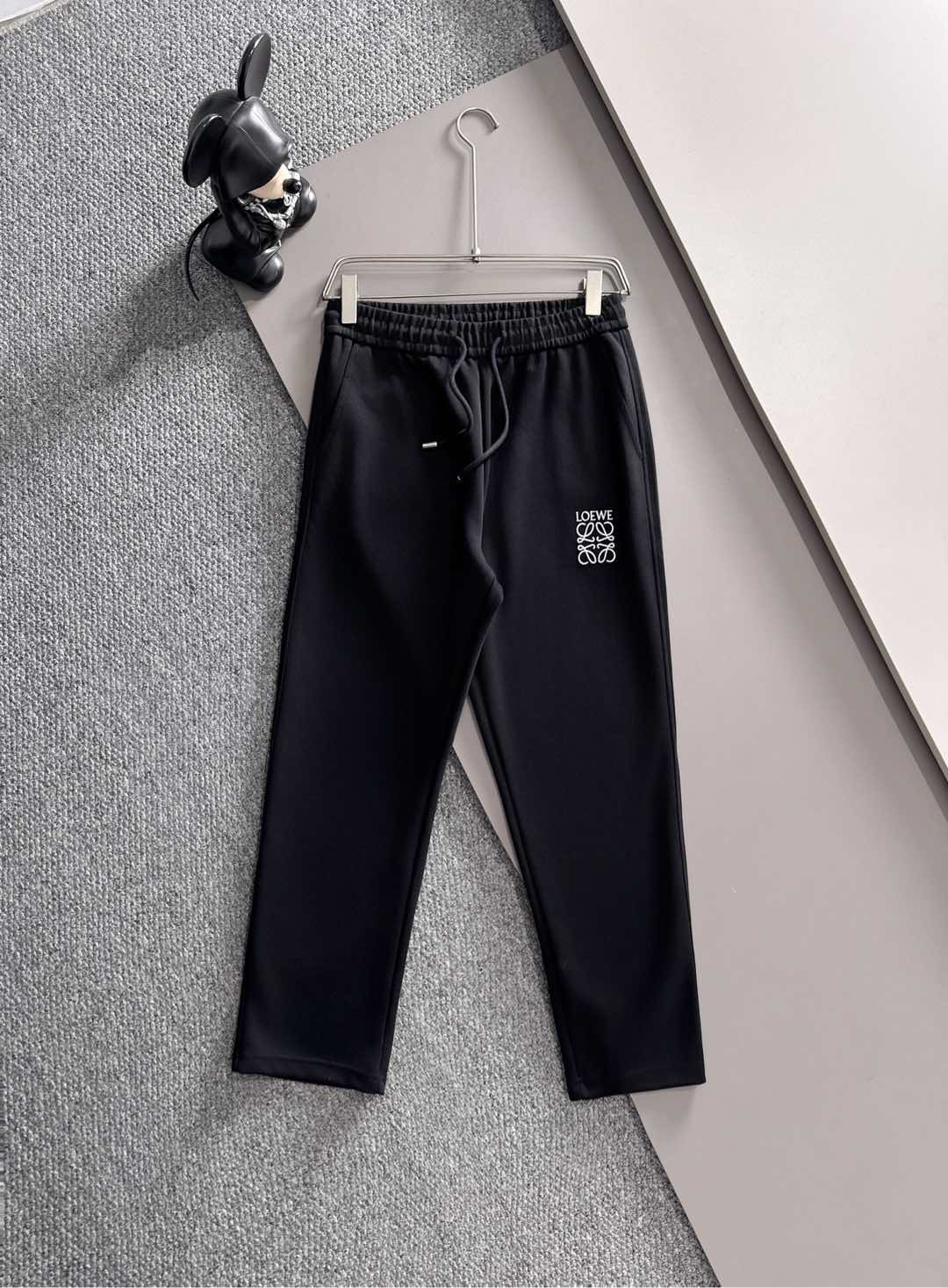 Loewe set: top拼接suit with jacquard pants, logo embroidery, classic black/white tape. Custom fabric, premium craft. Full tags. Sizes M-3XL. Comfort and style unmatched.