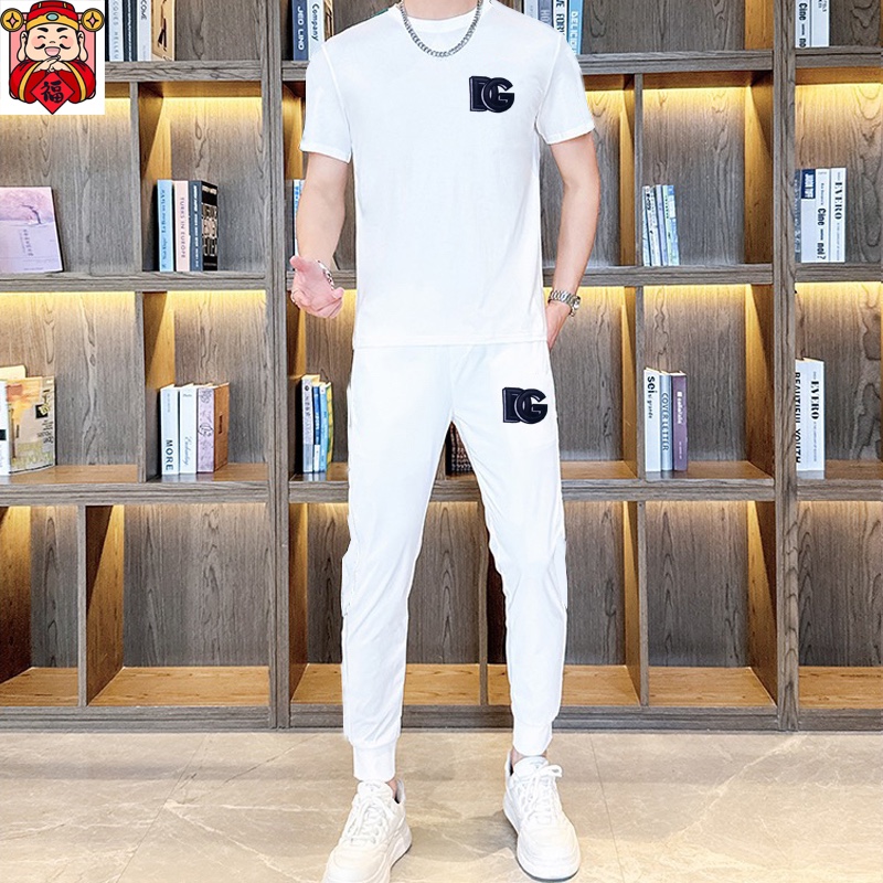 D&G men's summer dual-gloss luxury set. Imported fabric, trendy, versatile. Sizes M-5XL (up to 220斤).