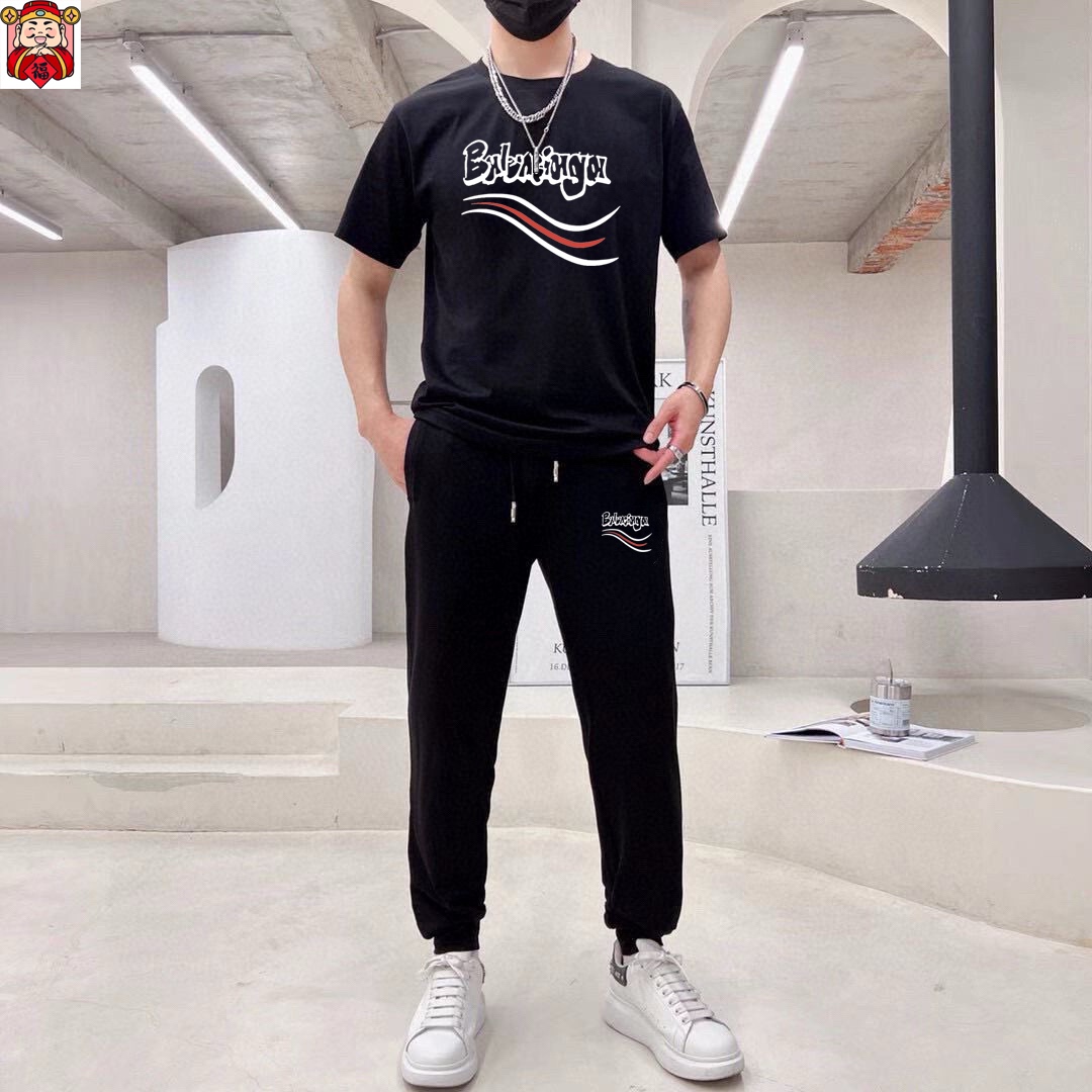 BALENCIAGA men's summer dual-gloss luxury set. Imported fabric, trendy, versatile. Sizes M-5XL (up to 220kg).