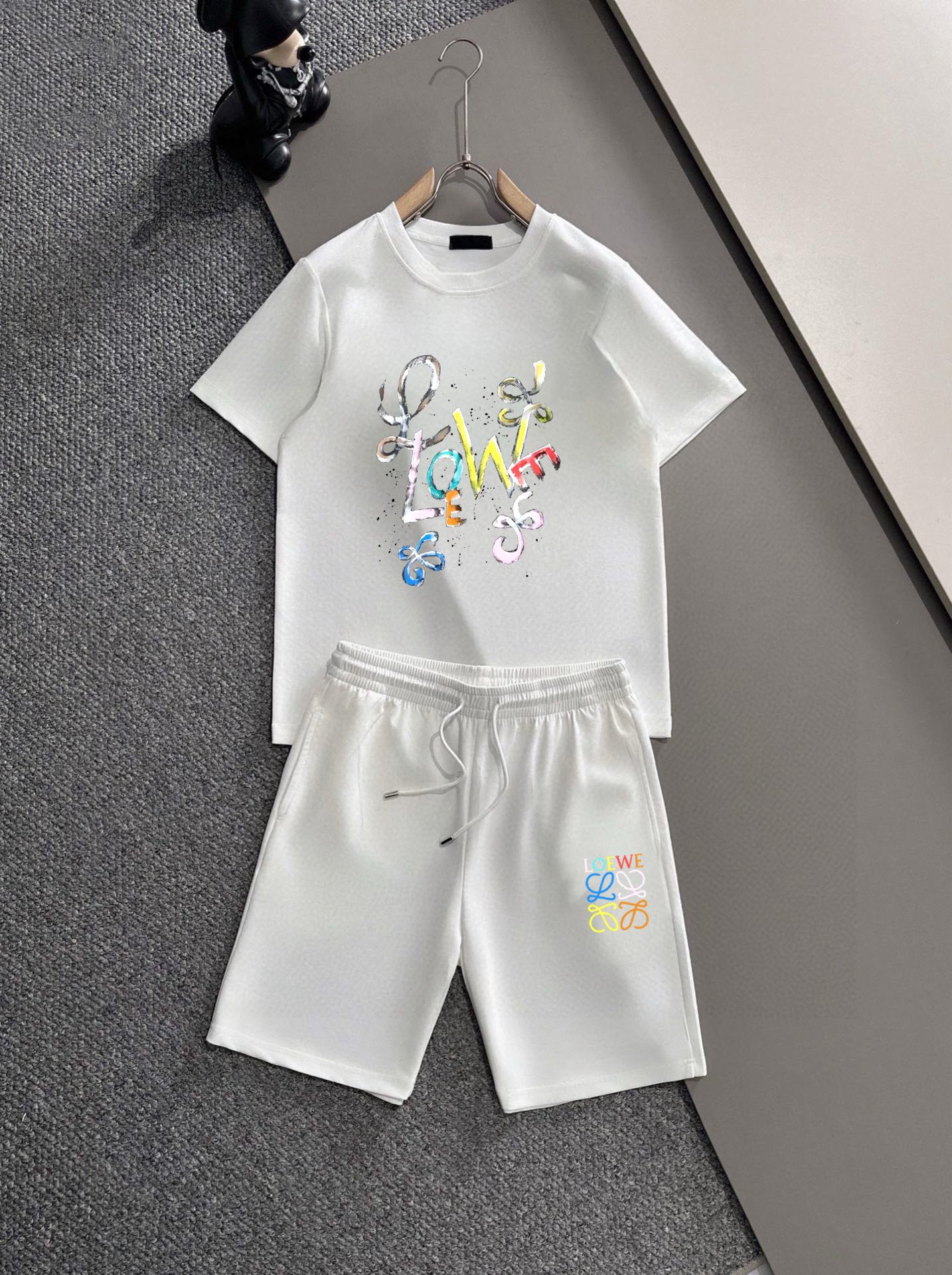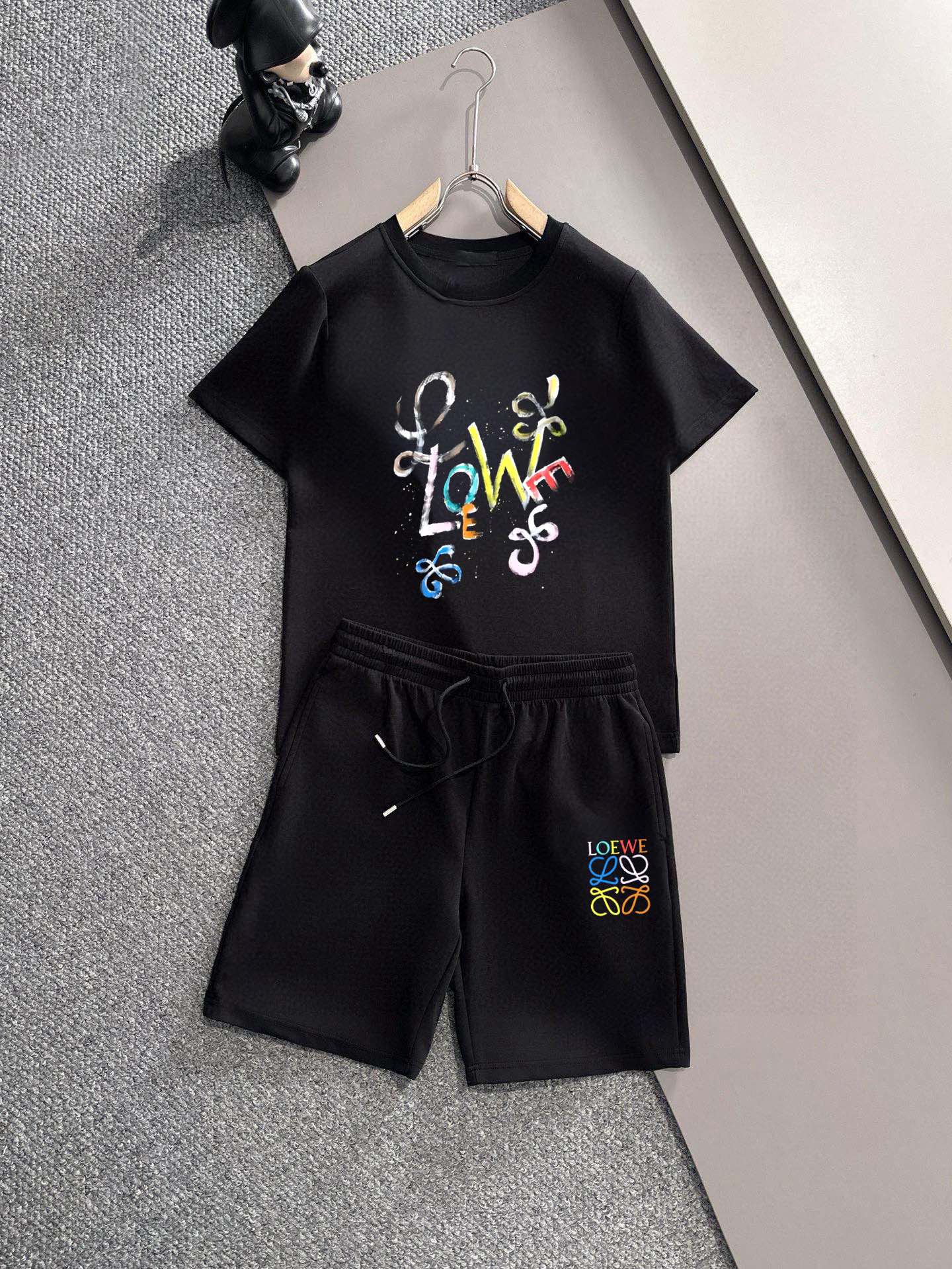 LOEWE brand 2025 men's short sleeve and shorts set. Official website同步 sales. High-end version with soft texture and comfortable fit. Excellent tailored cut. Sizes: M-5XL.