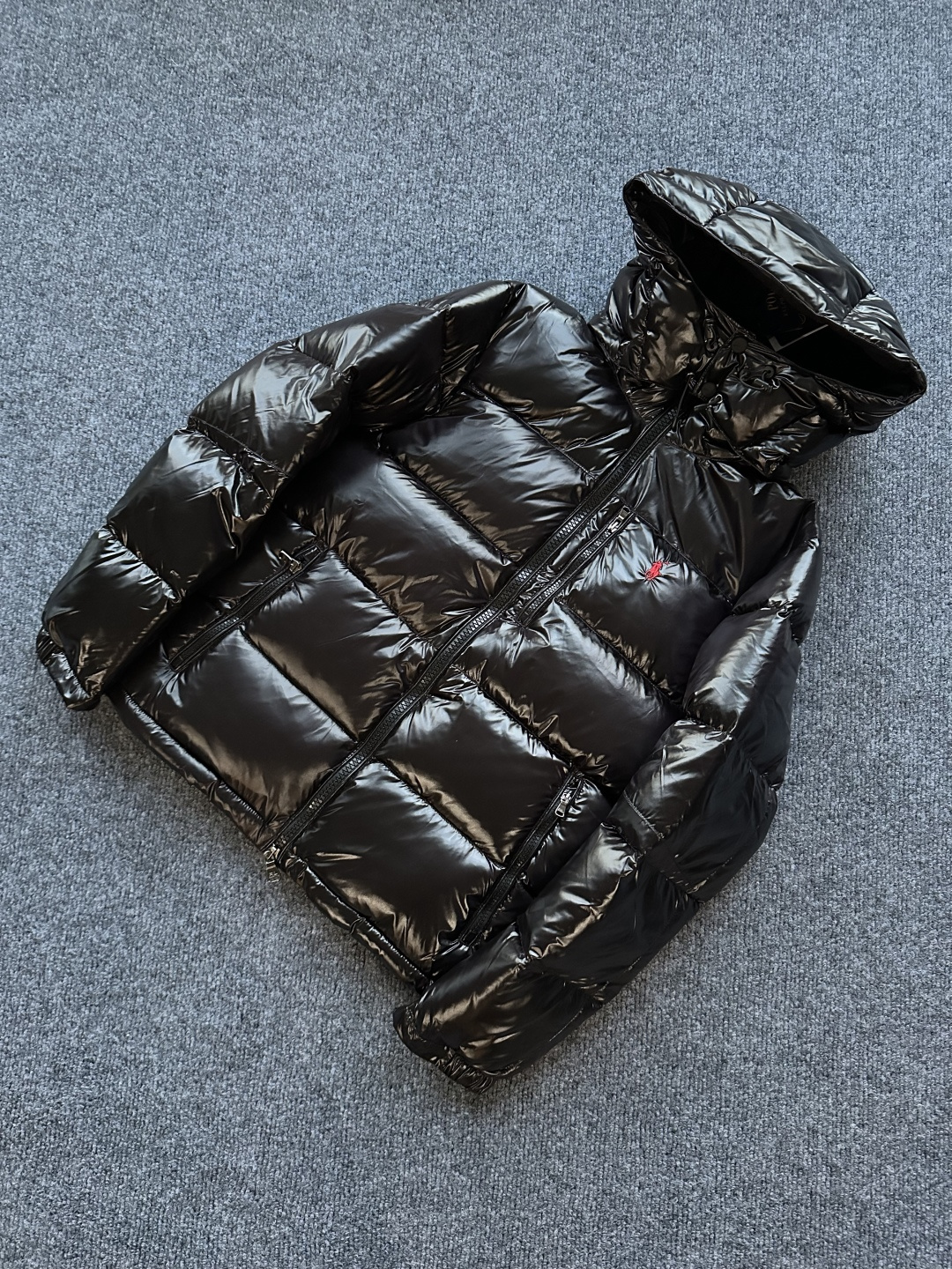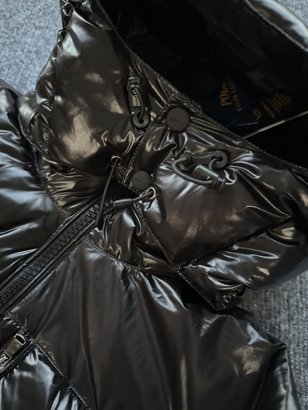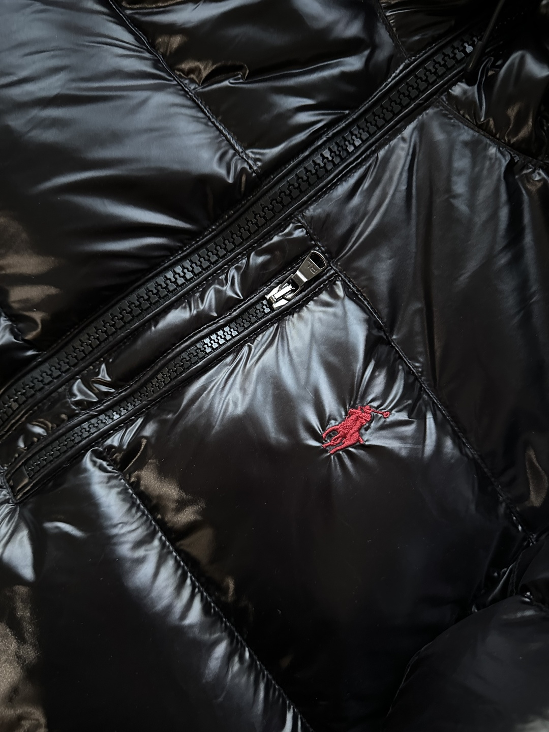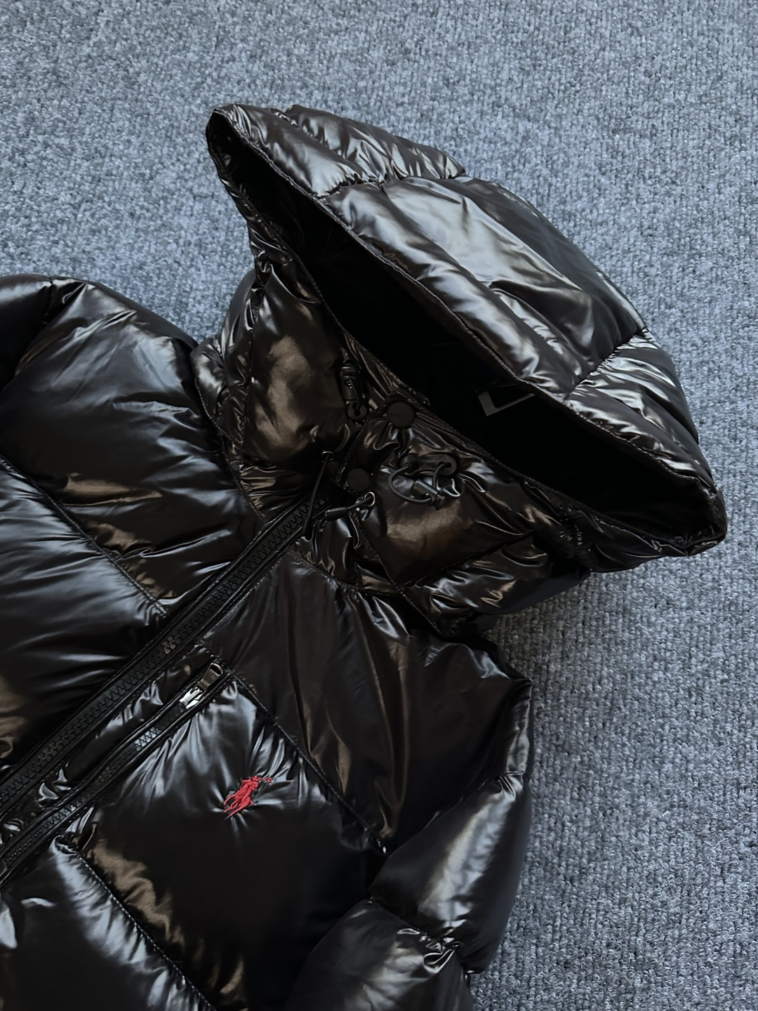 Ralph Lauren Black Glossy Hooded Down Jacket, Premium Quality, Superb Fill.