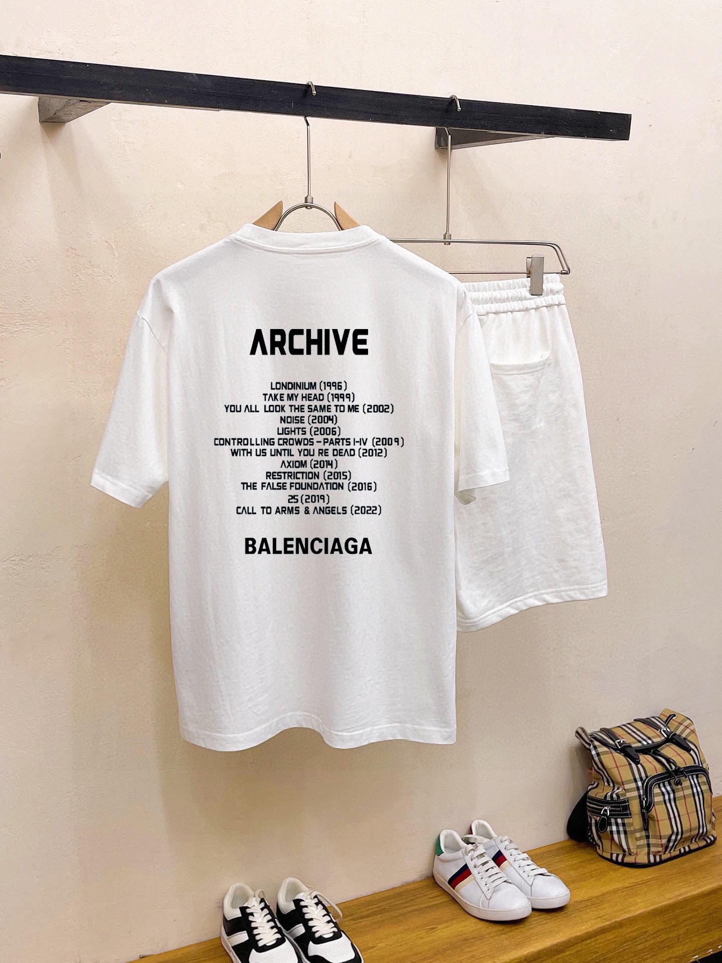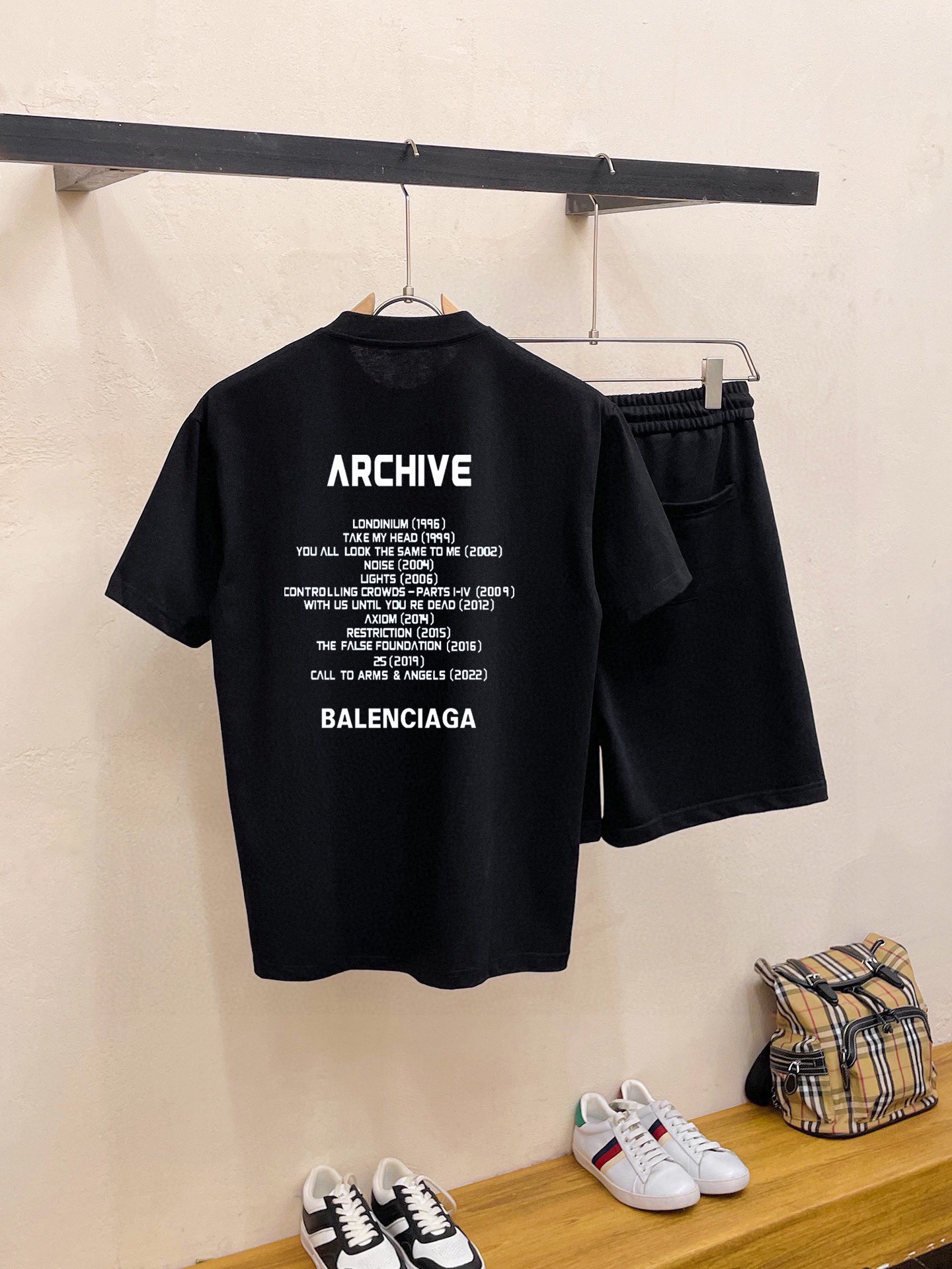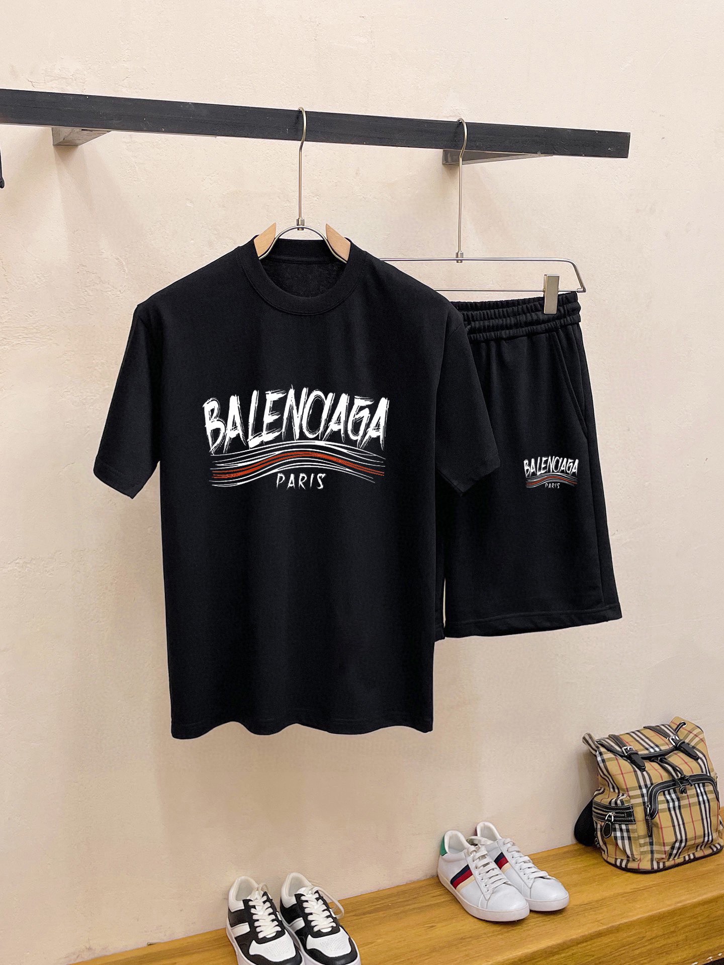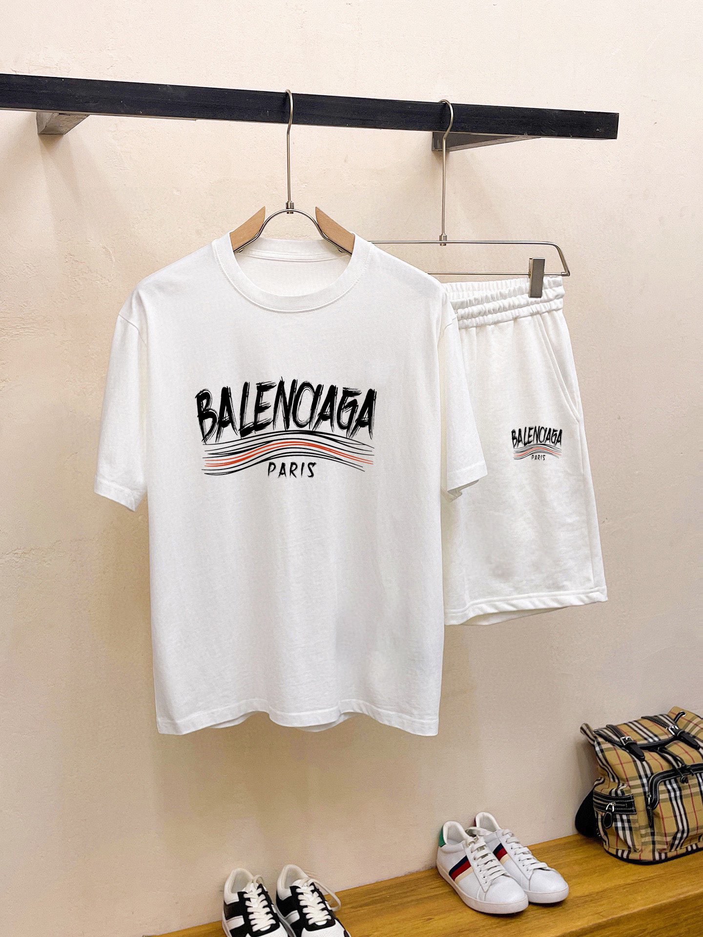 BALENCIAGA men's 2025 short sleeve & shorts set. Official store style, premium version, soft fabric, comfortable fit, great tailored cut. Sizes: M-5XL.
