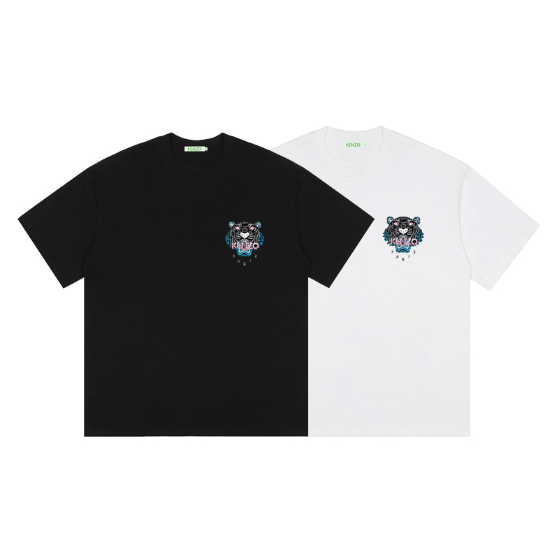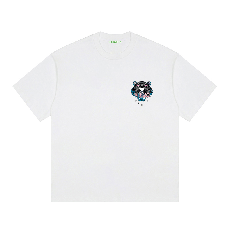 KENZO small tiger head print round neck short sleeve T-shirt, early spring 2020 new short T, front 3D custom logo print, 100% ice porcelain cotton smooth fabric, loose casual versatile fit