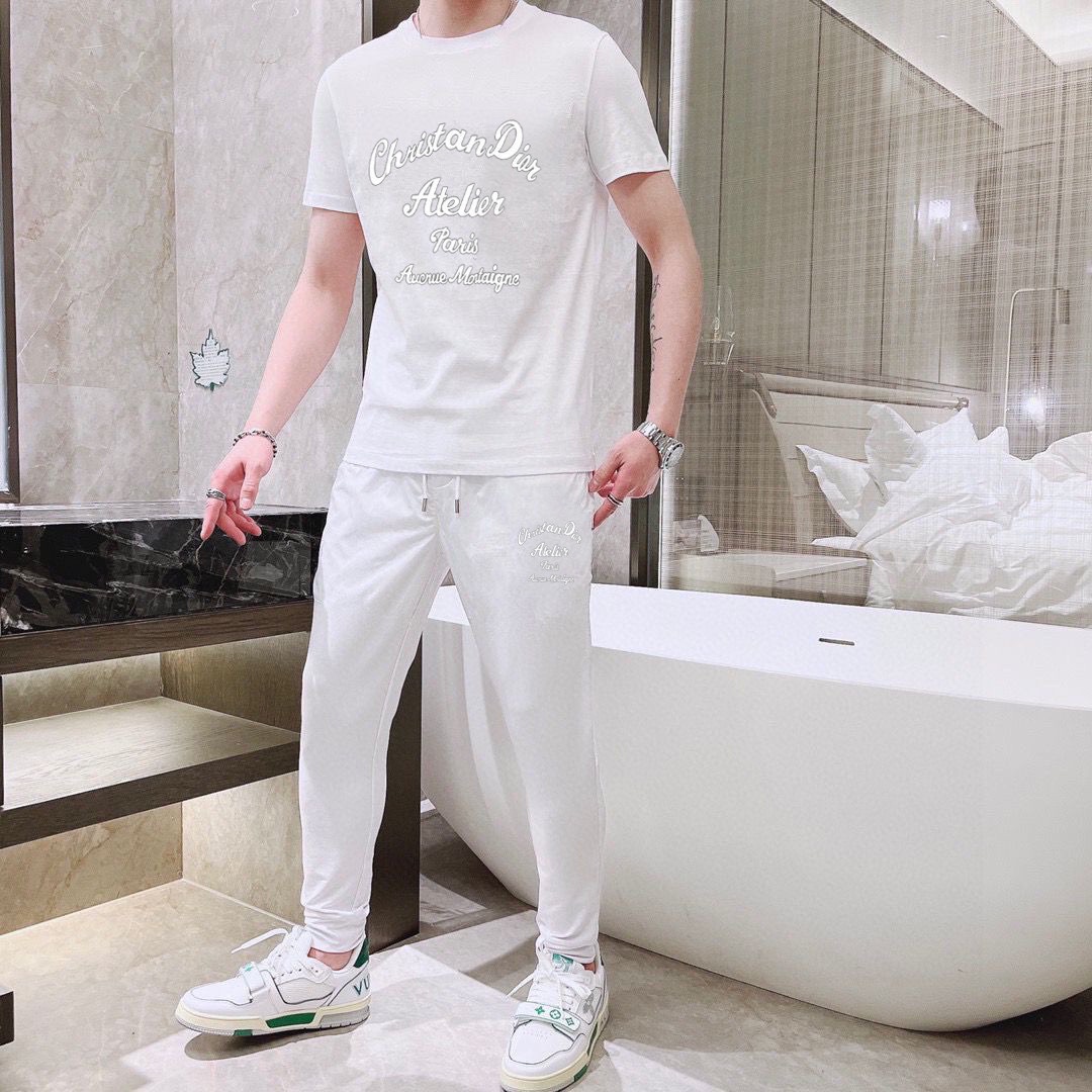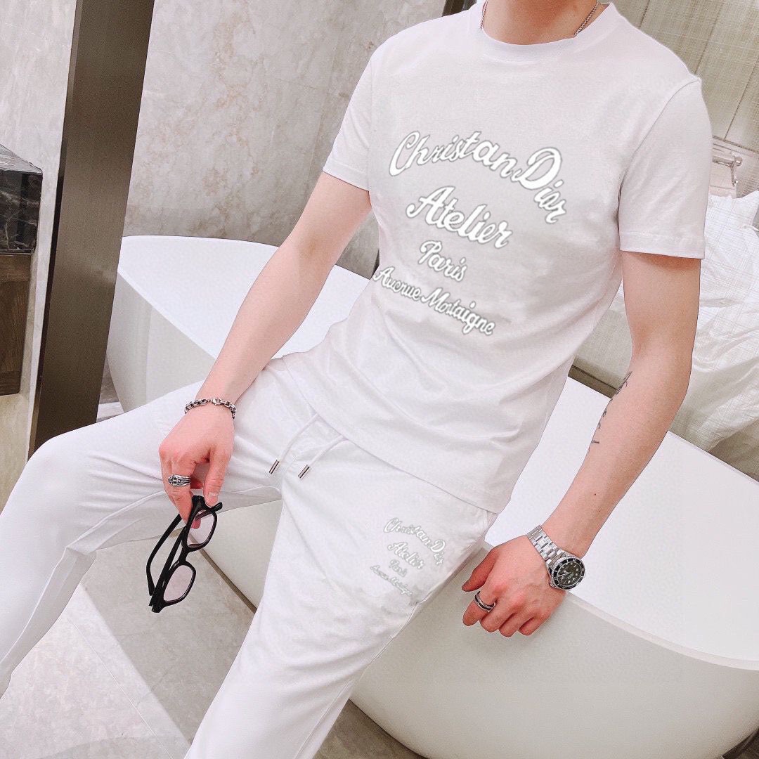 DIOR men's summer double mercerized high-quality set. Imported fabric, trendy, versatile. Sizes M-5XL.
