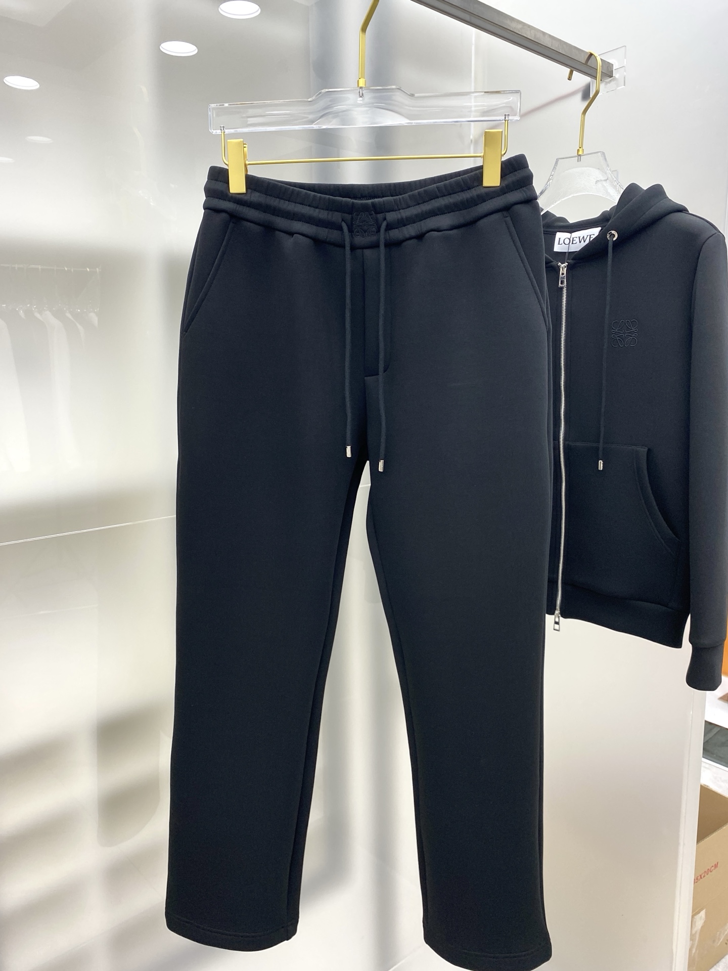 Loewe 2025 early autumn casual set. New boutique style with精致细节, brand logo, custom fabric, structured fit, metal zipper. Trendy urban look. Sizes M-3XL.