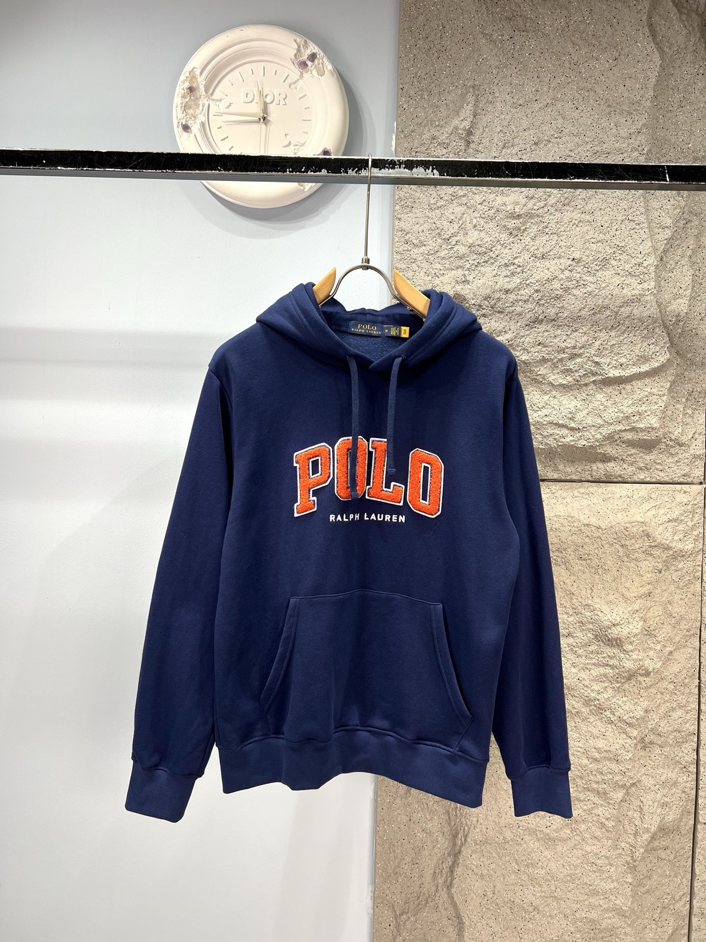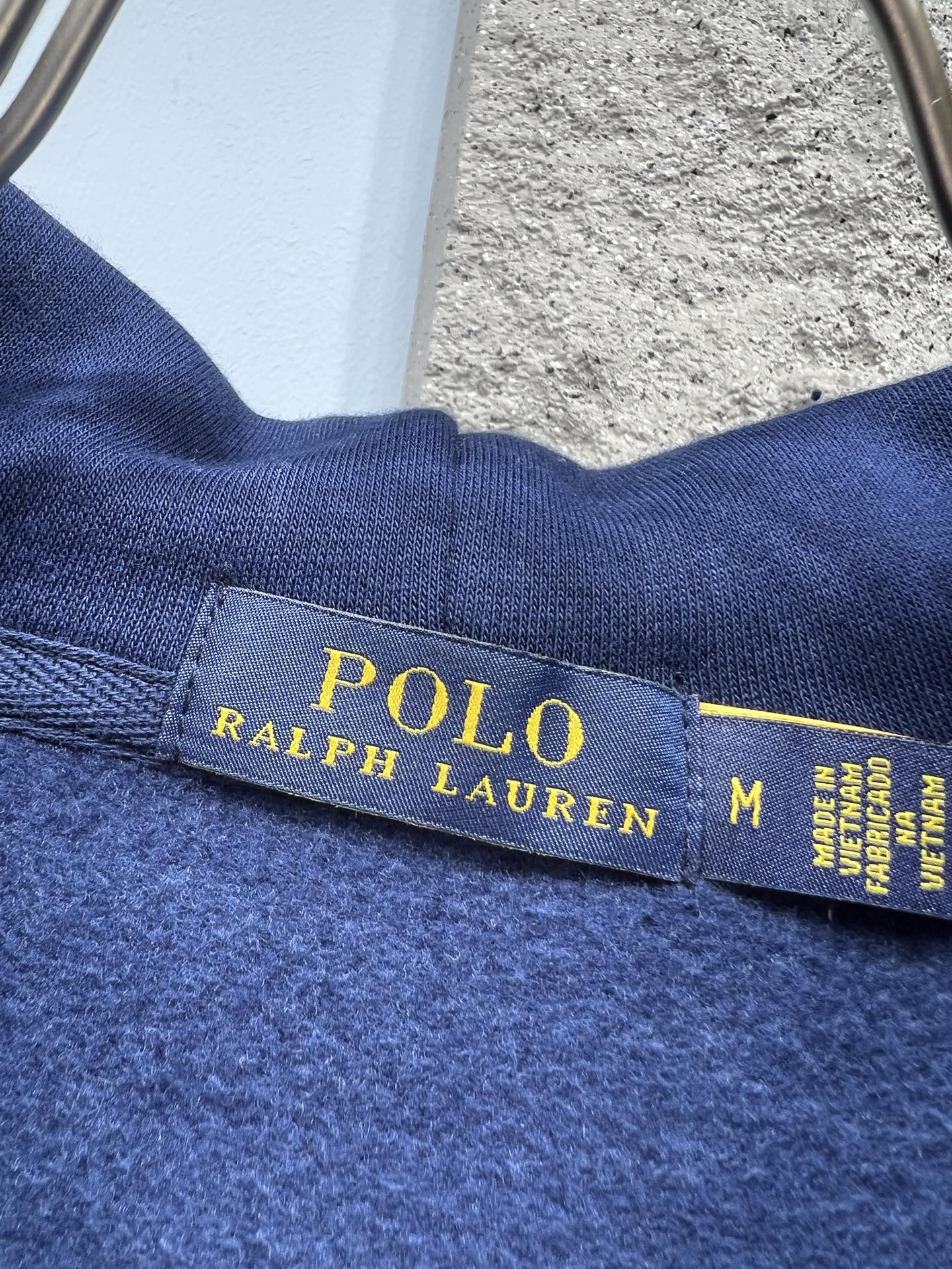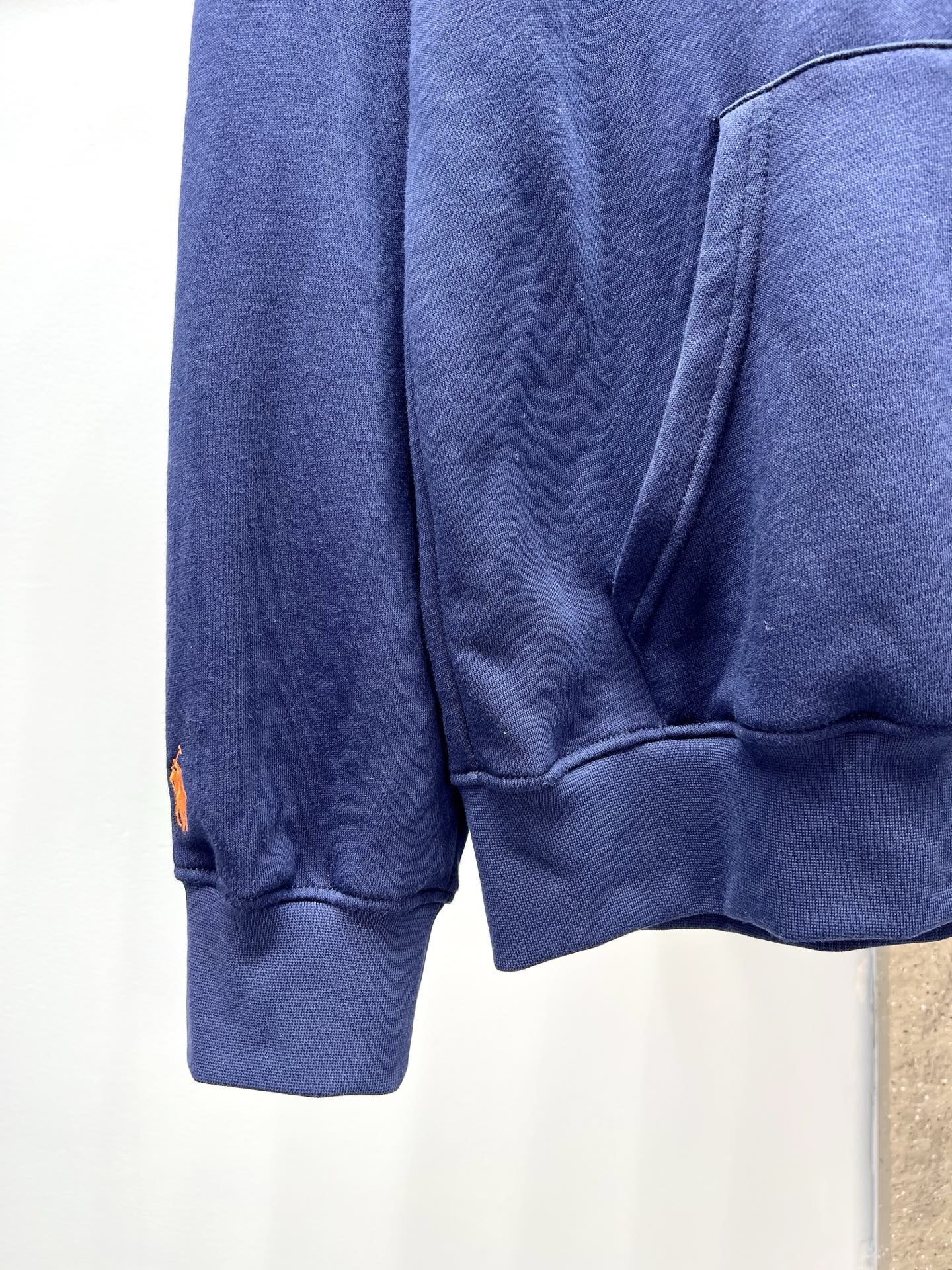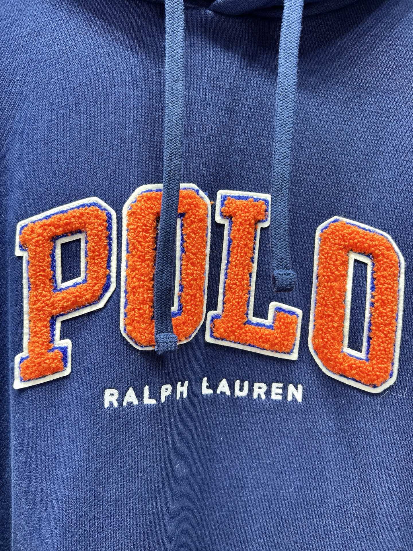 Ralph Lauren hoodie with terry embroidery. 60% cotton, 40% polyester. Fleece lining: 85% acrylic, 15% wool. Oversized fit. Colors: Gray, Navy. Sizes: S-XL. Dry clean or machine wash cold.