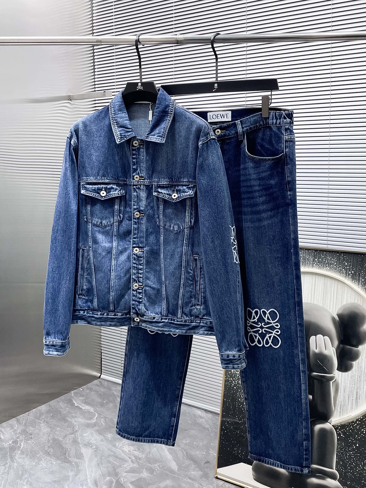 Loewe 2025 Fall/Winter denim set. High-end version with custom fabric, breathable and comfortable. Excellent details and brand elements. Soft, fine texture. Casual cut, great fit. Sizes S-XL.