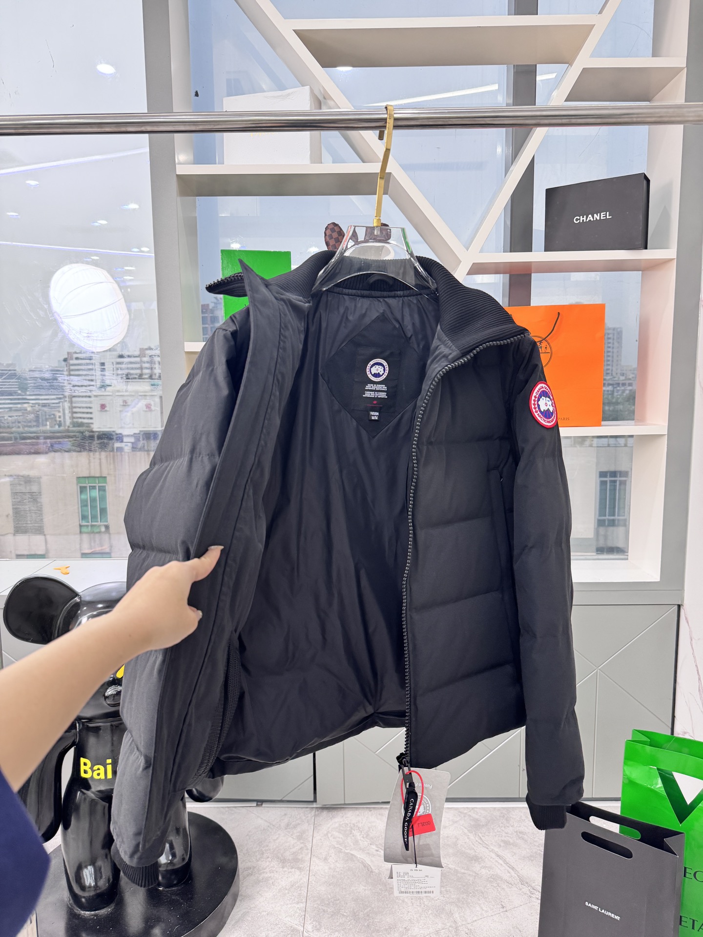 Men's Ganand Goose Canada Goose short jacket. Popular on INS. Wolf fur collar. 3D waterproof fabric, windproof, warm. Classic style. Colors: lime, black, graphite. Sizes: S-3XL.
