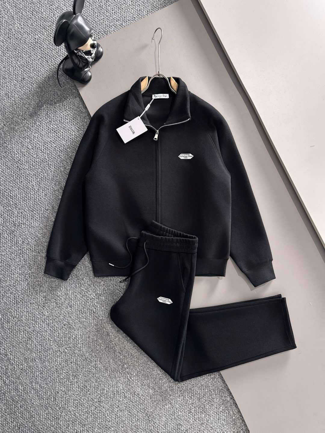 Dior set edition: top拼接suit with woven tape, zipper pants, logo embroidery, classic black and white. Custom fabric, fine craftsmanship, complete with 3 labels. Comfortable and fashionable. Sizes: M-3XL.