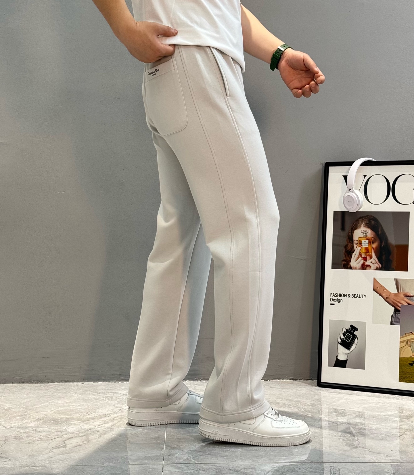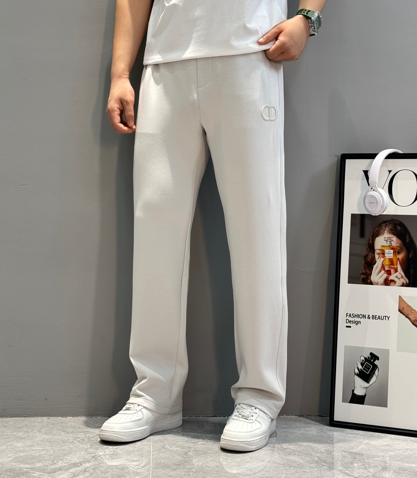 Dior 25s casual pants, straight-leg design. New cotton fabric, skin-friendly, wrinkle-resistant. Elastic waistband, 3D embroidery. Colors: black, light gray. Sizes: M-3XL.