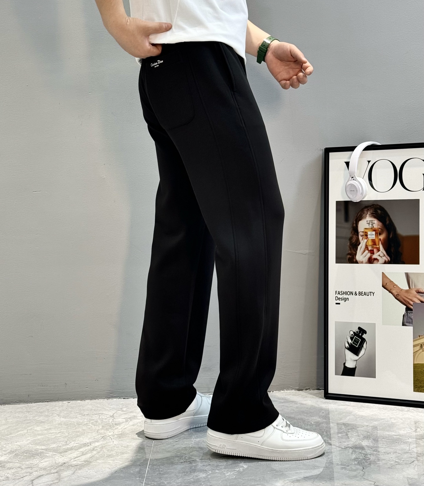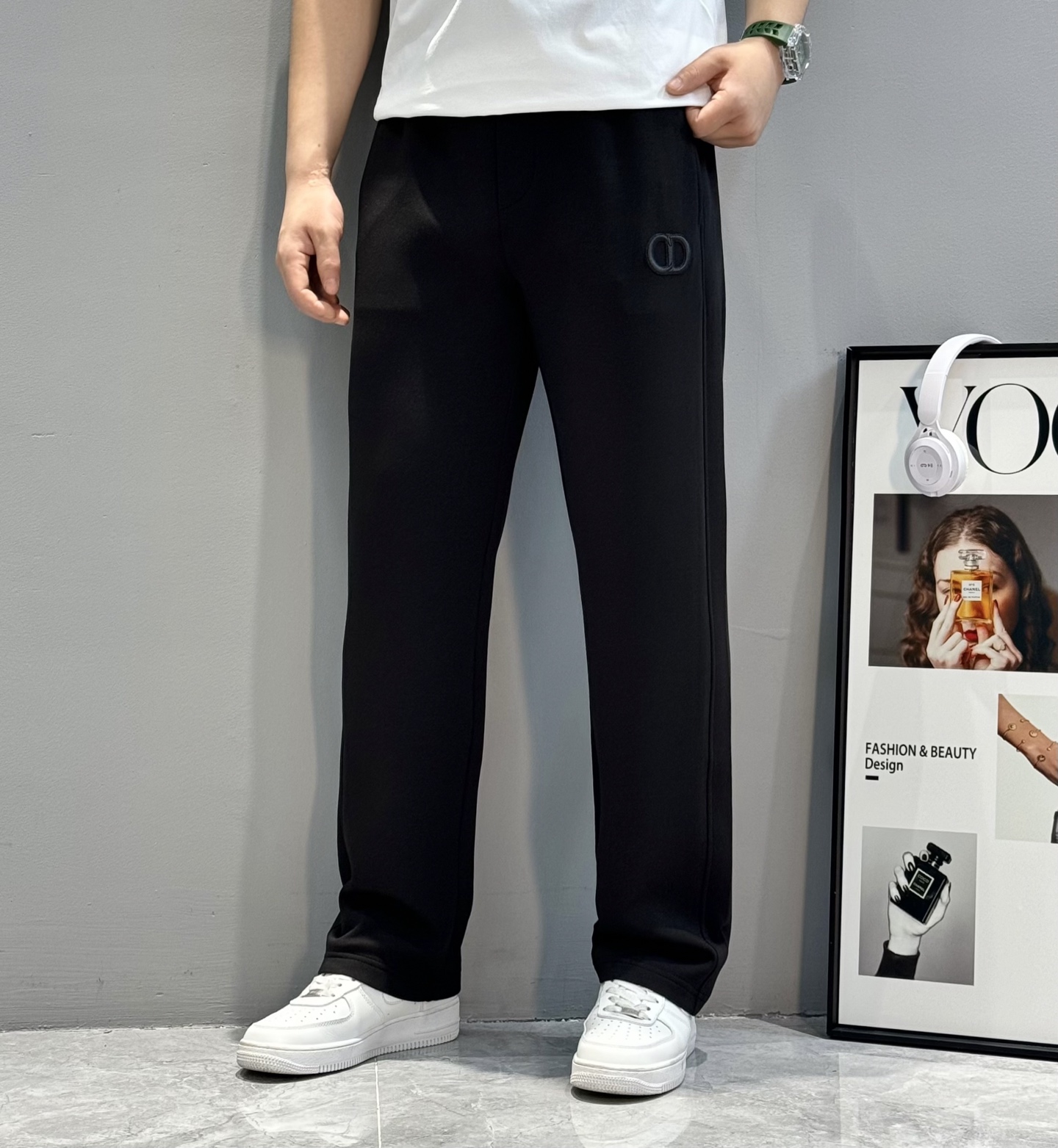 Dior 25s casual pants, straight-leg design, 2025 cotton fabric, soft and comfortable. Elastic waistband, 3D embroidery, brand logo. Colors: black, light gray. Sizes: M-3XL.