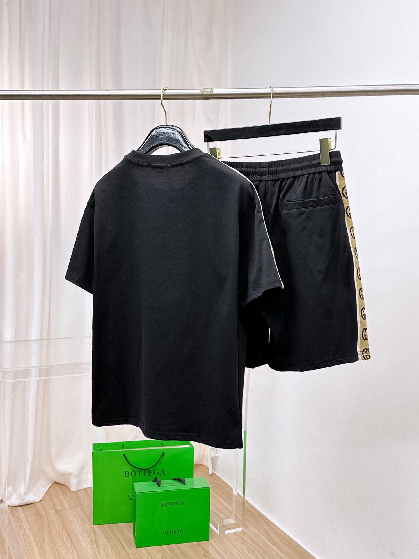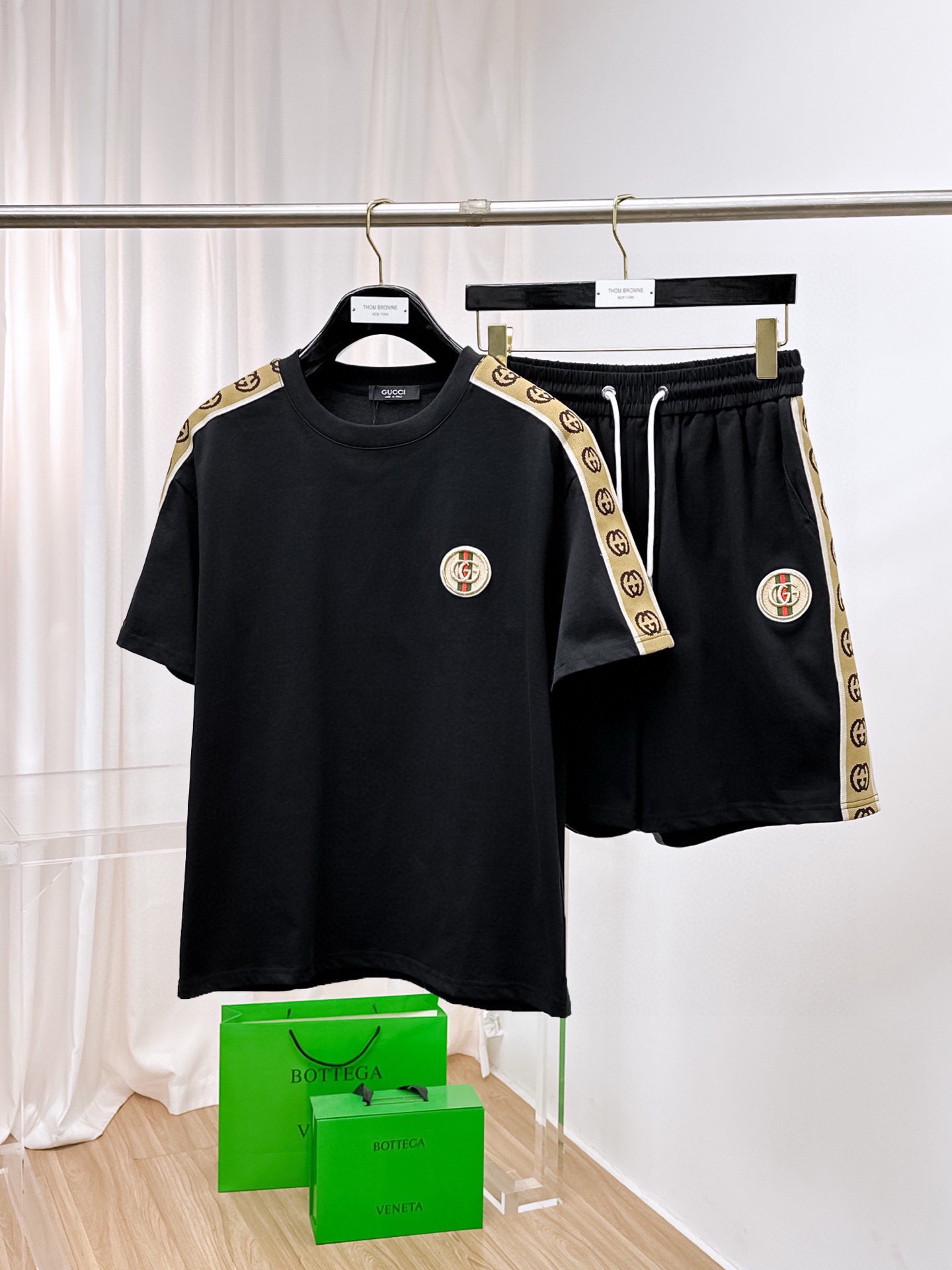 GUCCI 2025 cotton short sleeve and shorts set. Breathable, smooth fabric with classic logo. Sizes: M-3XL.