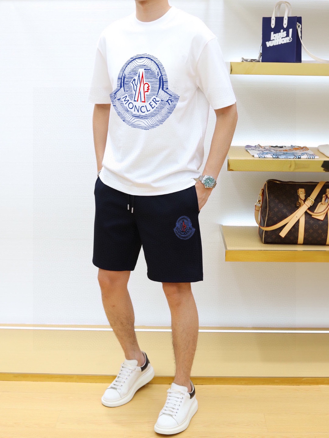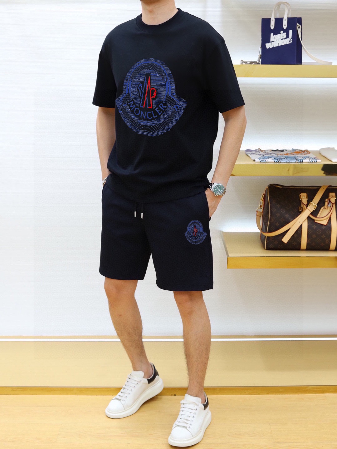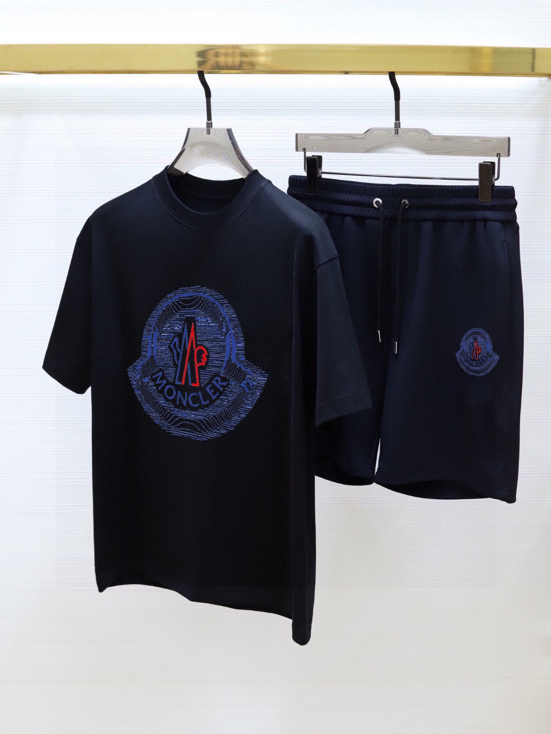 Home • Apparel • Suit • MONCLER 2025 new men's short sleeve and shorts set. High-end version with soft texture and comfortable fit. Available in sizes M-5XL.