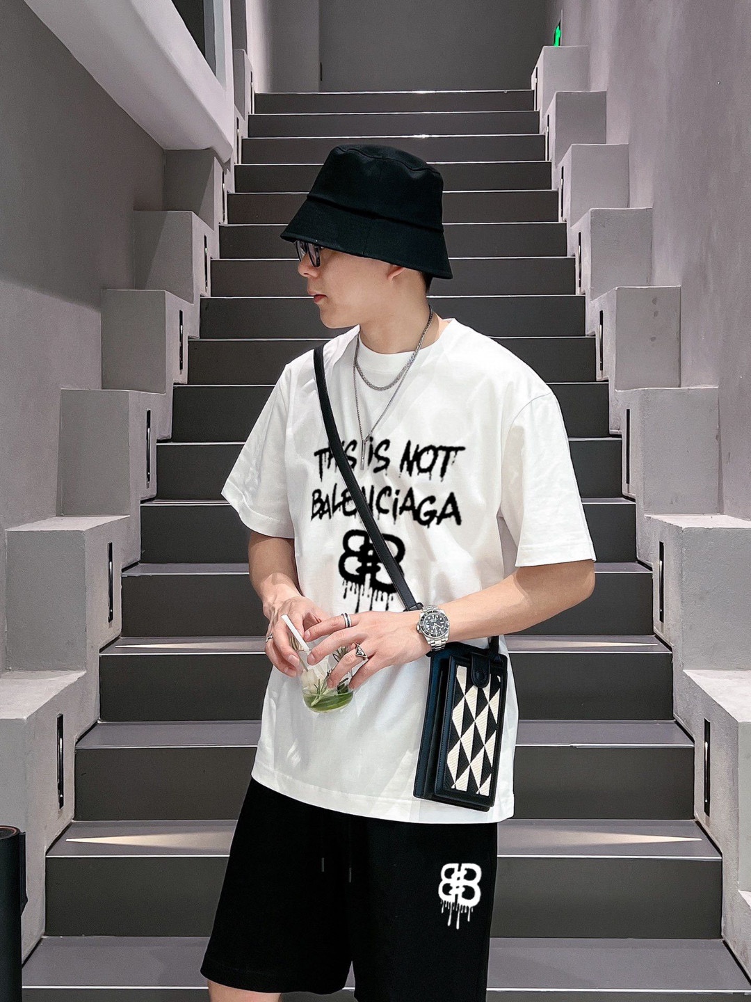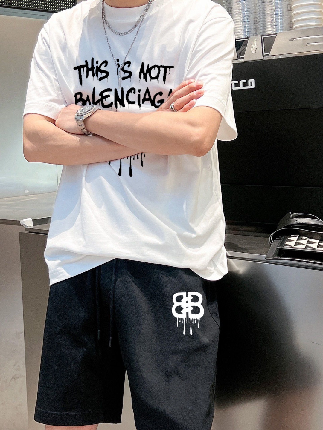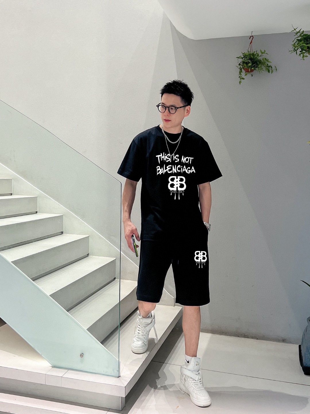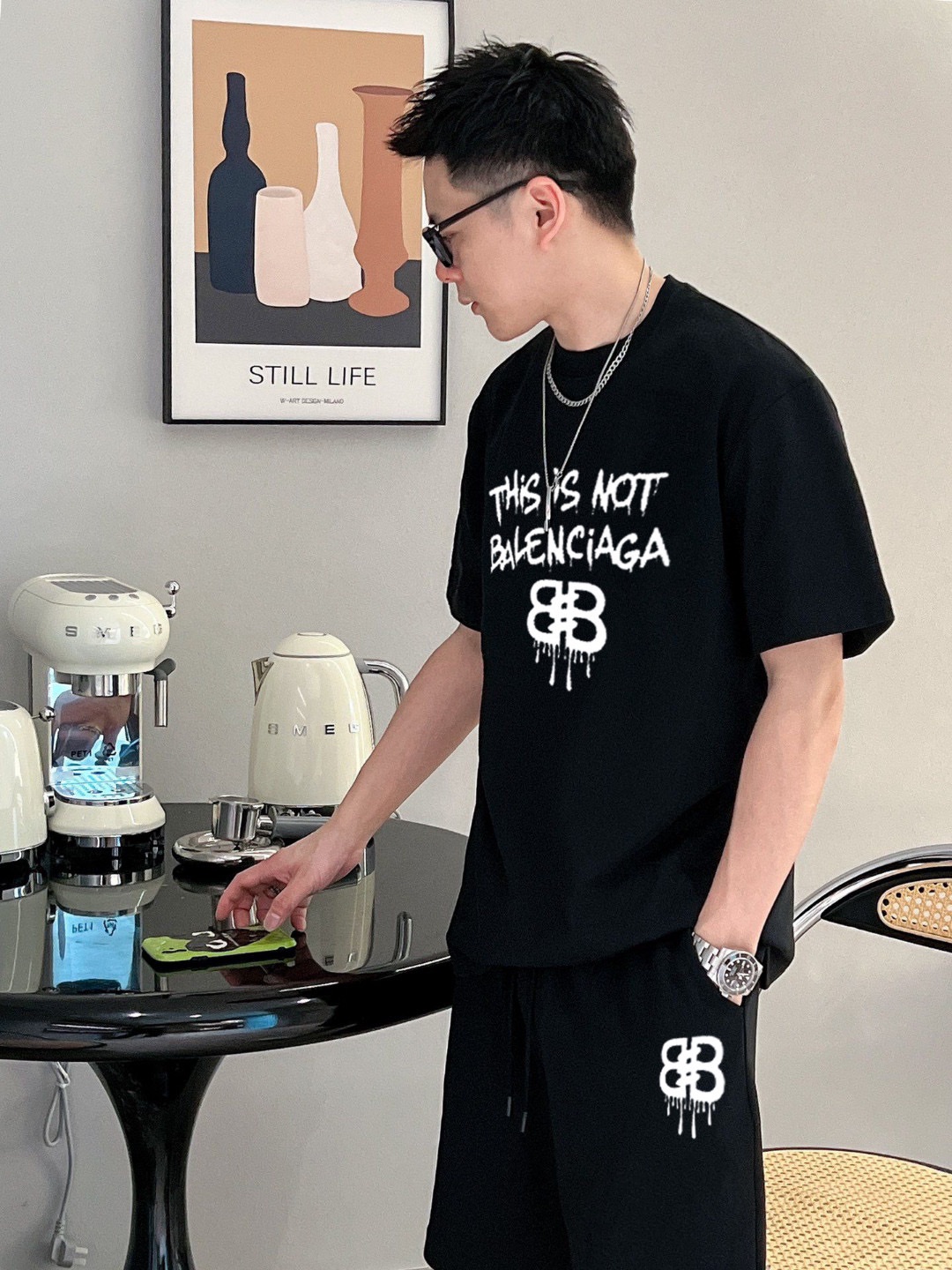 BALENCIAGA 2025 spring/summer vest set. Classic minimalist design, comfortable imported cotton, breathable. Features brand logo. Sizes M-3XL.