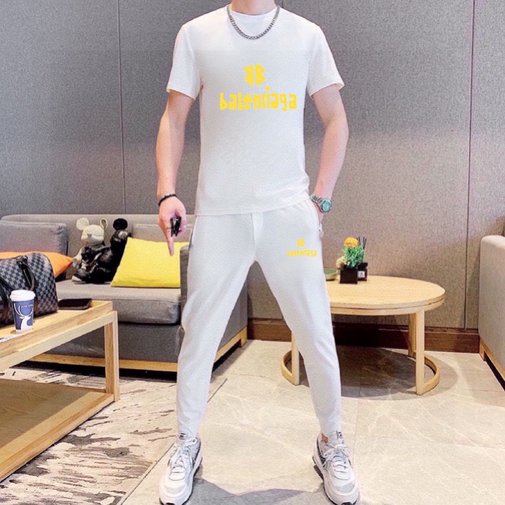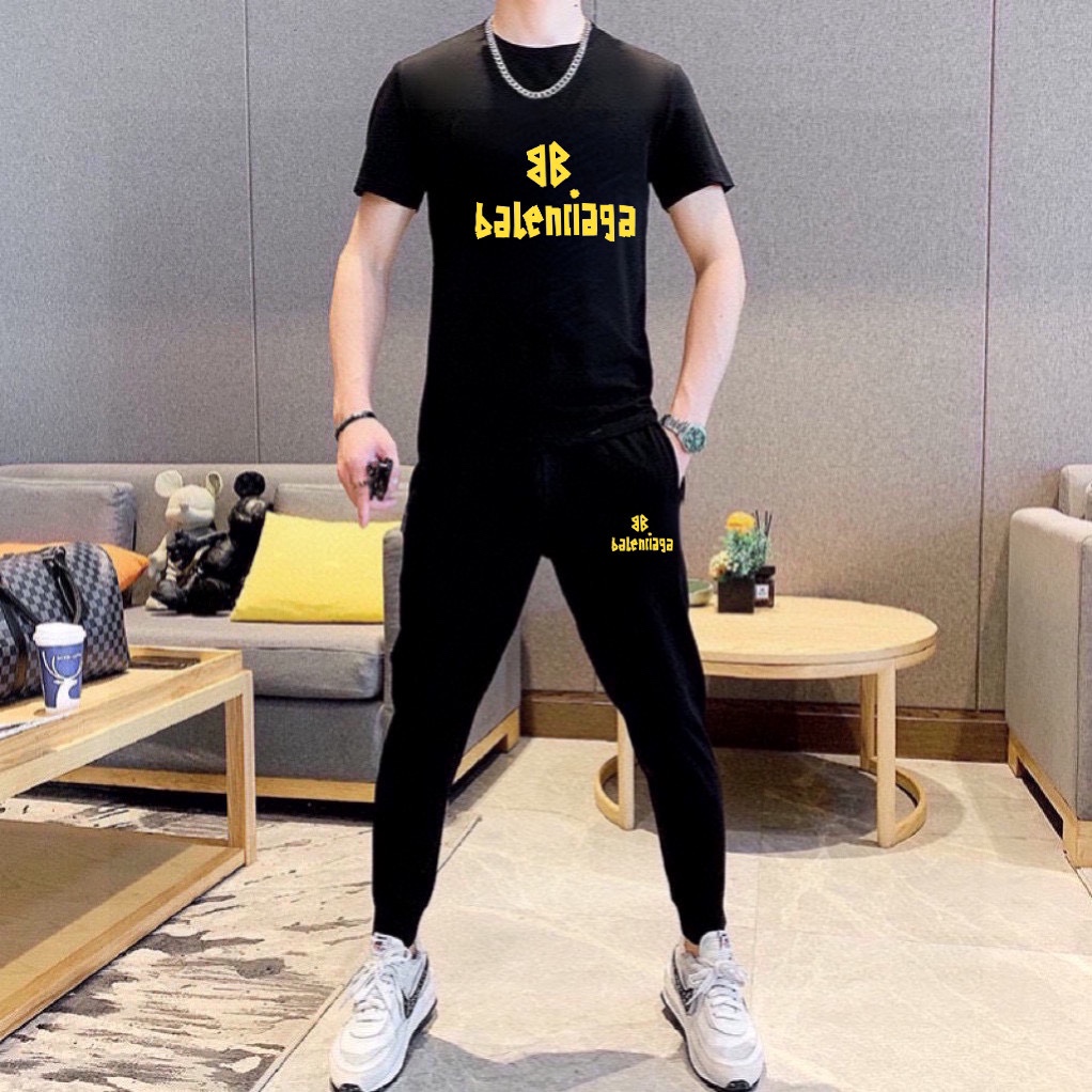 BALENCIAGA men's summer dual-gloss luxury set. Imported fabric, trendy design. Sizes M-5XL (up to 220斤).