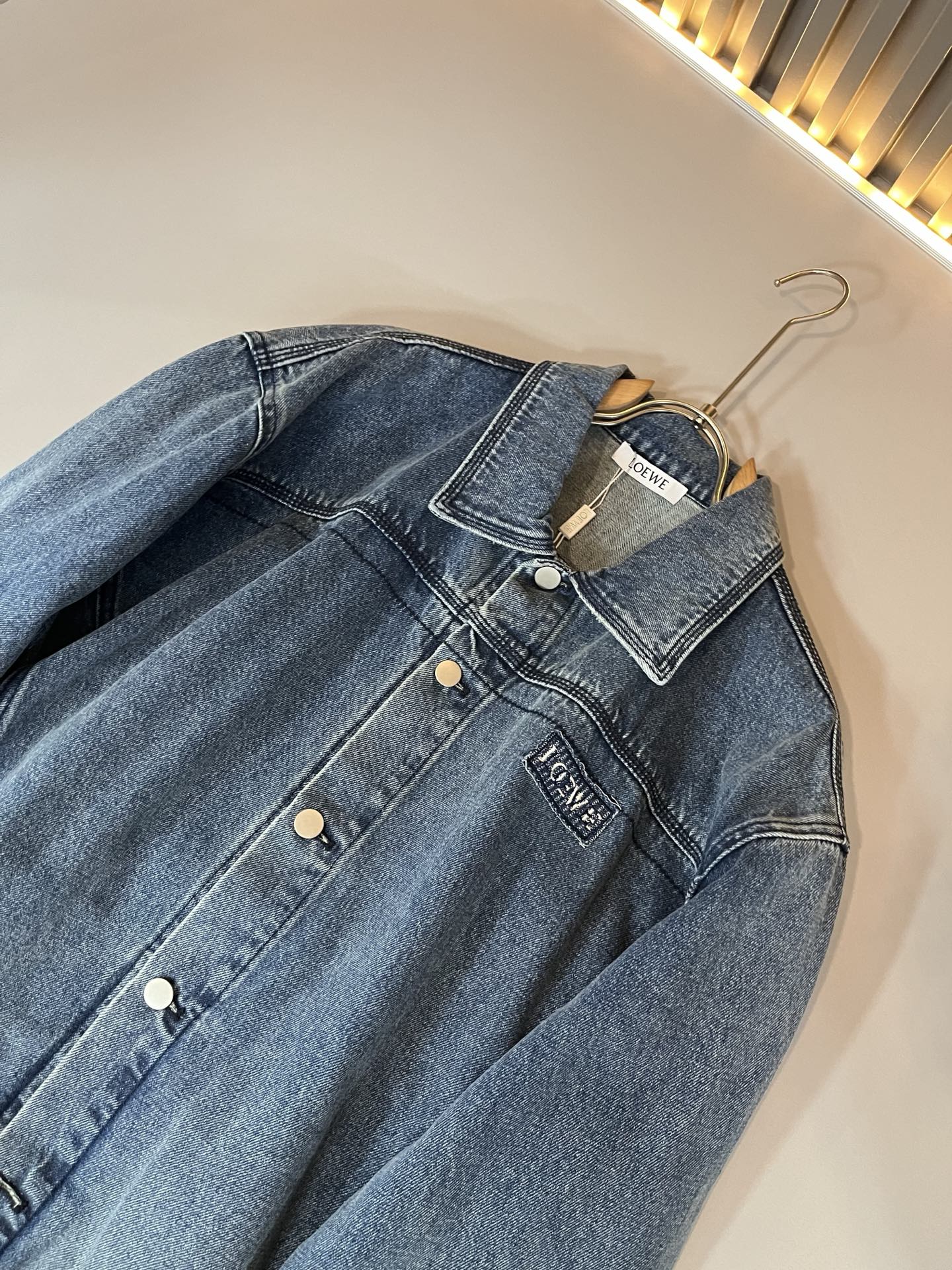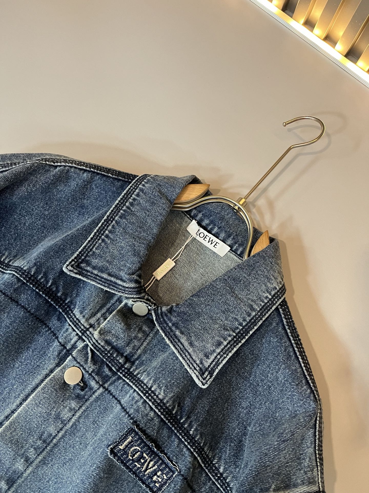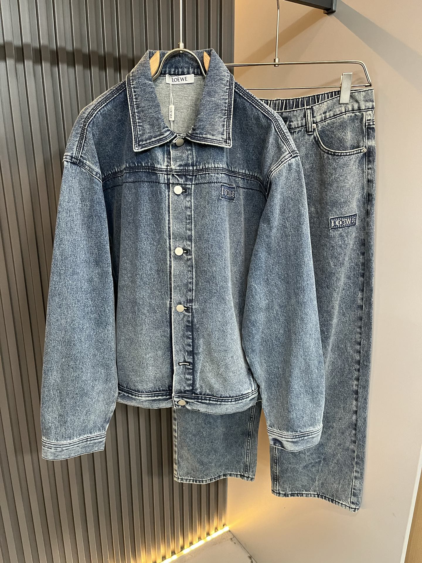 LOE*WE 2025 Fall/Winter unisex denim set. Italian factory order, personalized high-end style. Logo embroidery and leather design. Custom original cotton fabric. Trendy must-have item. Sizes: S-2XL.