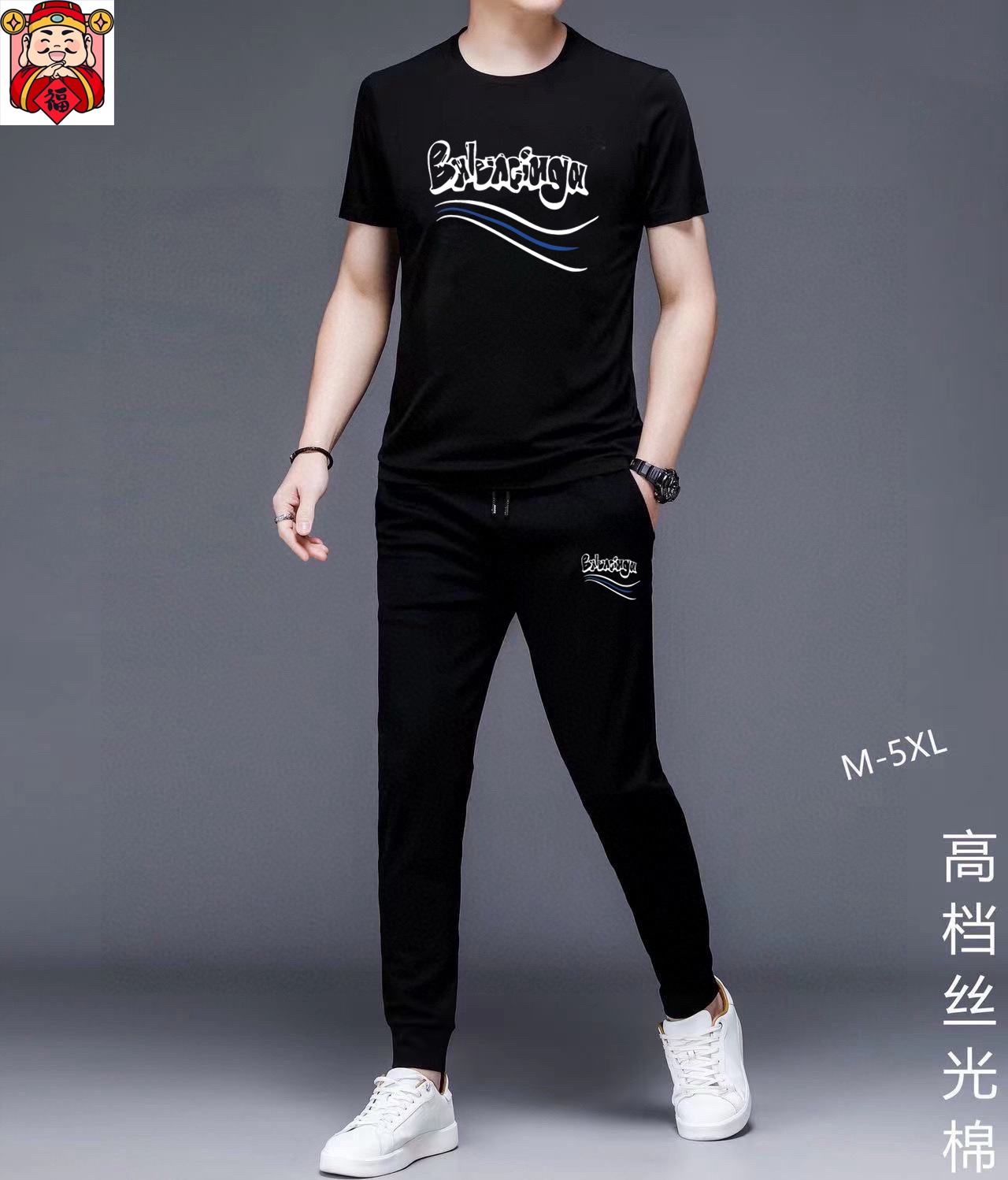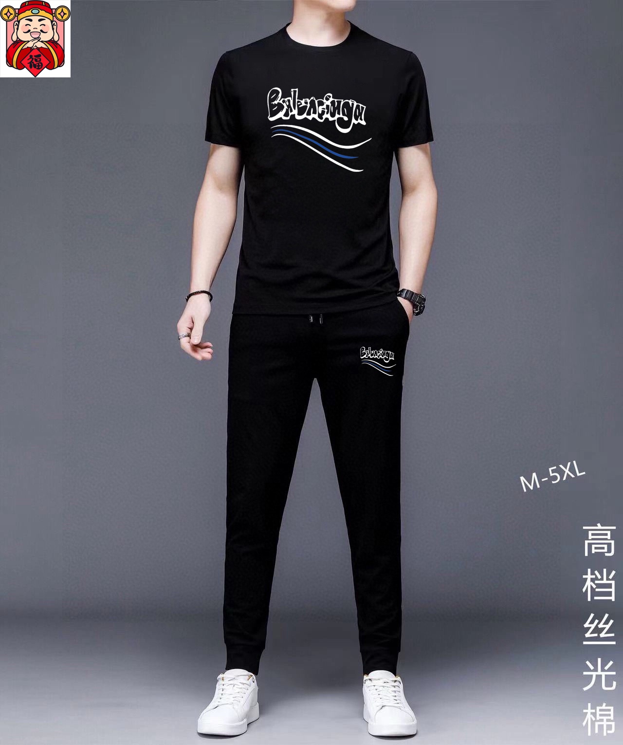 BALENCIAGA men's summer dual-gloss luxury set. Imported fabric, trendy design. Sizes M-5XL (up to 220斤).