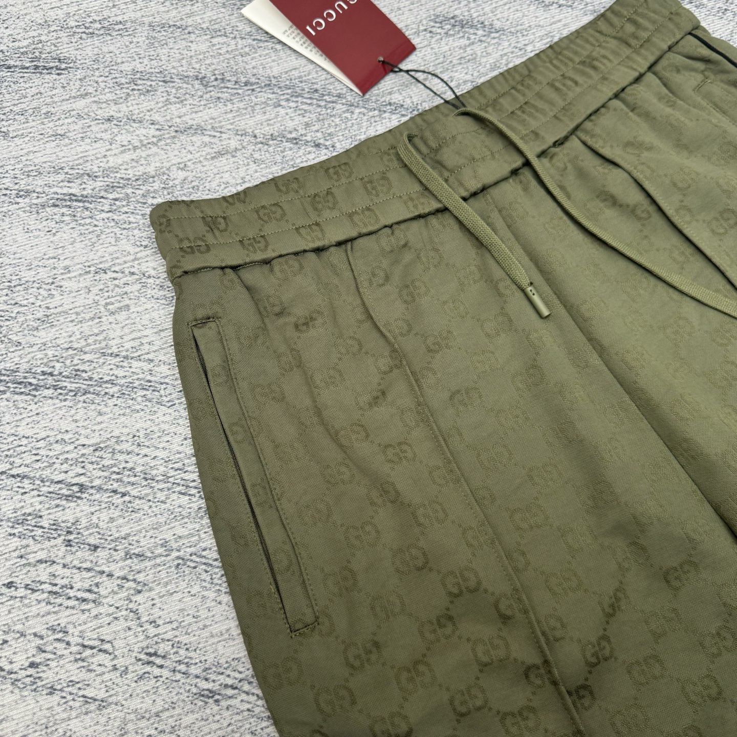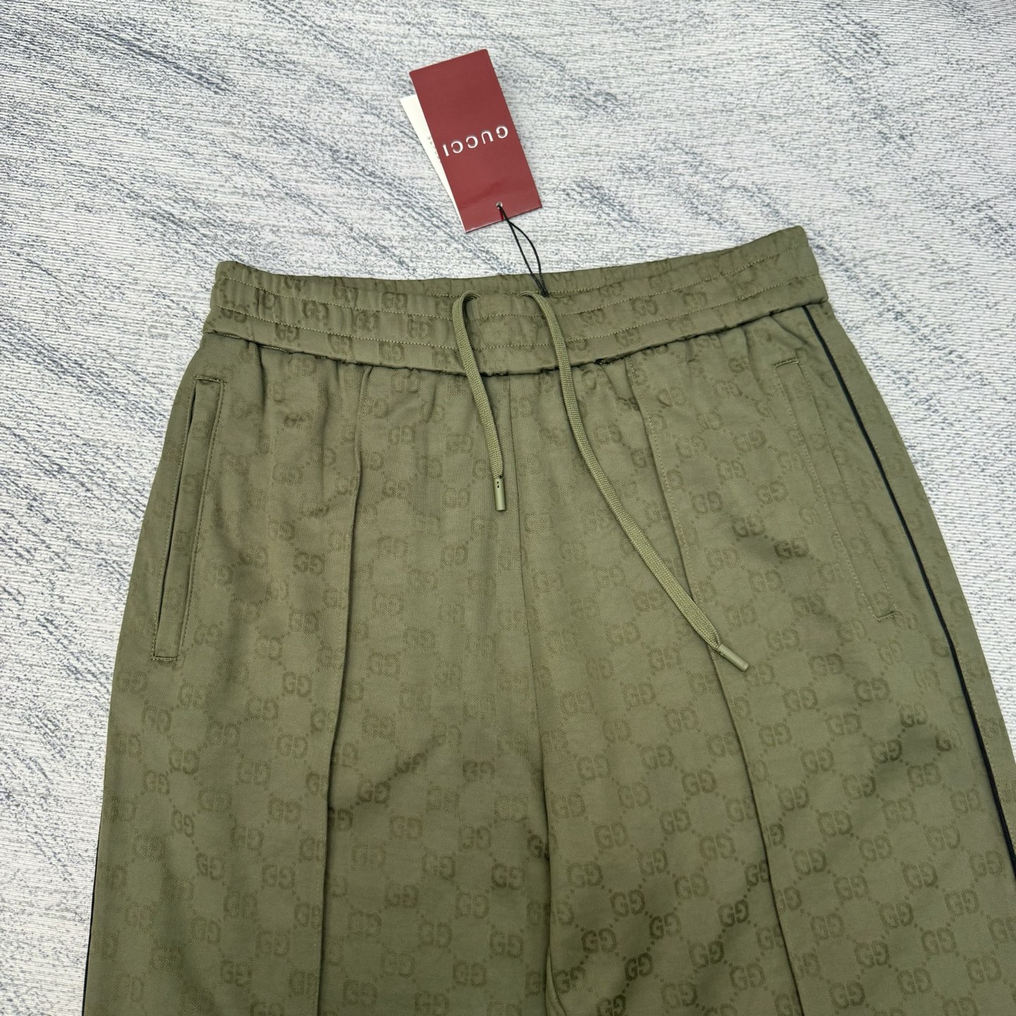 Gucci 2025 new forest green GG jacquark pants set, loose fit with bohemian print.