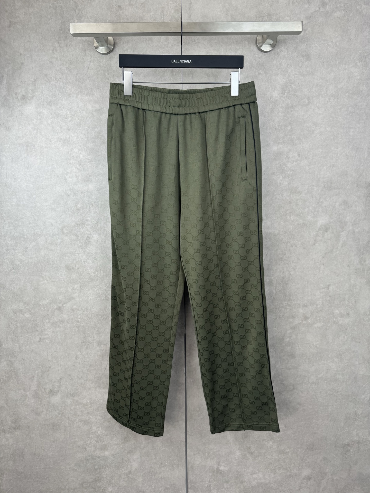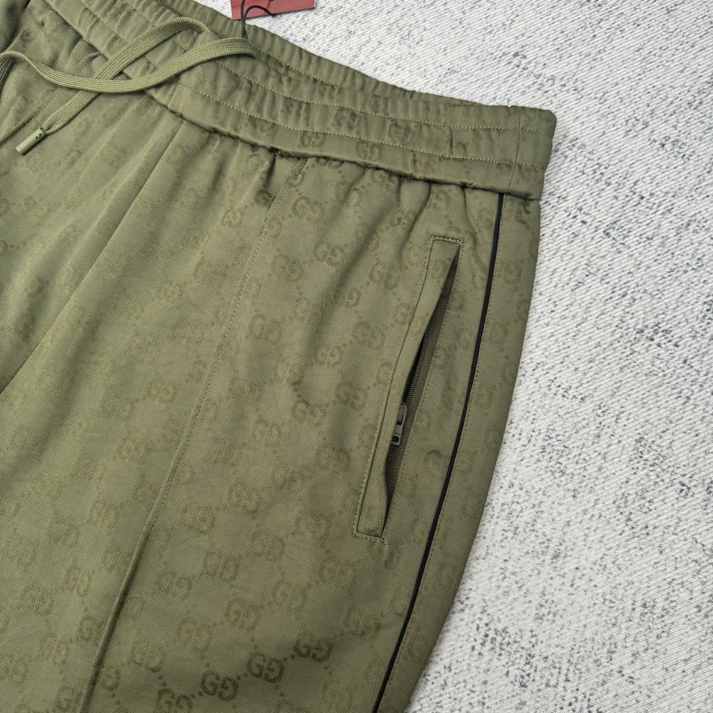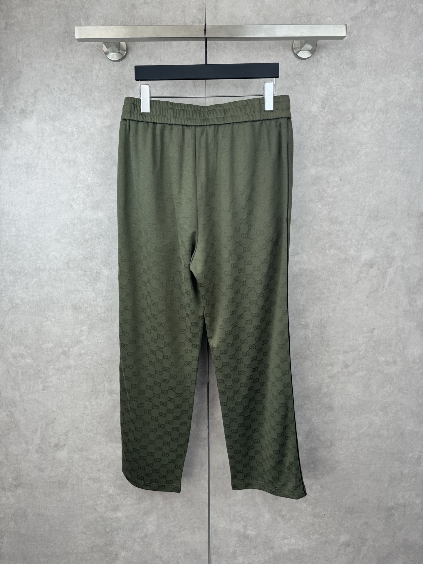 Gucci 2025 forest green GG jacquark pants set. Loose bohemian style with zip jacket. Sizes available.
