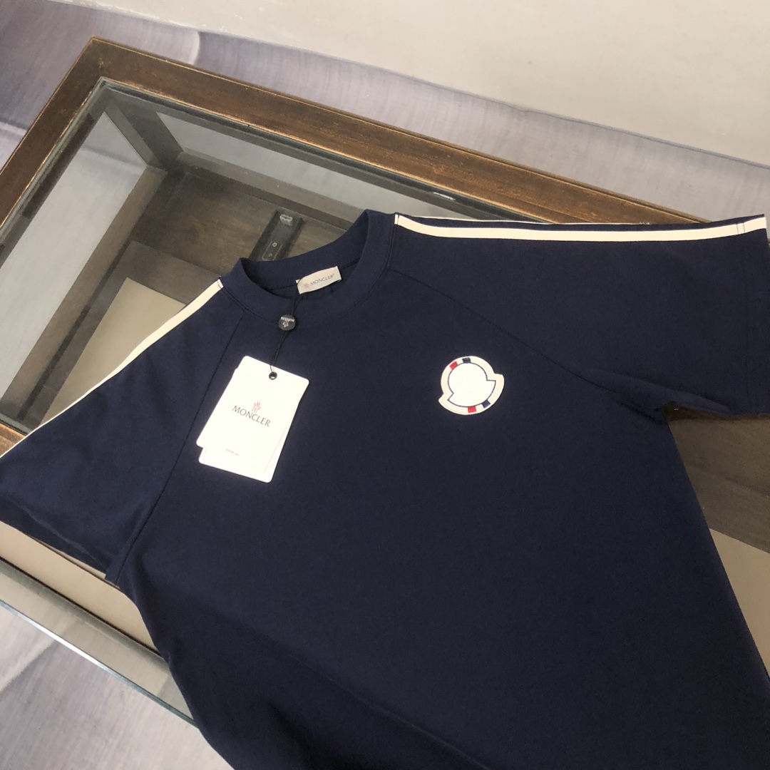 MONCLER 2025 spring-summer unisex casual round-neck set. Latest design, elegant and simple. Comfortable, breathable fabric with custom embroidery. Colors: black, white, royal blue, light gray. Sizes: S M L XL XXL.