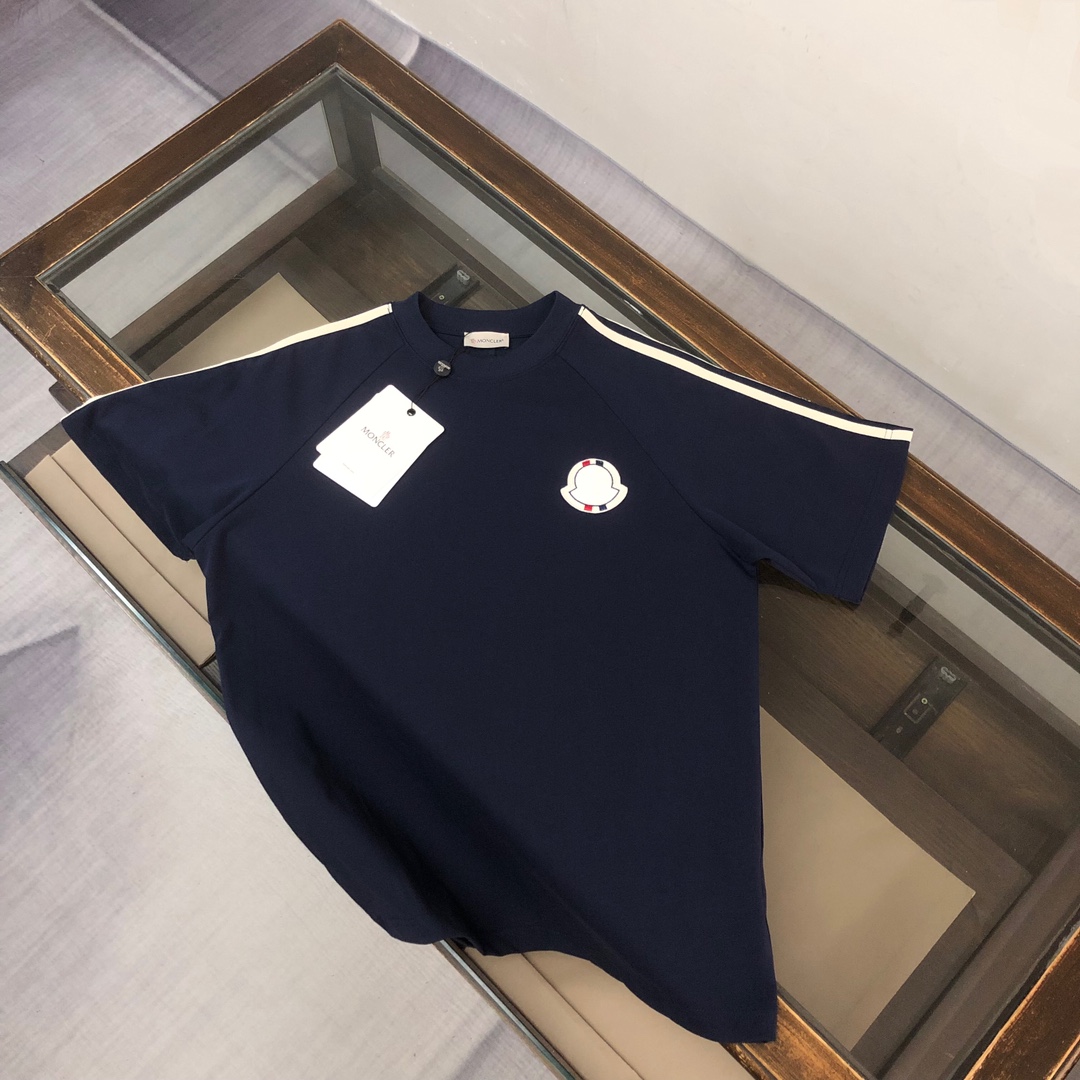 MONCLER 2025 SS unisex casual round-neck set. Latest design, elegant embroidery logo. Comfortable, breathable fabric. Colors: Black, White, Blue, Gray. Sizes: S-XXL (oversized).