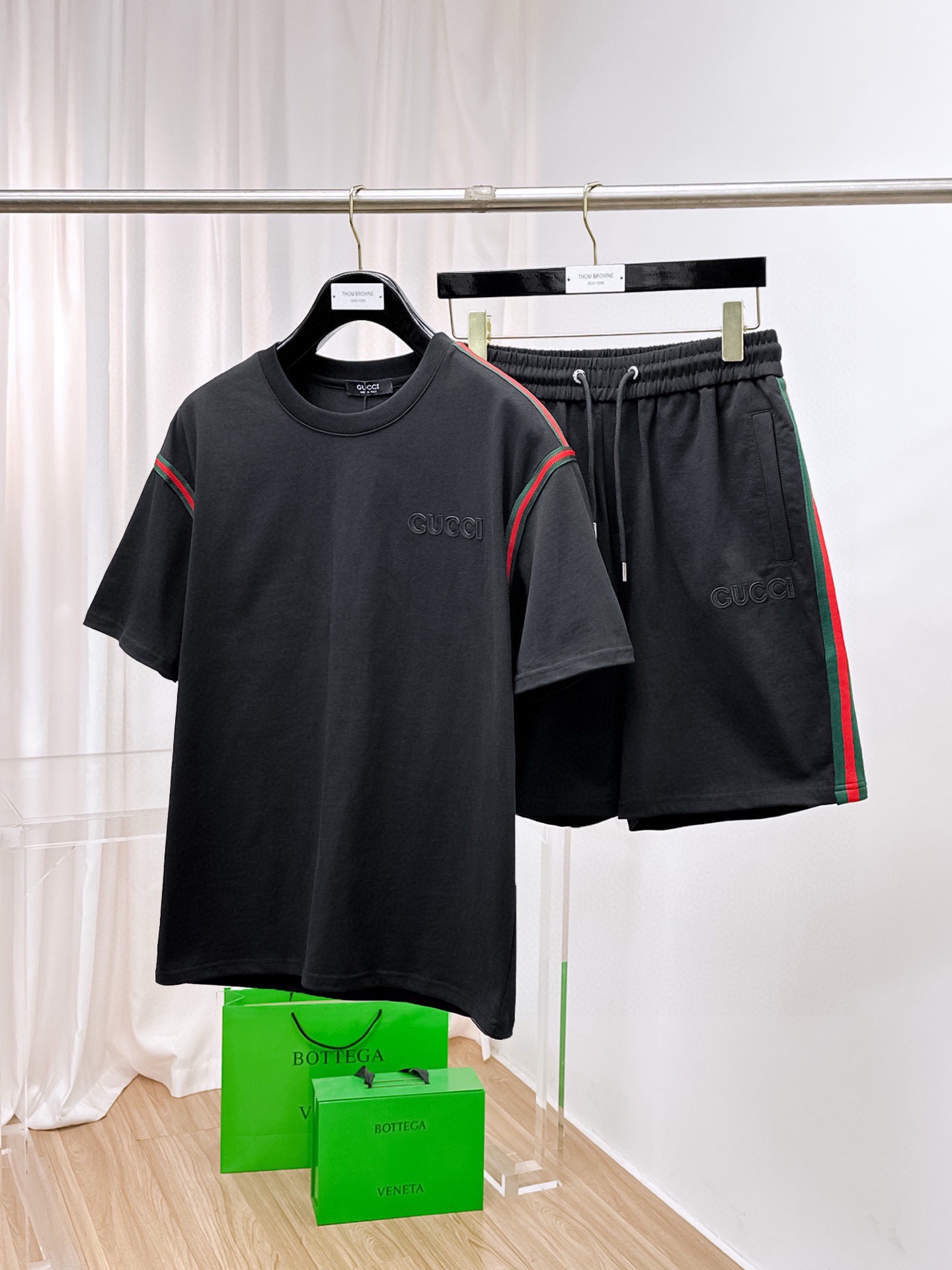GUCCI 2025 cotton short sleeve and shorts set. Breathable, smooth fabric with classic logo. Sizes M-3XL.