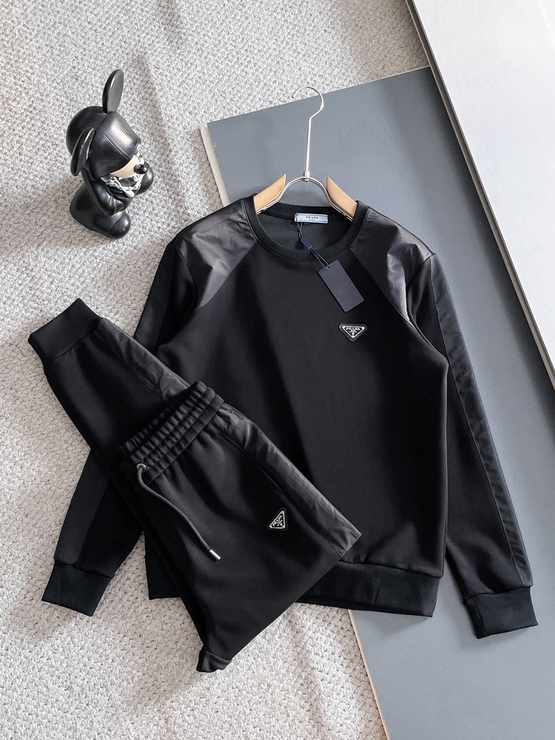 PRADA 2025 new round neck sweatsuit set. Premium natural cotton, elegant fit. Sizes M-3XL, up to 190kg.