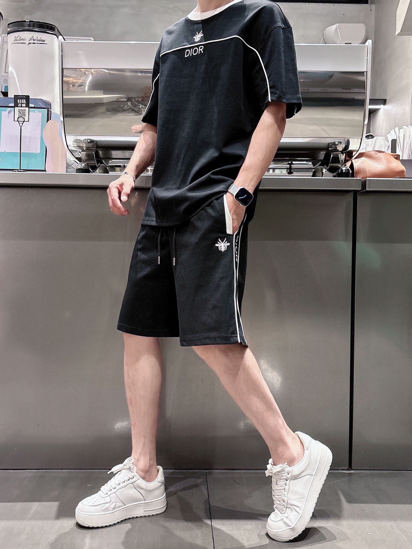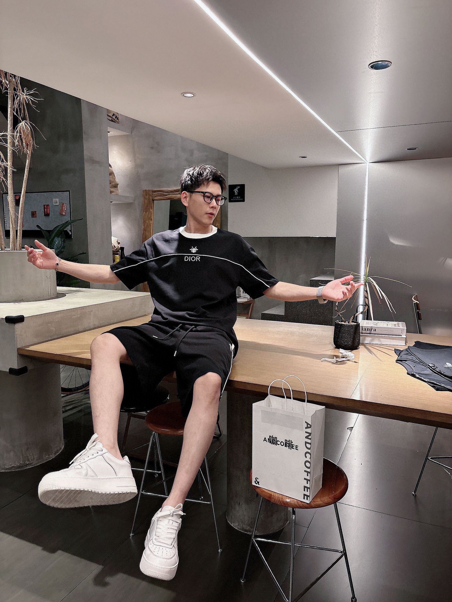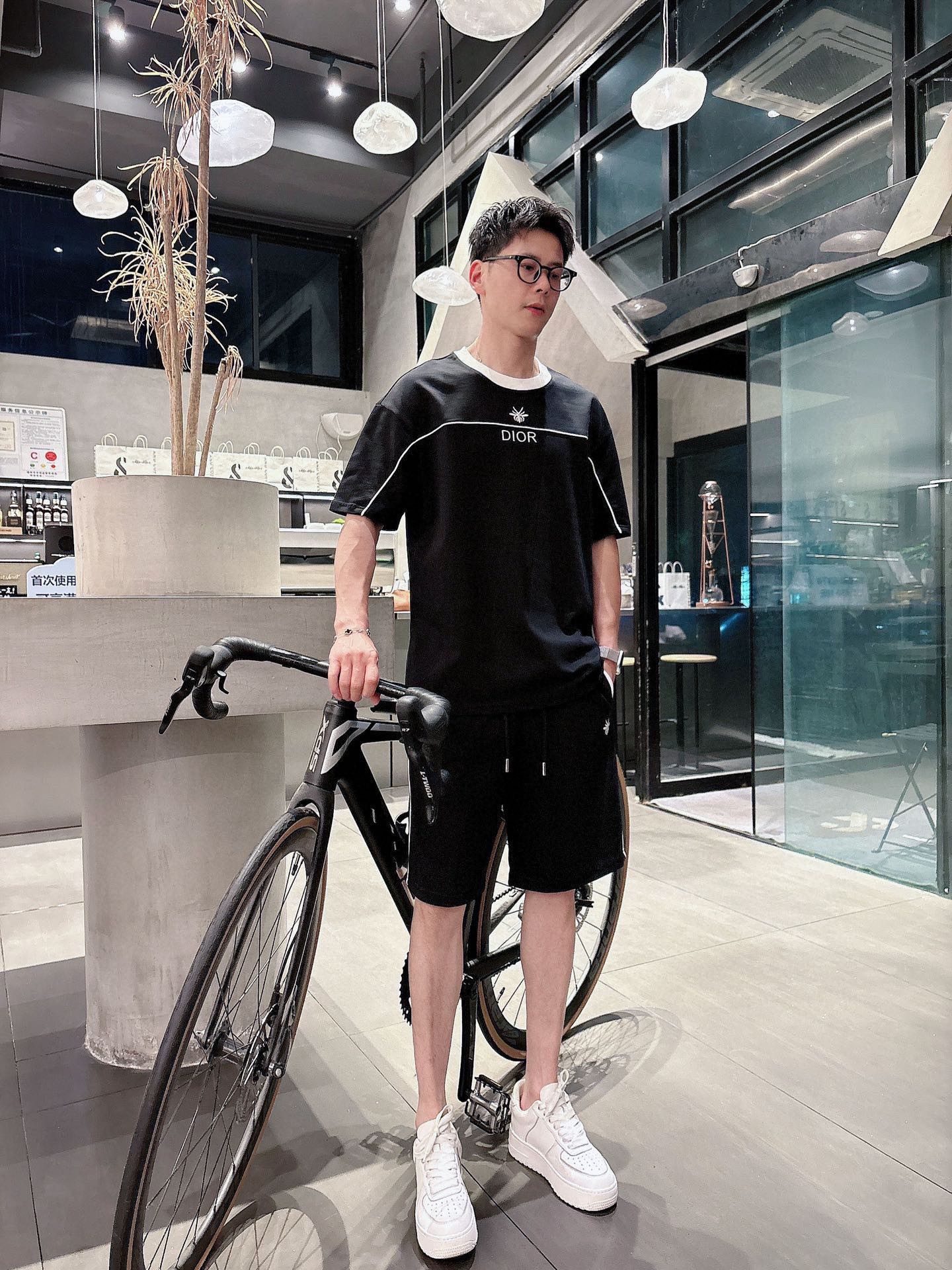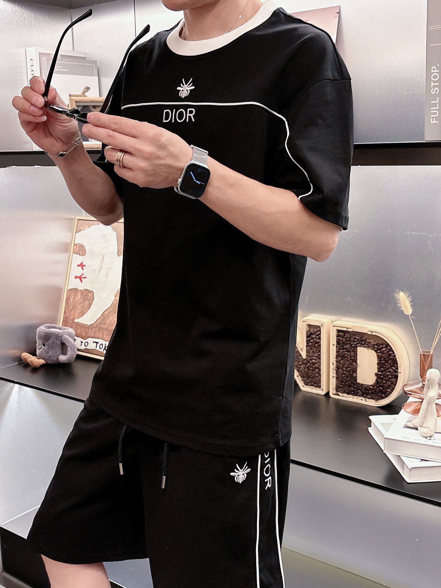 Dior 2025 short sleeve and shorts set, round neck, pure cotton, breathable and comfortable. Classic logo, versatile style. Sizes: M-3XL.