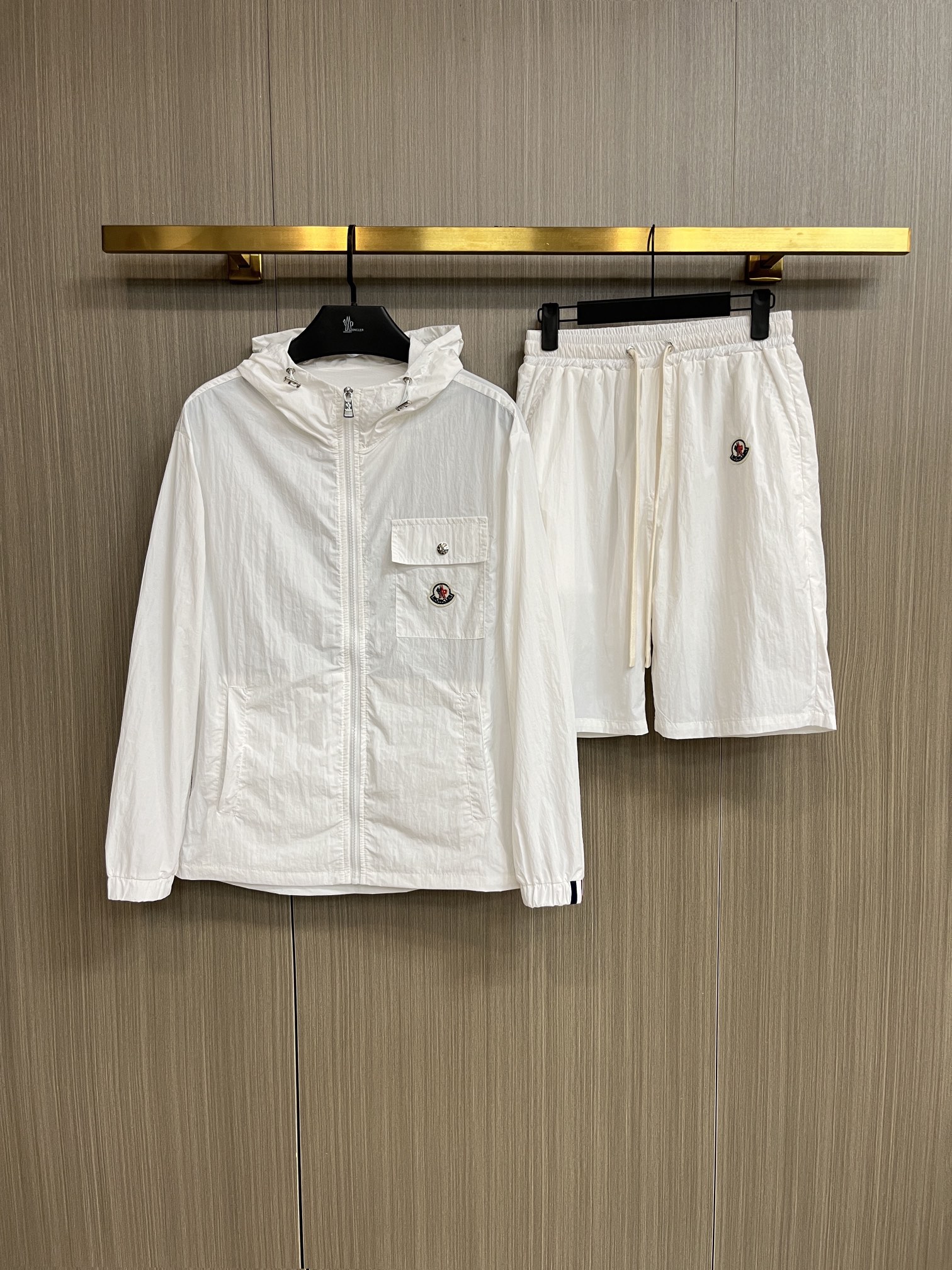 Moncler 2025 summer sun protection shorts set. Overseas luxury custom fit. Soft, breathable imported fabric. High-density, shrink-resistant. Street fashion essential. Sizes M-XXXL.
