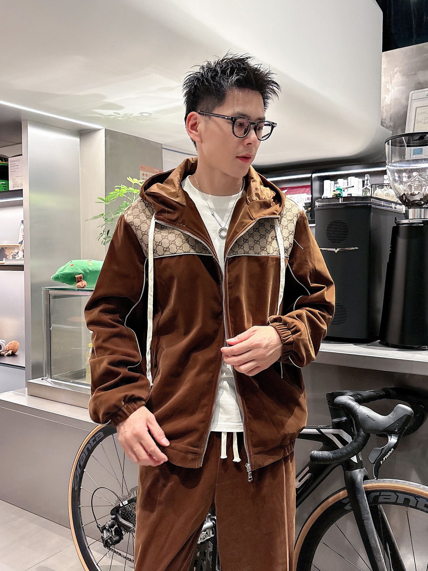 Gucci velvet casual set. Imported 2025 autumn/winter style, premium hooded set with custom zippers and pockets. Available in sizes M-3XL.