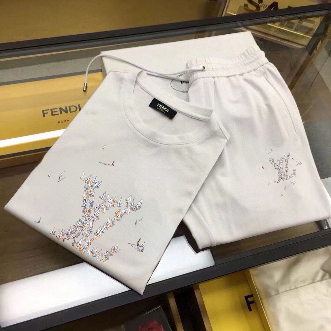 Direct wholesale of Louis Vuitton men's summer high-quality sets. Imported fabric, trendy style, precise stitching. Sizes M-5XL.