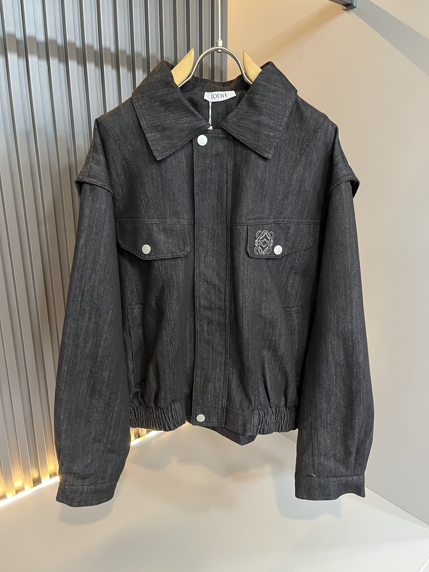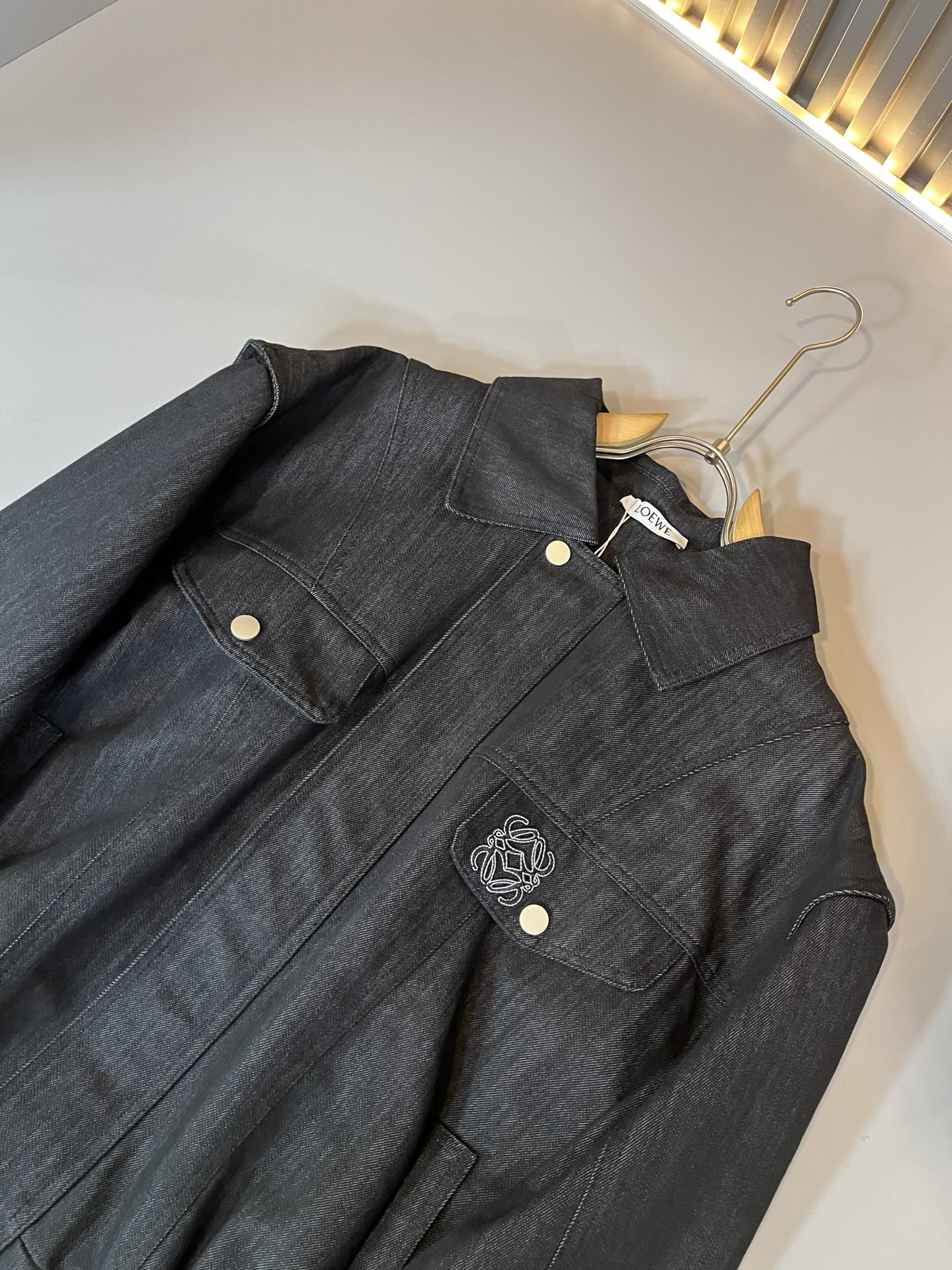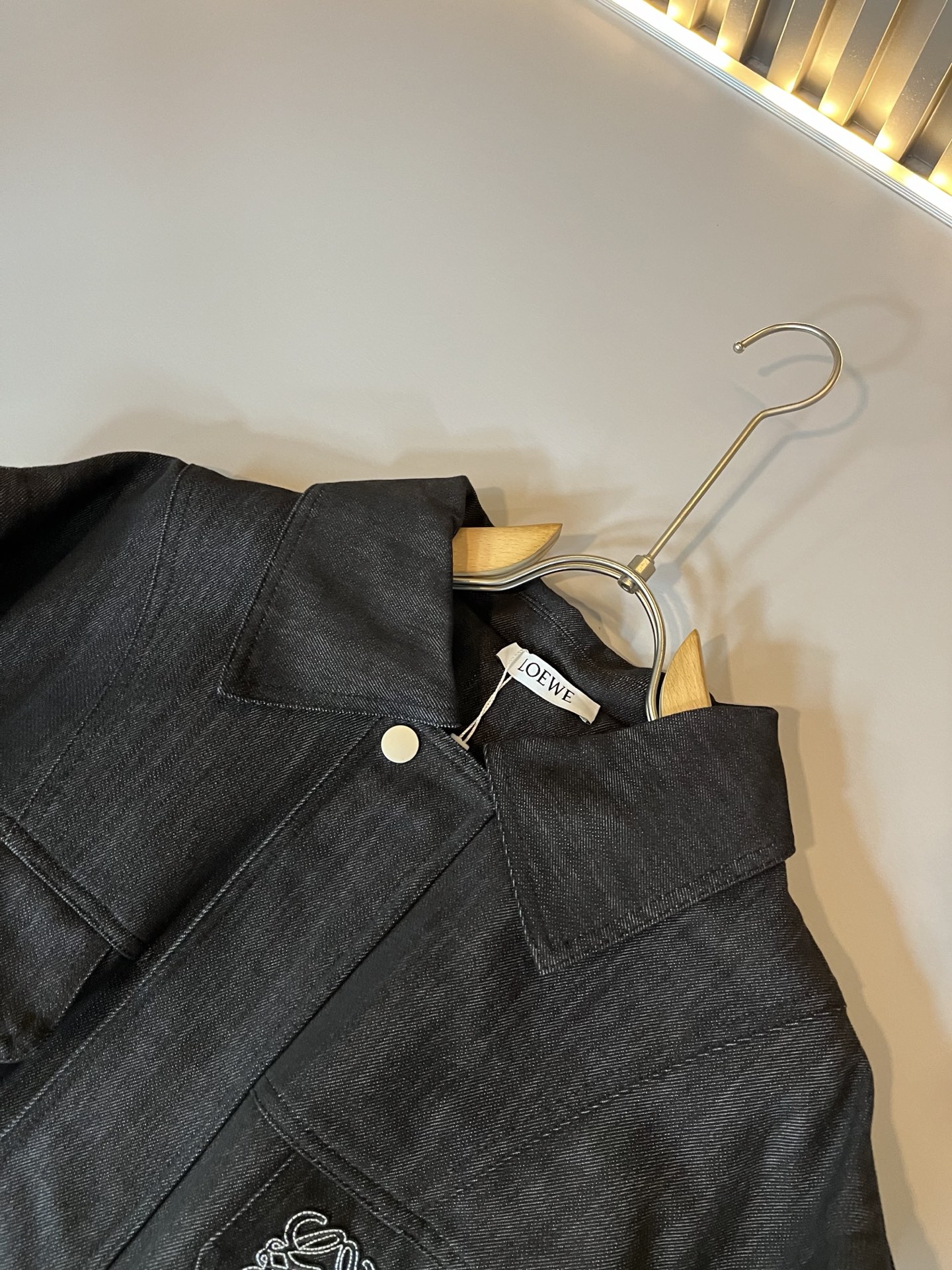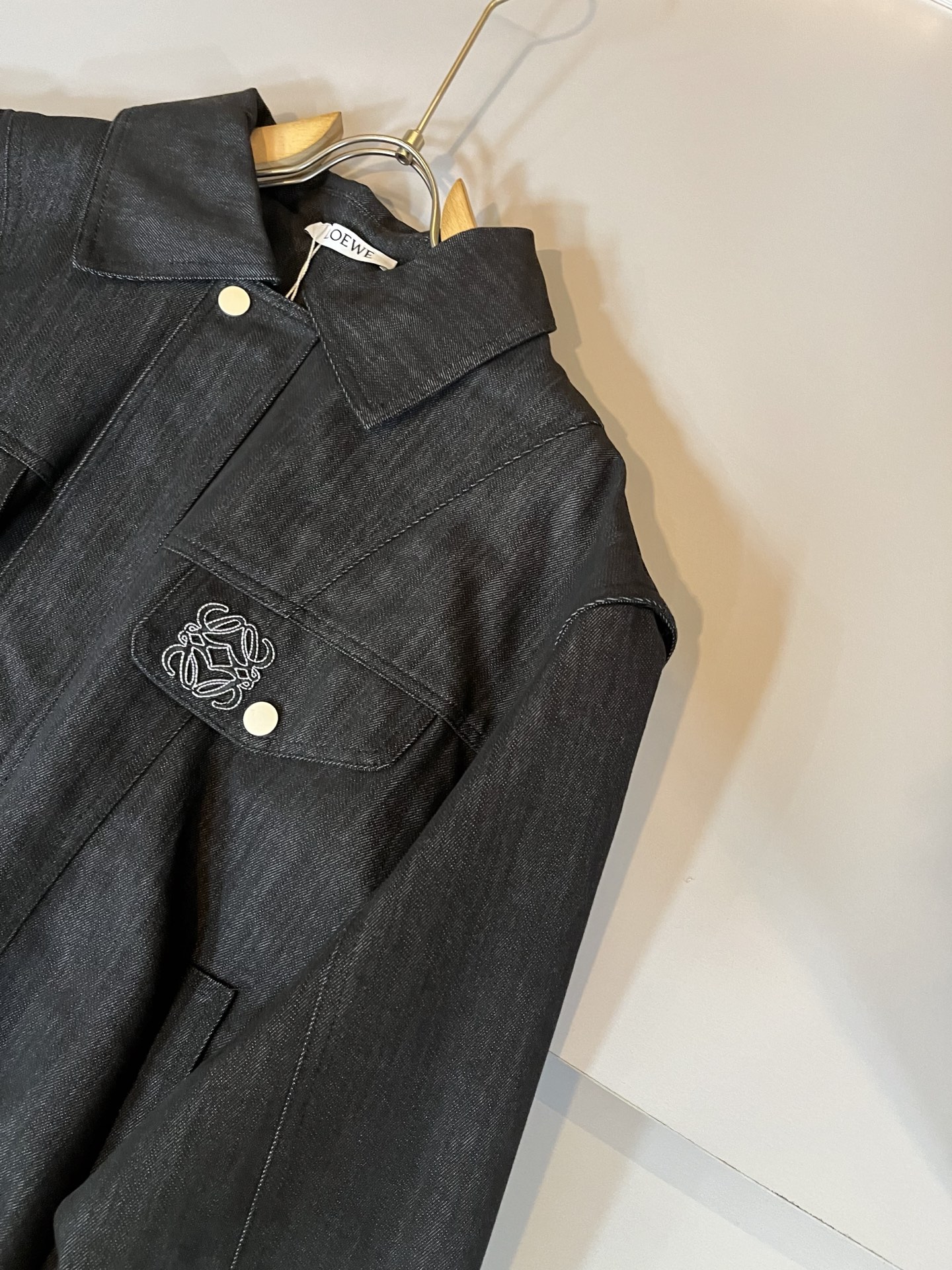 LOE*WE 2025 Fall/Winter unisex denim set. Italian factory order, personalized high-end street style. Logo embroidery, leather design, custom cotton fabric. Trendy, essential fashion item. Sizes: S-2XL.