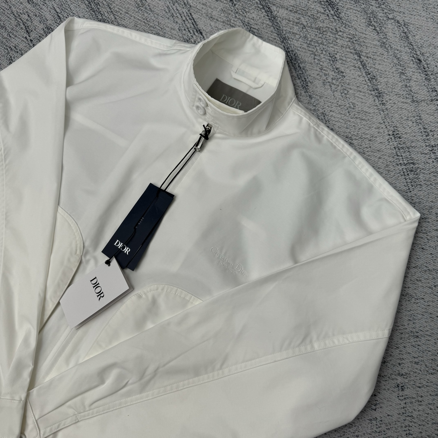 Dior 25SS cotton gabardine embroidered lettering set with zip-up hoodie. Sizes 46/48/50/117. Black and white colors.