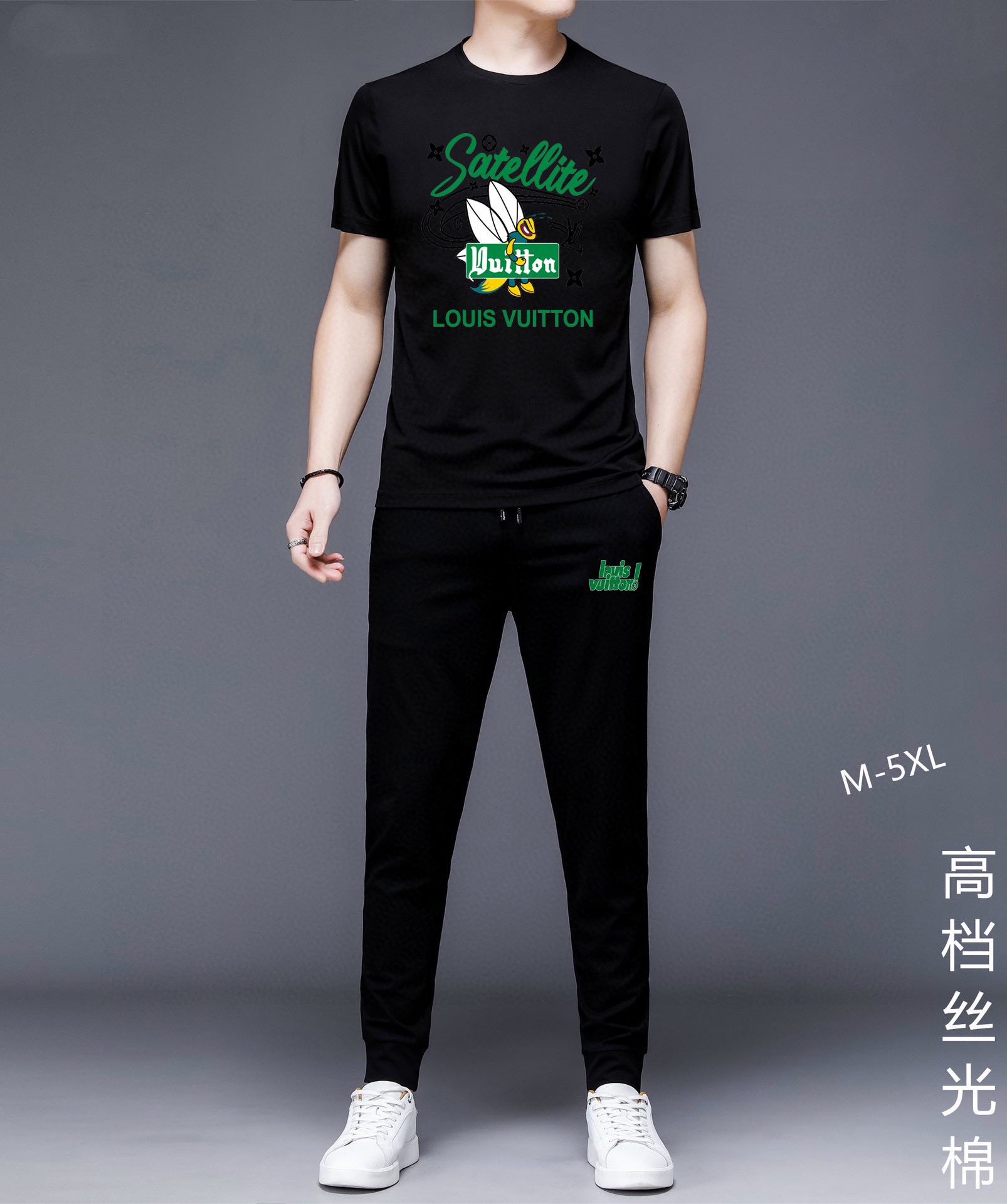 Direct wholesale of Louis Vuitton men's summer high-quality set. Imported fabric, trendy style, precise stitching. Sizes M-5XL.