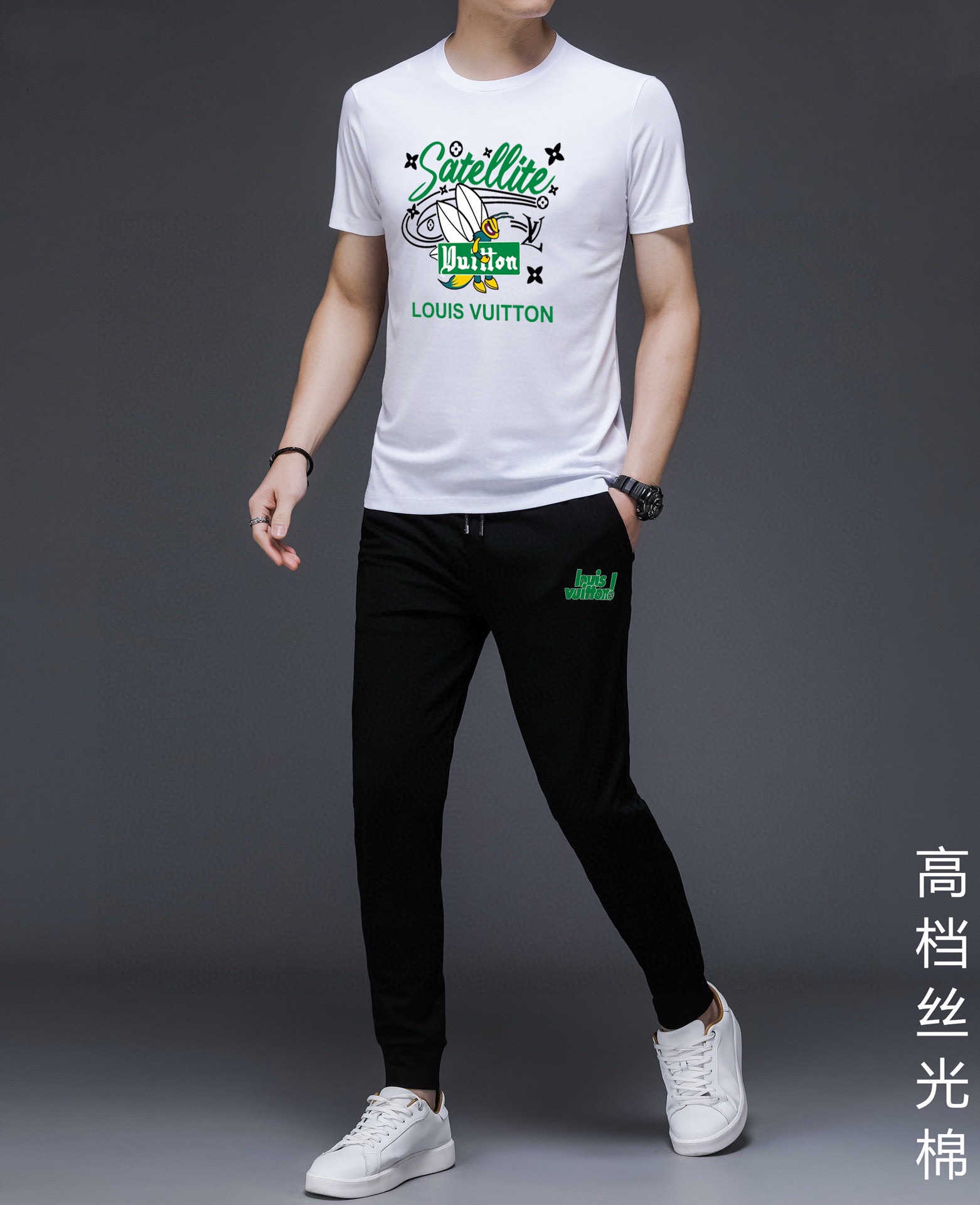 Louis Vuitton men's summer high-quality silk set. Imported fabric, trendy, versatile. Sizes M-5XL.