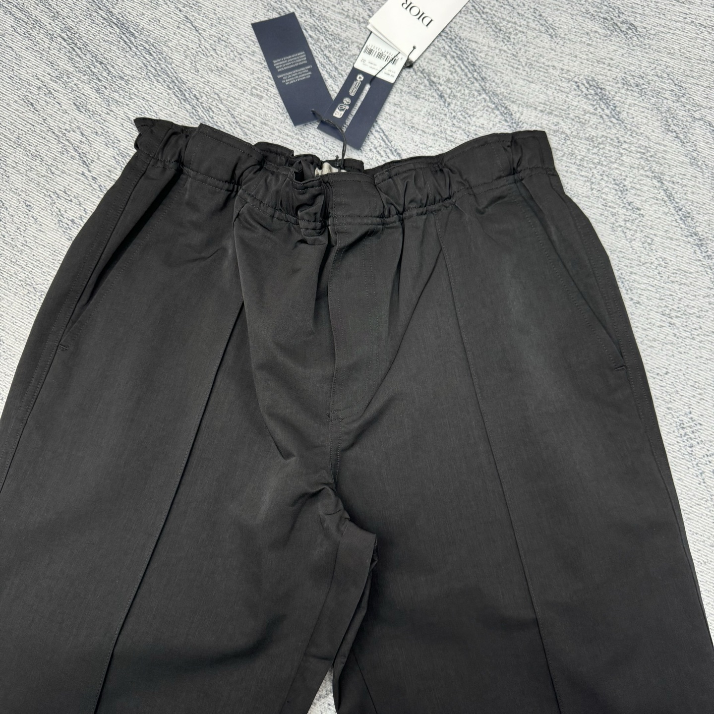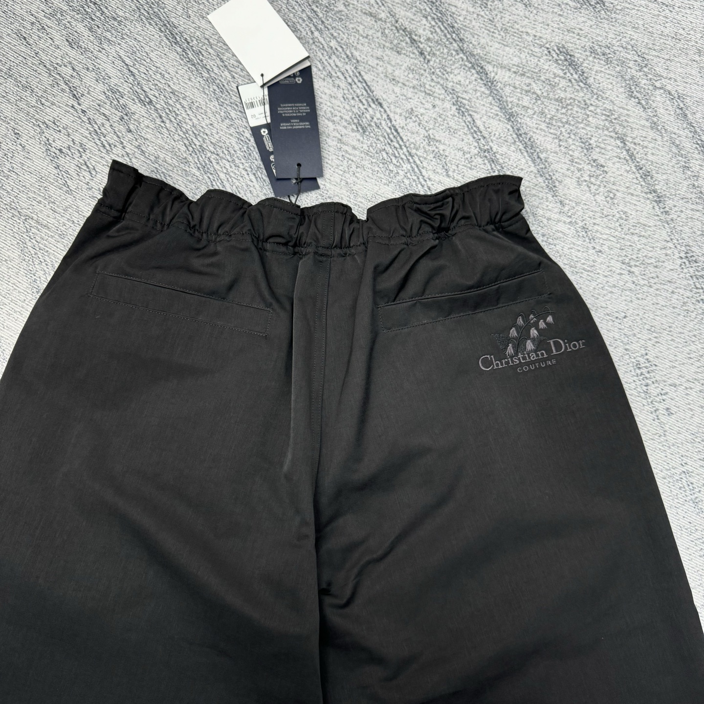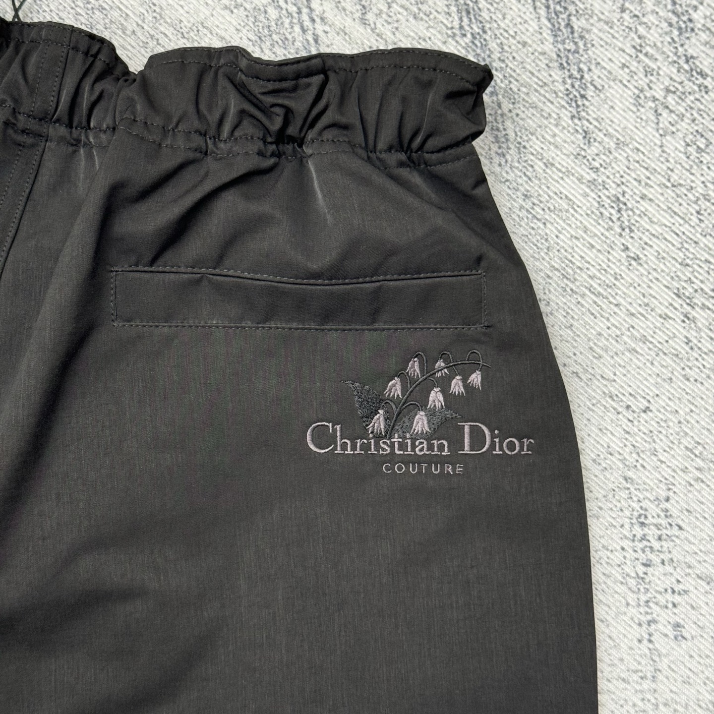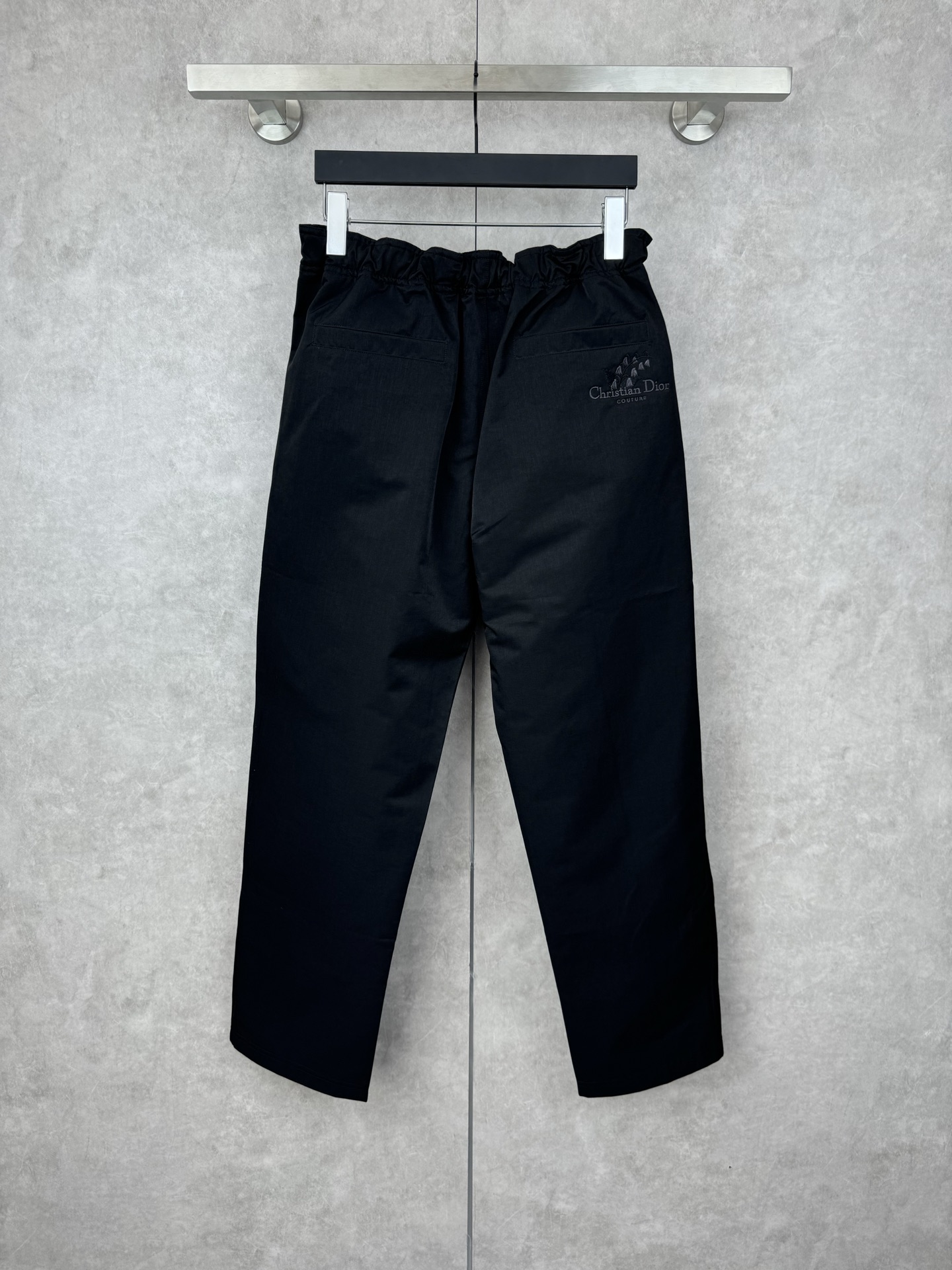 Dior 25SS cotton gabardine embroidered letter set pants. Sizes 46/48/50/117. New for 2025 Fall menswear. Features zip jacket with pockets, embroidery, elastic cuffs. Matching pants with elastic waist. Colors: Black, White.