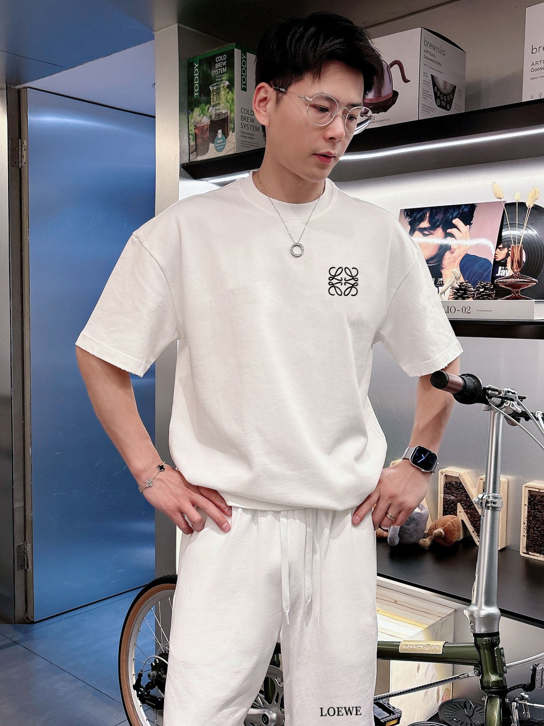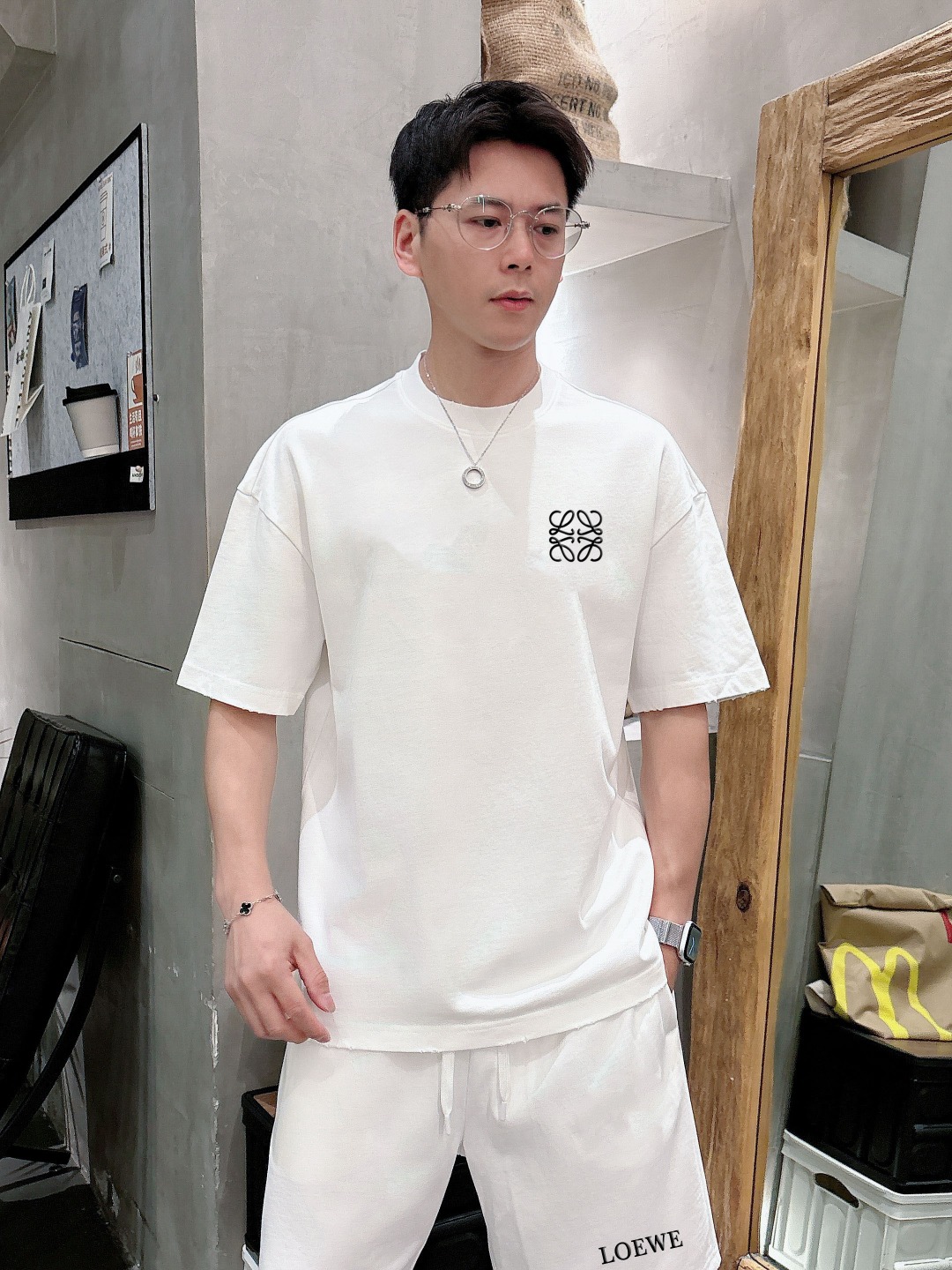 LOEWE 2025春夏新款短袖短裤套装。立体图案破洞设计纯棉面料舒适版型M-2XL宽松尺码