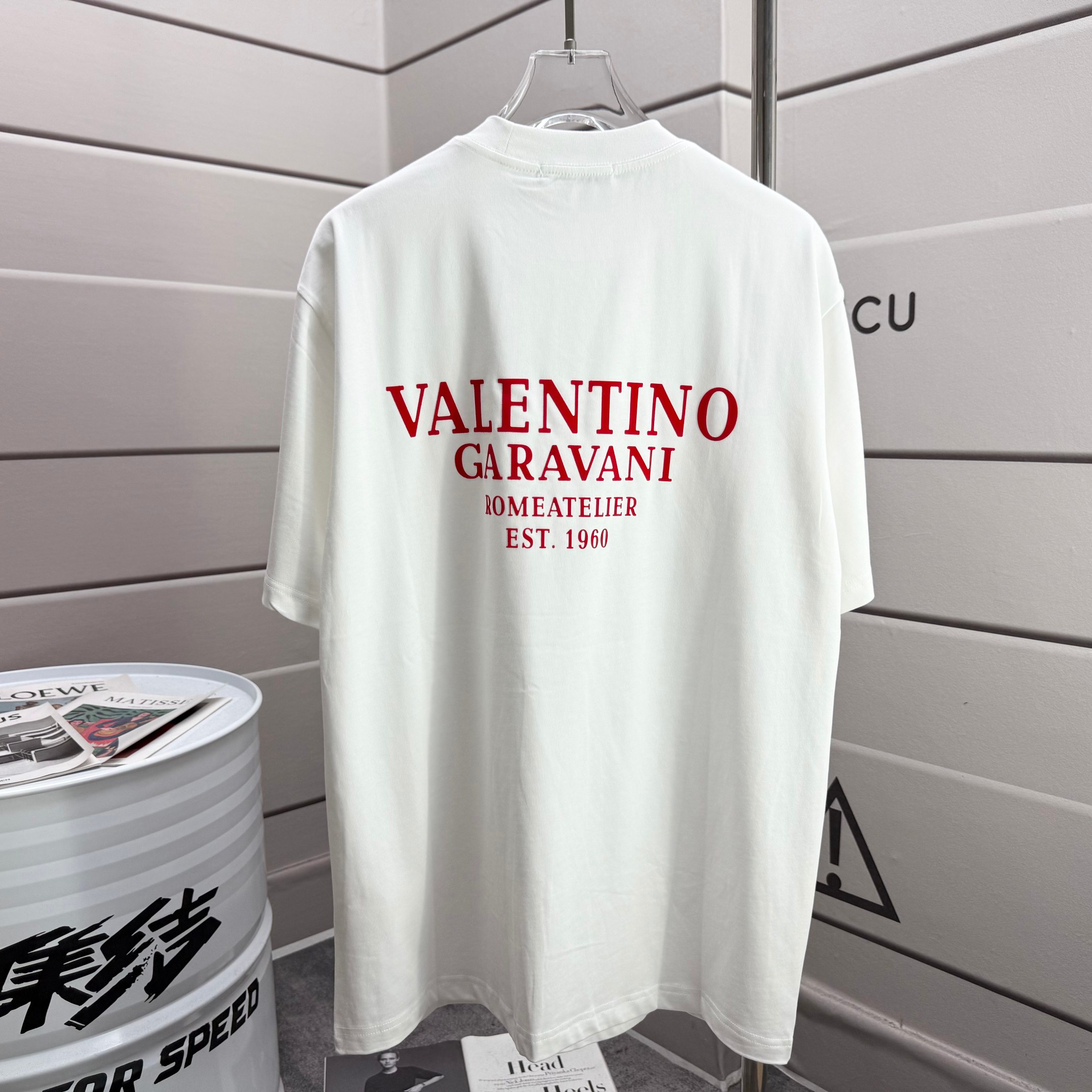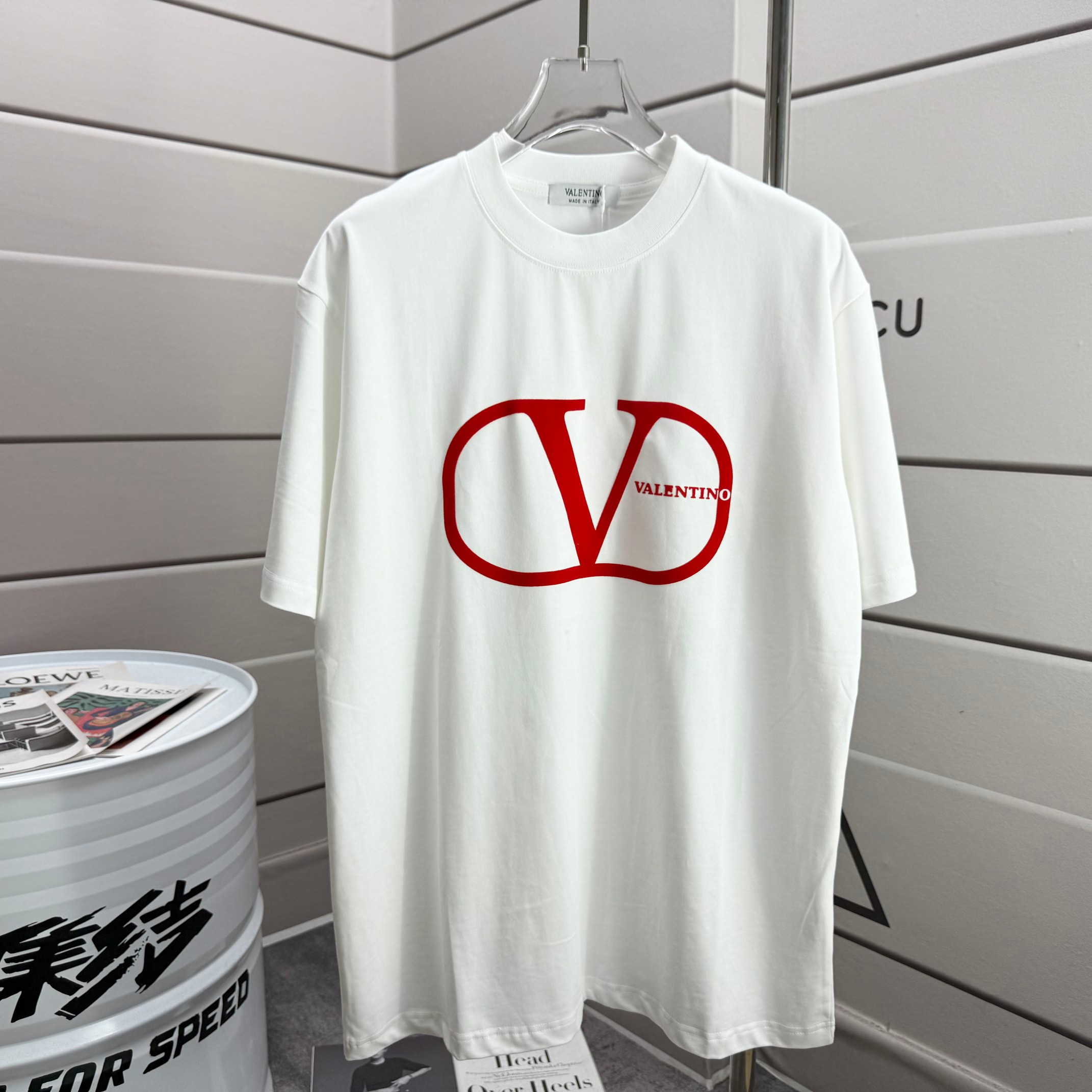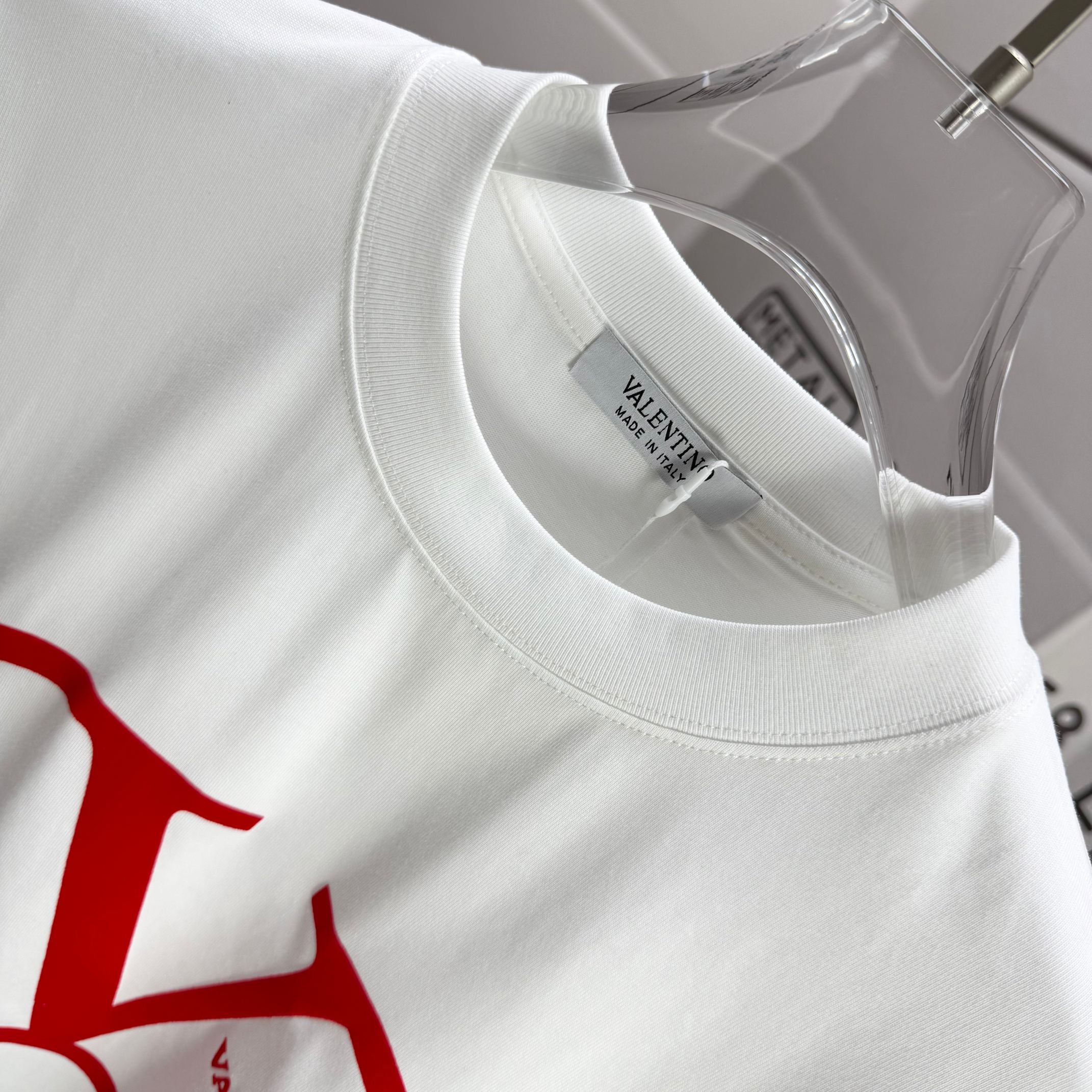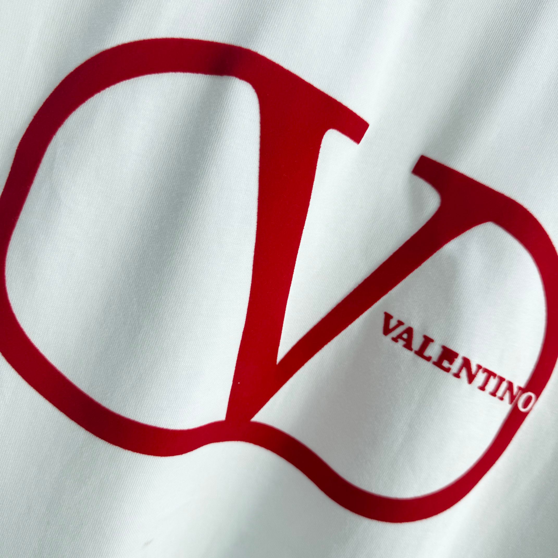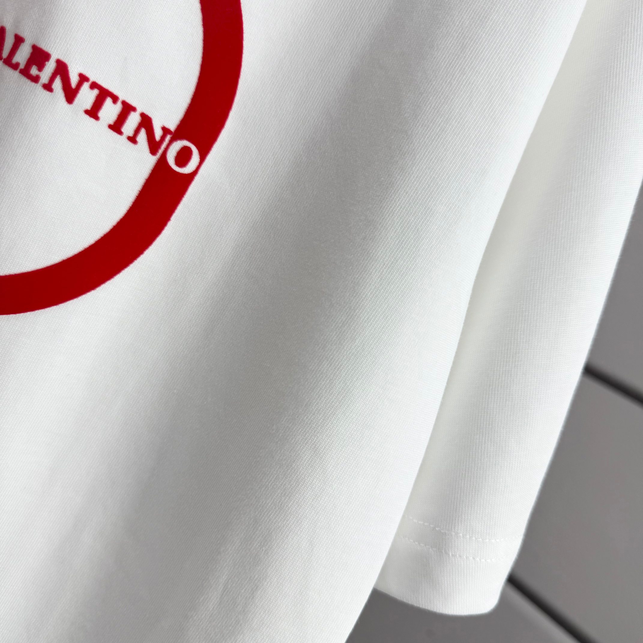Valentino 2025 Spring/Summer New Arrival Classic Flocking Craft Custom Double Yarn Plain Weave Pure Cotton Fabric Short-Sleeve T-Shirt Unisex