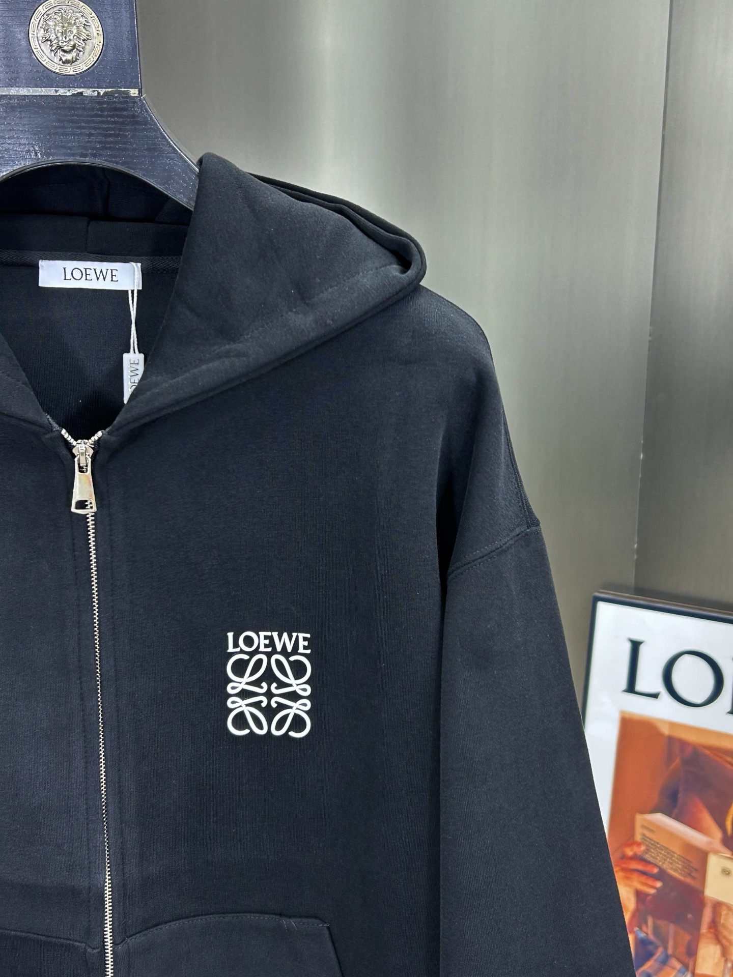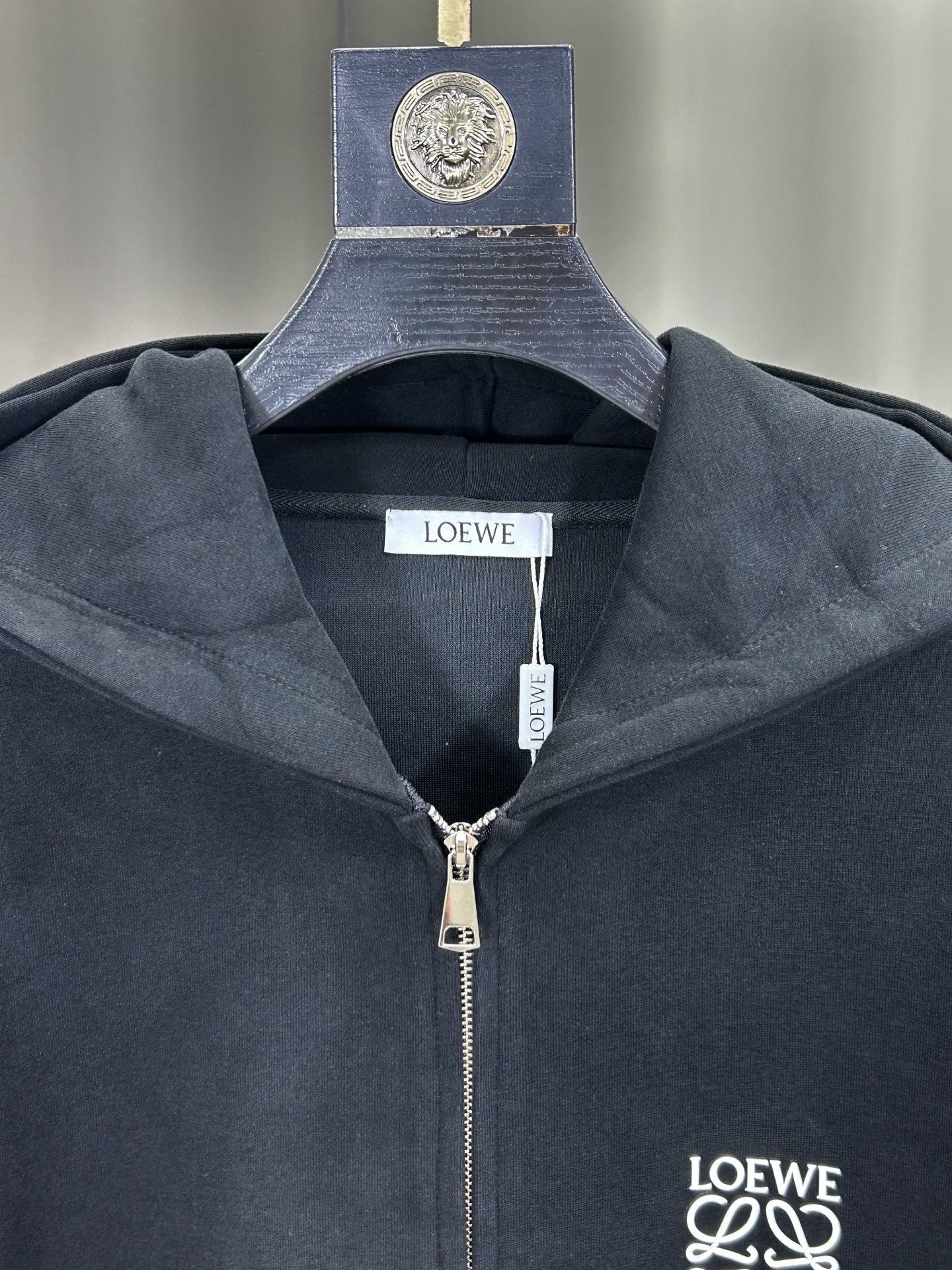 Home•Apparel•Suit•Loewe set with top拼接, zipper pants, logo embroidery, classic black and white tape. Custom fabric, fine craftsmanship, complete with 3 labels. Comfortable and stylish. Sizes: M-3XL.