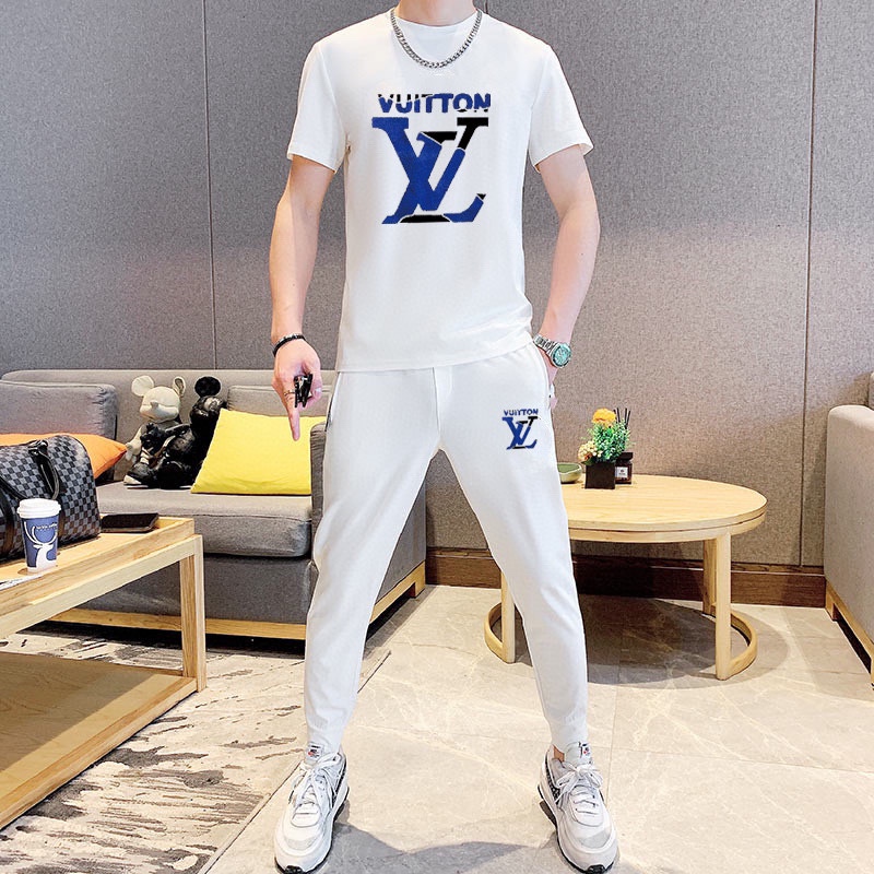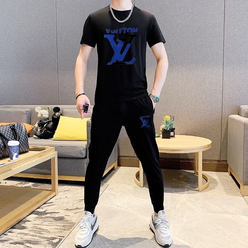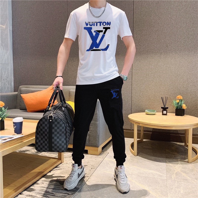Direct wholesale of Louis Vuitton men's summer high-quality set. Imported fabric, trendy style, precise stitching. Sizes M-5XL (up to 220斤).