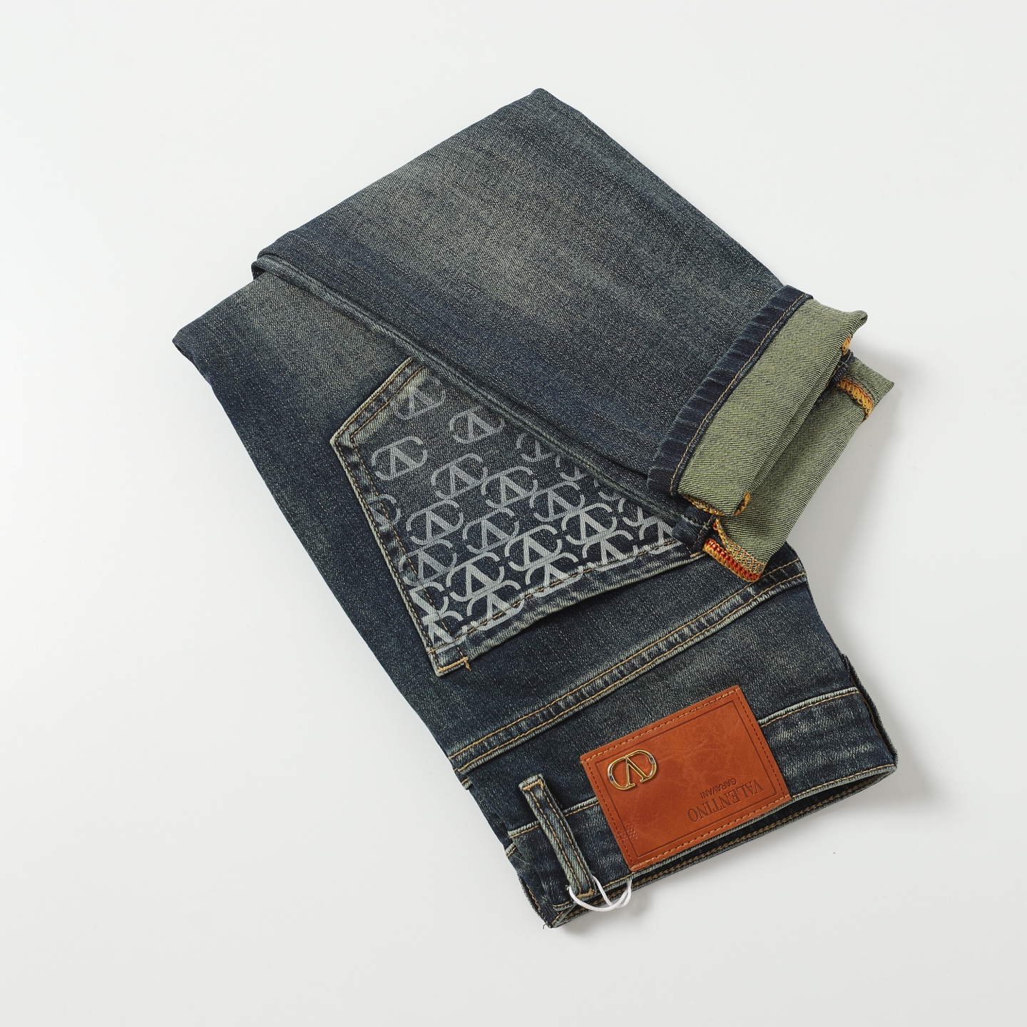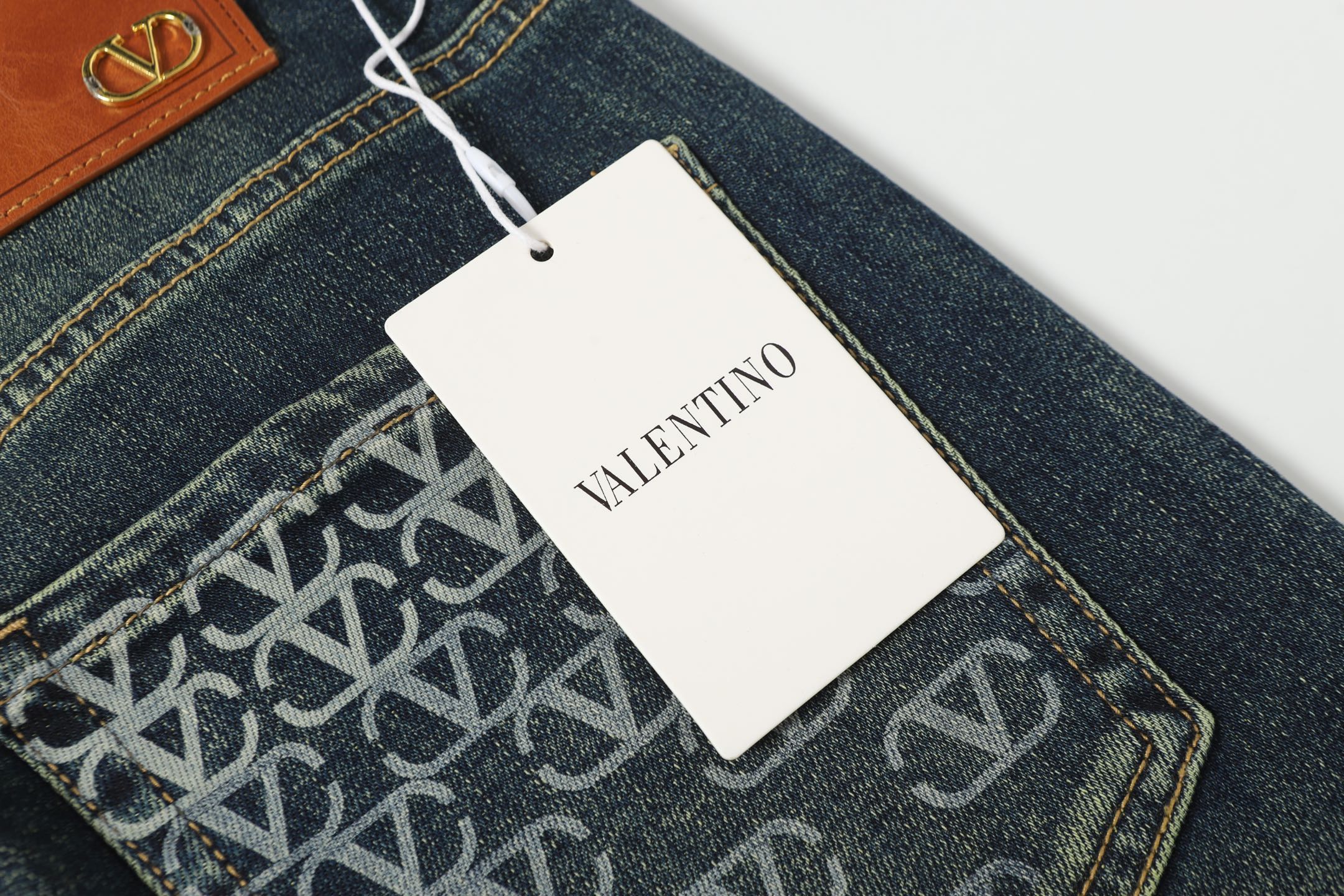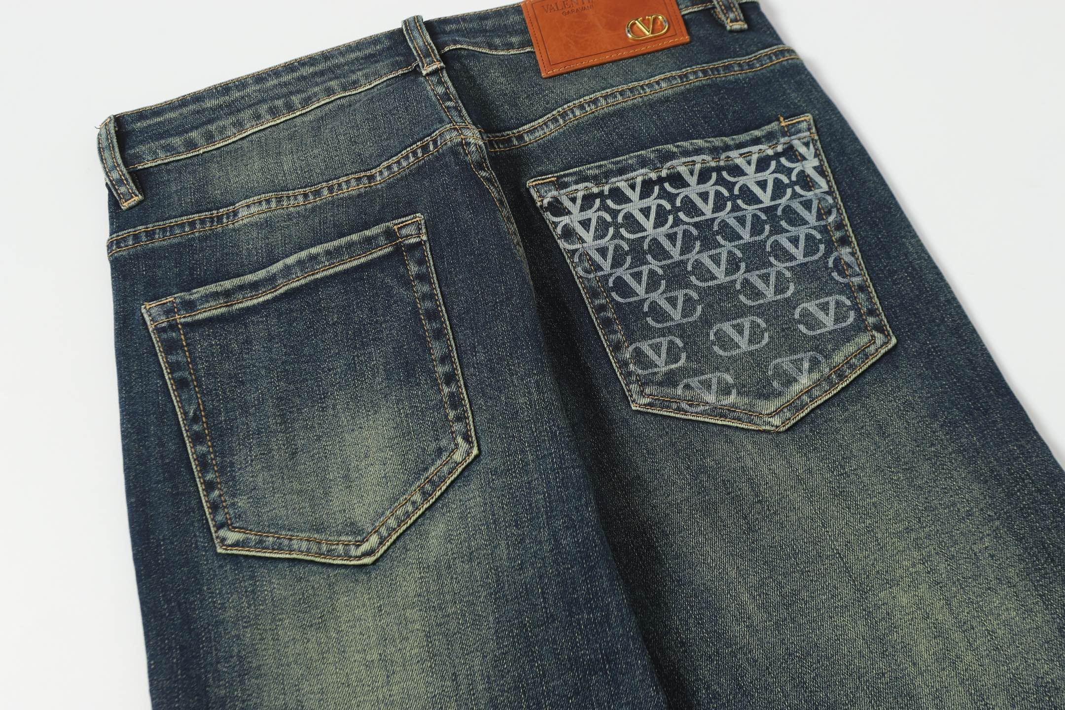 Valentino 2025 Fall new jeans, made from imported Japanese Denim plain cotton denim fabric, woven production. Complete with three labels. Top-notch stone washing technique gives a texture reminiscent of the 80s vintage feel—soft, fine, comfortable, and breathable. The color has a modern fashionable weathered look, versatile and stylish when worn! A must-have item for light luxury style and daily commuting outfits.